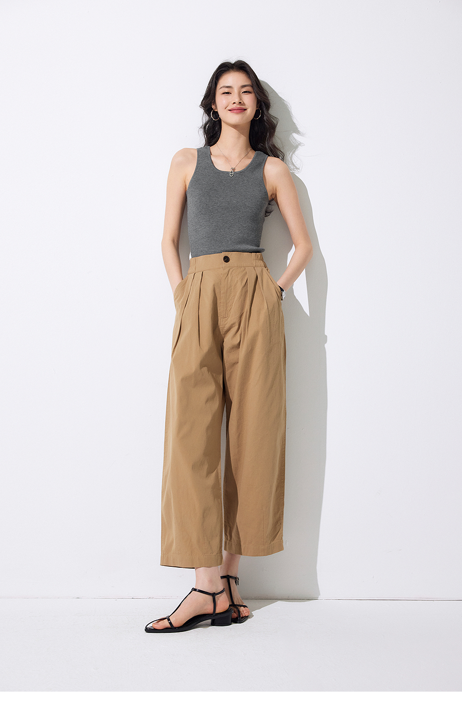 棉仓363801034-光盾遮热SORONA卷边撞色袖口微宽松圆领短袖T恤