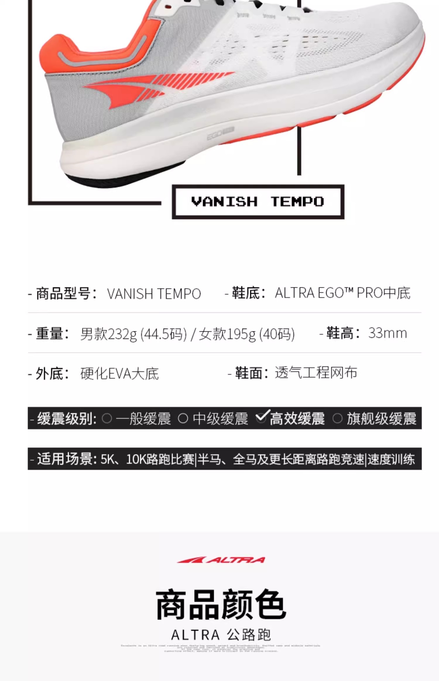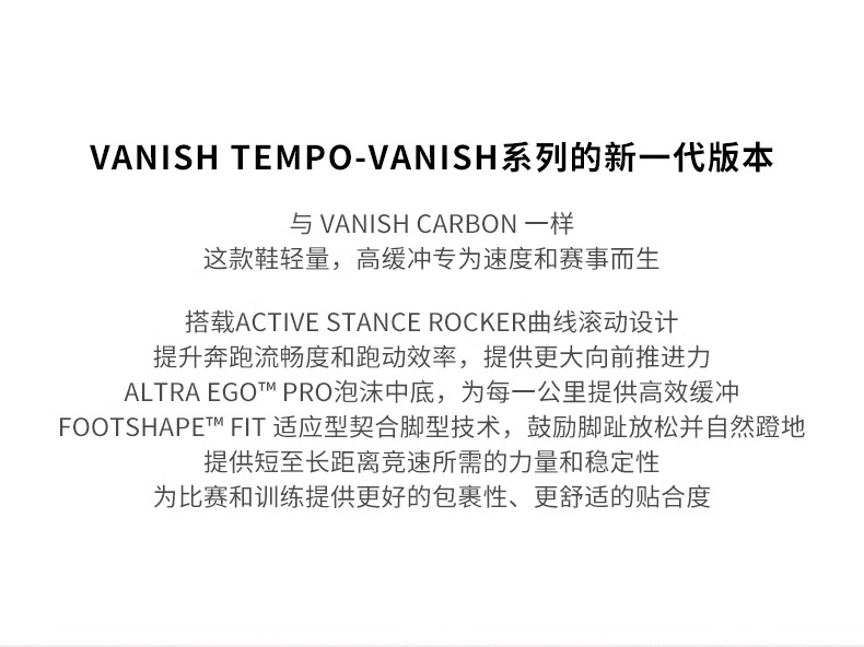 【路跑 竞速跑鞋】ALTRA奥创Vanish Tempo马拉松跑鞋男女跑鞋超轻 减震跑鞋竞速跑鞋