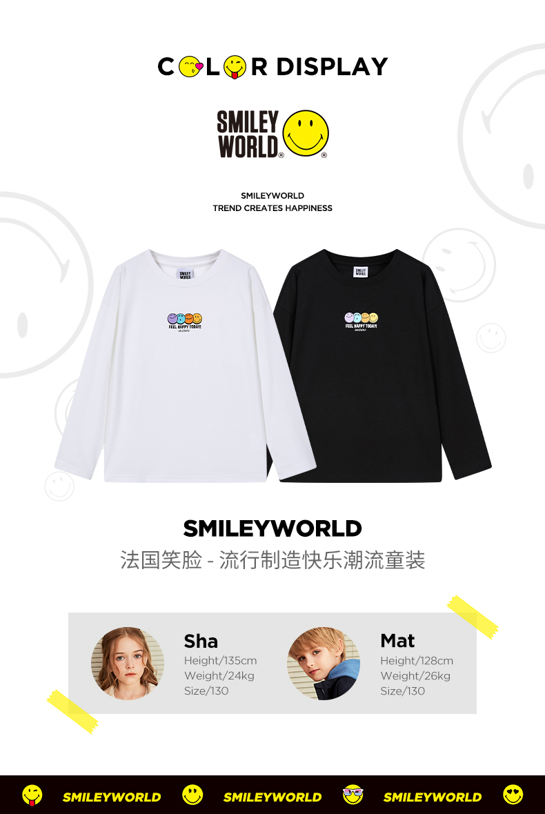 SMILEY WORLD法国笑脸童装长袖t恤百搭男童女童上衣S23335T702 商品图0