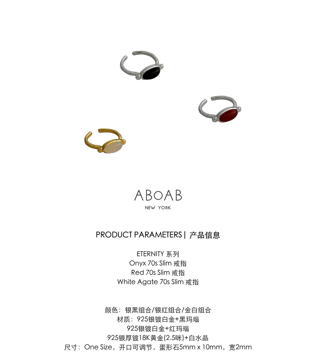ABOAB|70S SLIM Ring [ 戒指 银红玛瑙 / 银黑玛瑙 / 金白水晶 ]【ETERNITY】