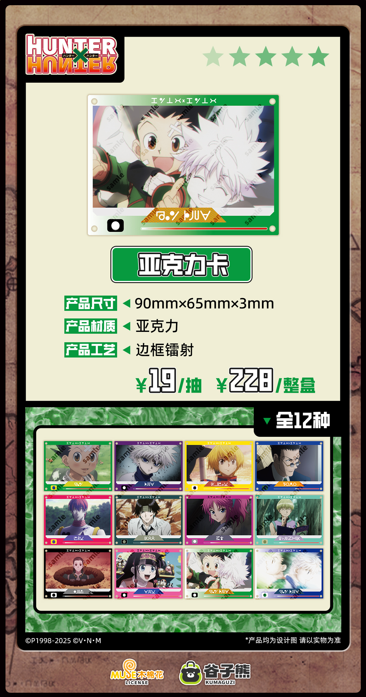 谷子熊 全职猎人 场面写镭射亚克力卡 12包/盒 国谷