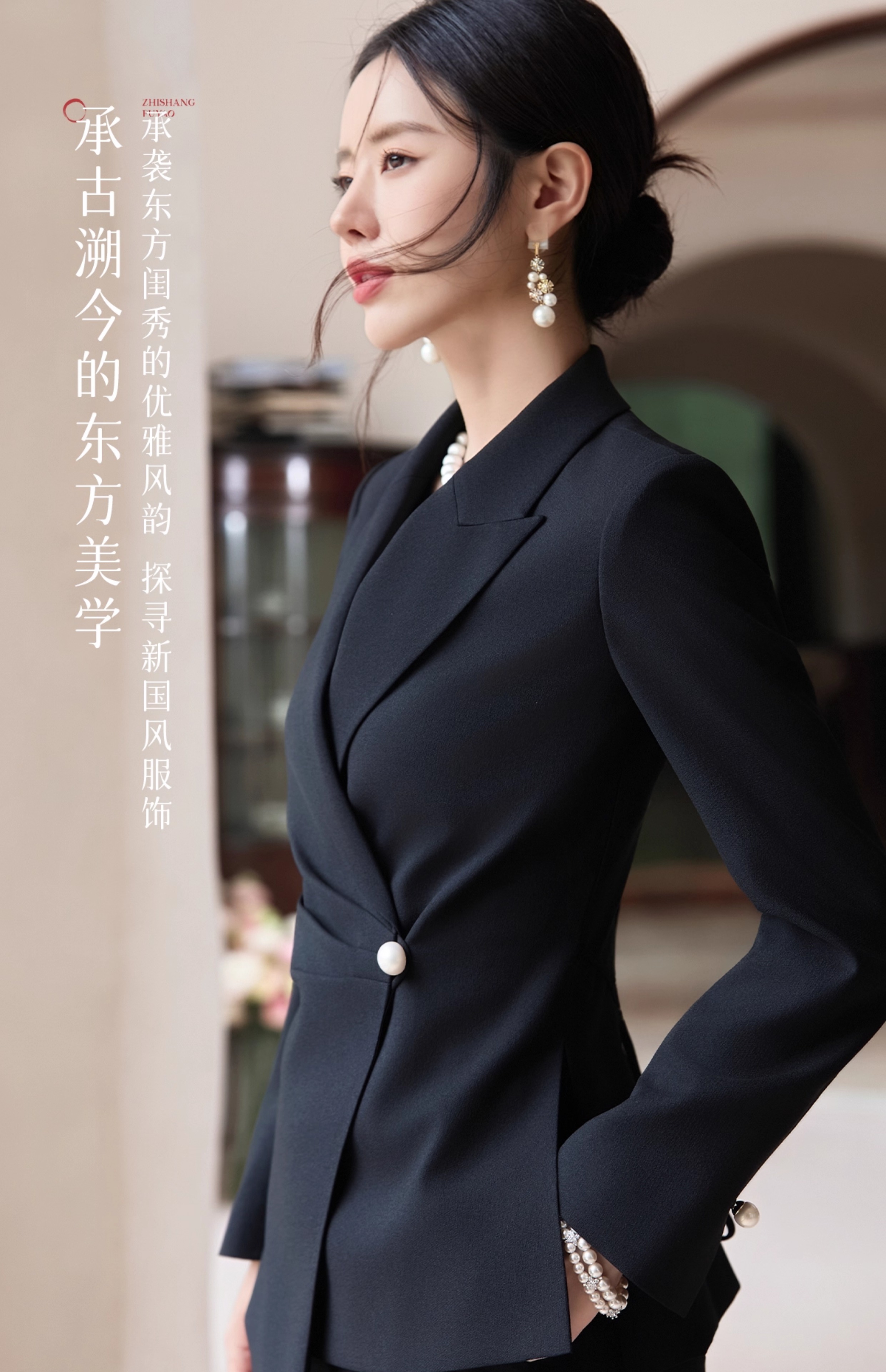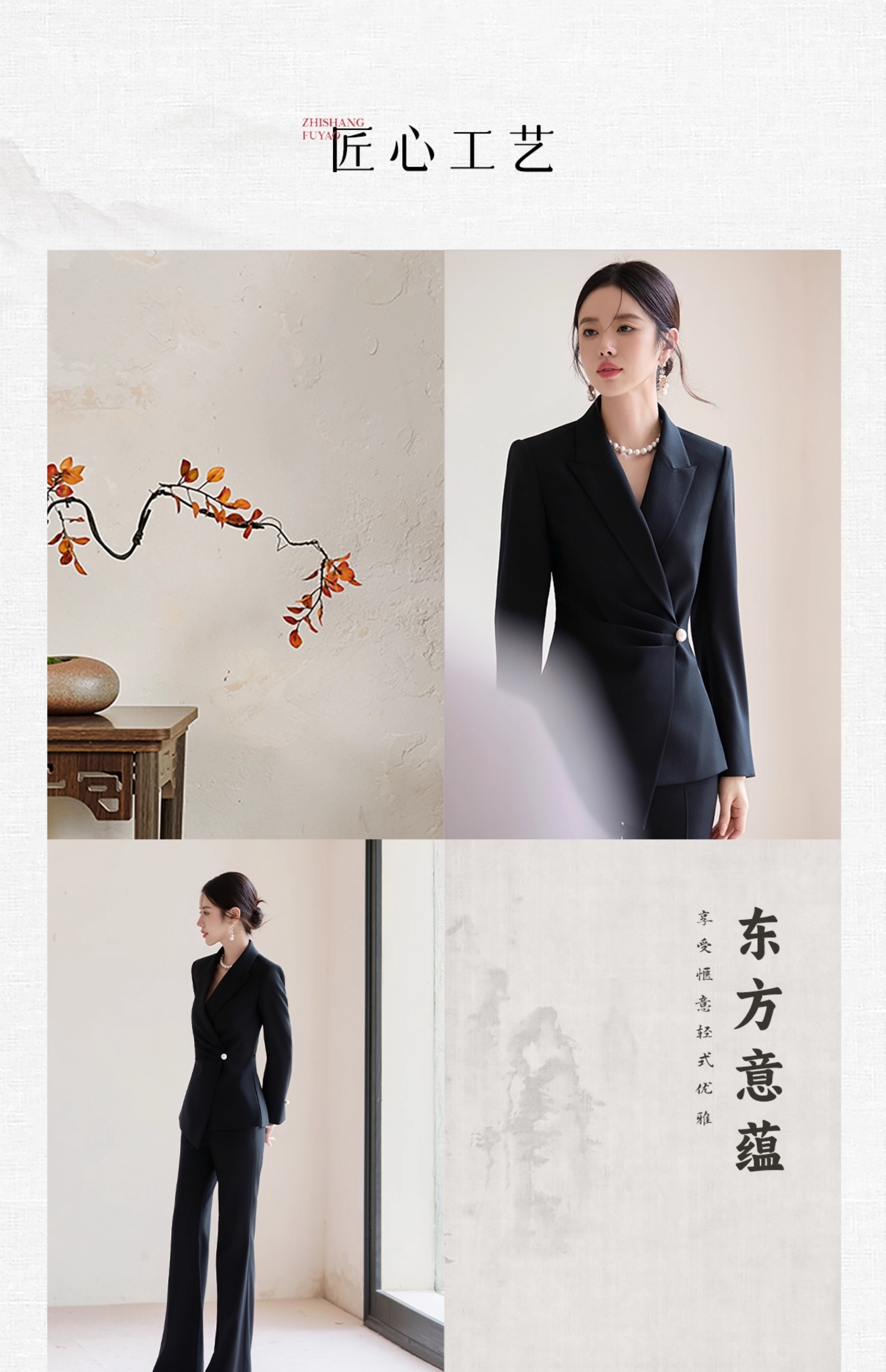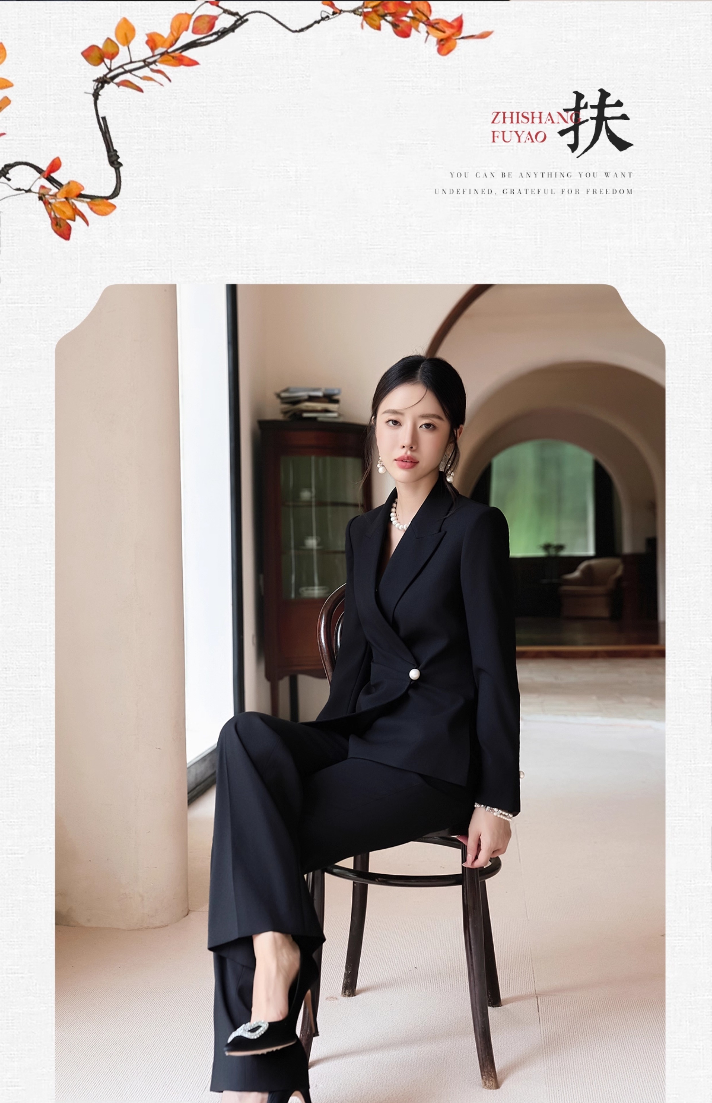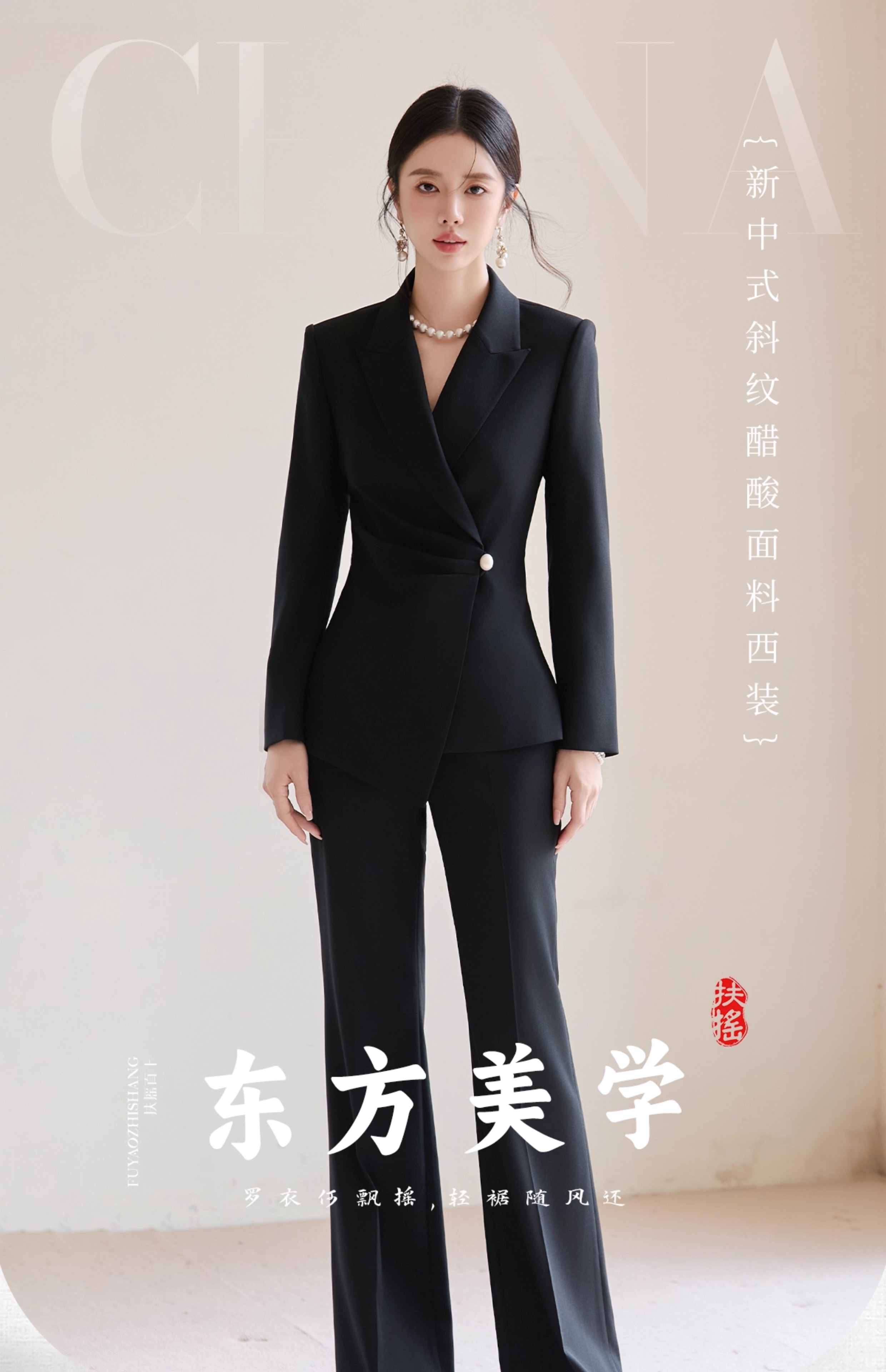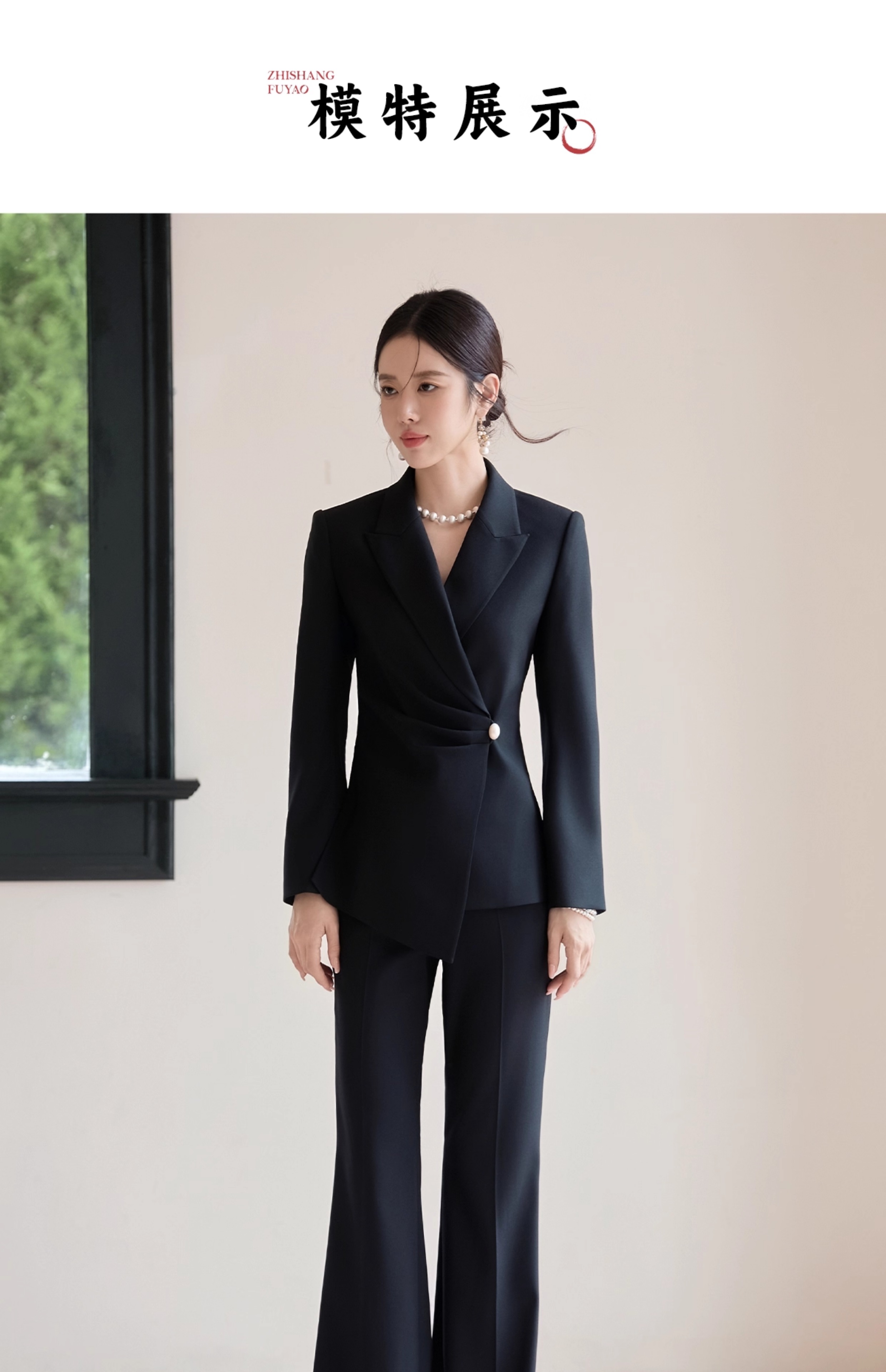 FUYAO扶摇 黑色西装套装女2025秋高级感醋酸西服外套微喇裤两件套