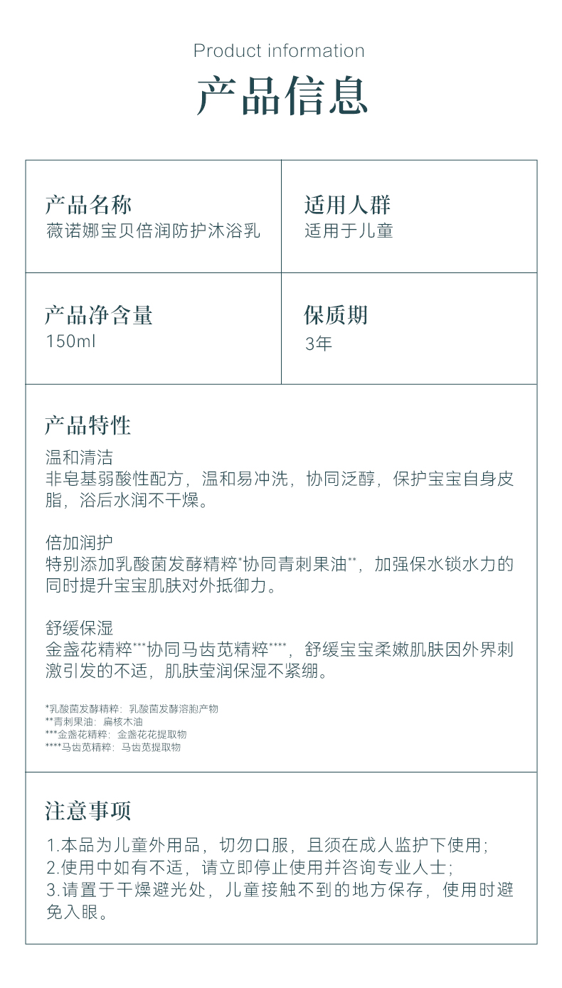 【毛爸专属】薇诺娜宝贝倍润防护沐浴乳150ml