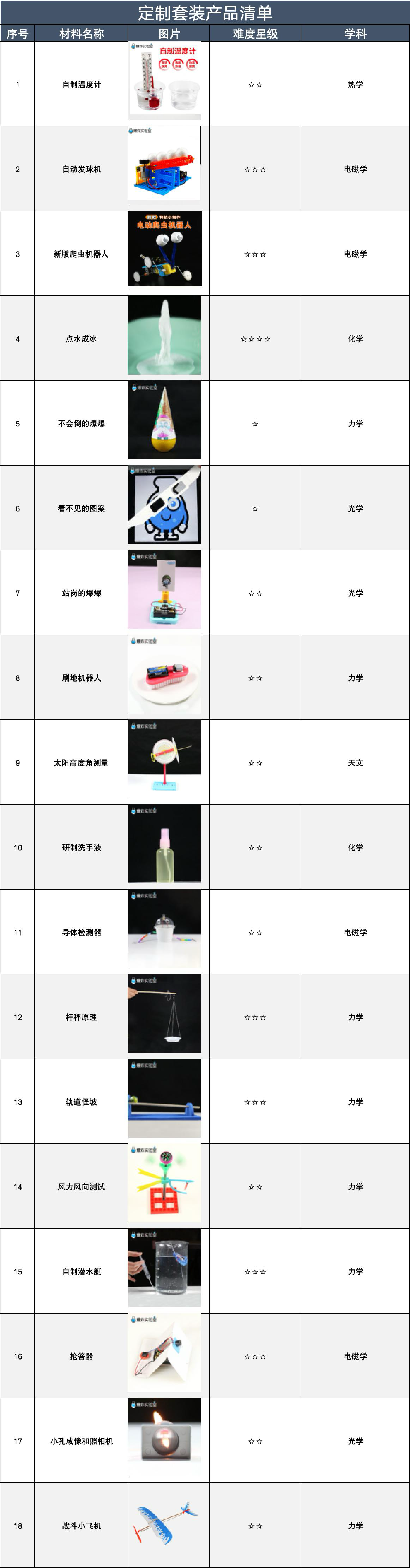 爆炸科学实验室配套实验器材