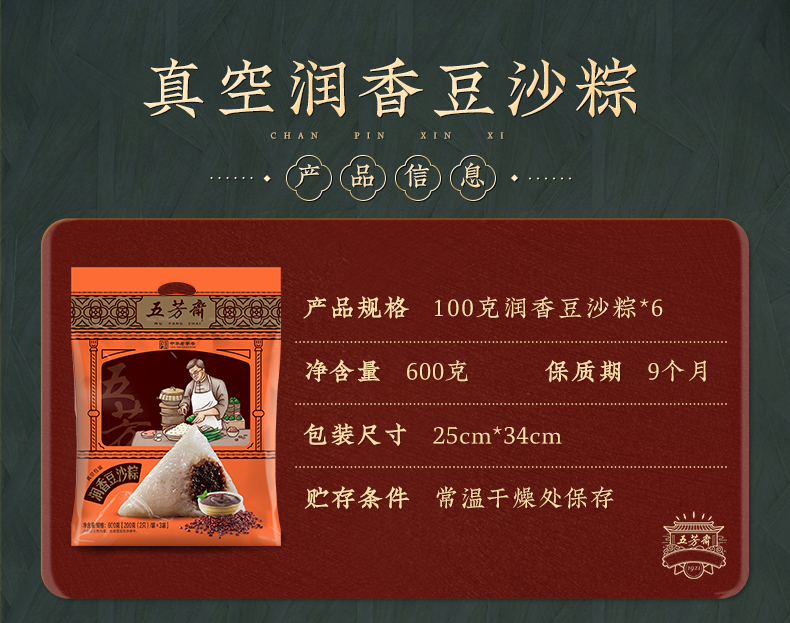 五芳斋 锁鲜润香豆沙鲜粽 豆沙绵密清甜 米香自然融合 软糯拉丝不齁甜 100g*6