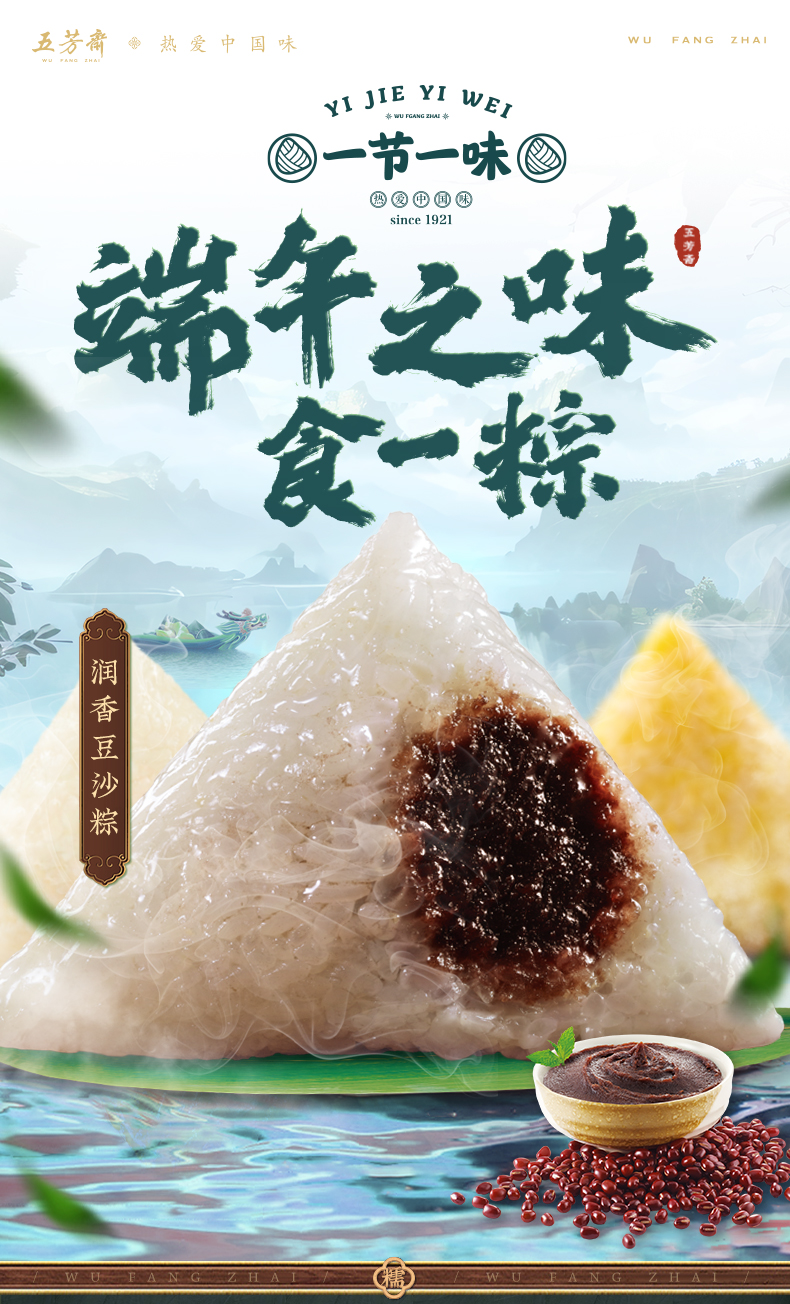 五芳斋润香豆沙鲜粽 豆沙绵密清甜,米香自然融合 软糯拉丝不齁甜 140g*2