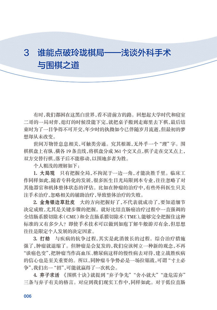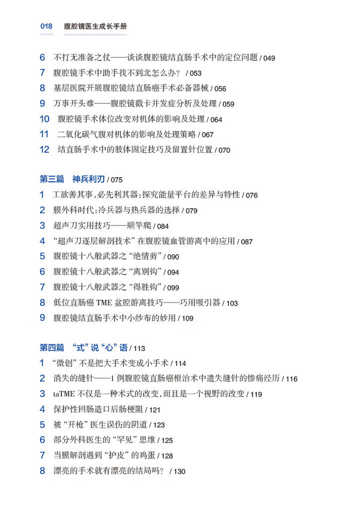 通过对腹腔镜结直肠手术从器械准备到体位摆放,从麻醉管理到术后镇痛,从阑尾切除到结肠切除,从国际共识到个案分析,从精准解剖到失败教训等等,涉及到腹腔镜结直肠手术的各种细节问题,逐个剖析,不追求教科书式大而全的部位切除步骤,只强调临床工作中的点滴细节。 特色(创新、权威、实用、可操作性等)介绍:强调文章内容短小精悍,切忌长篇累牍,围绕关键点展开,语句尽量轻松幽默,让年轻医生读的进去,学到知识!