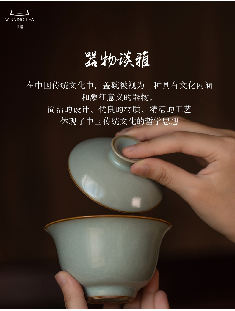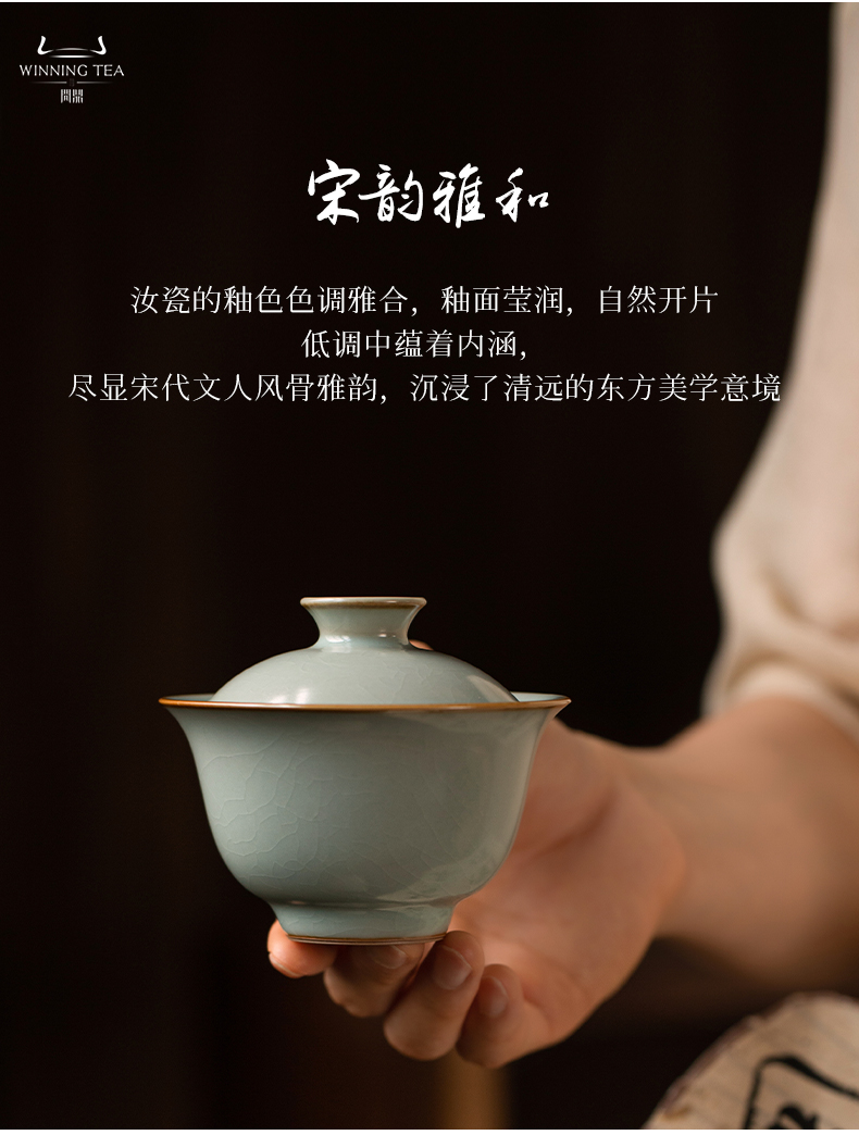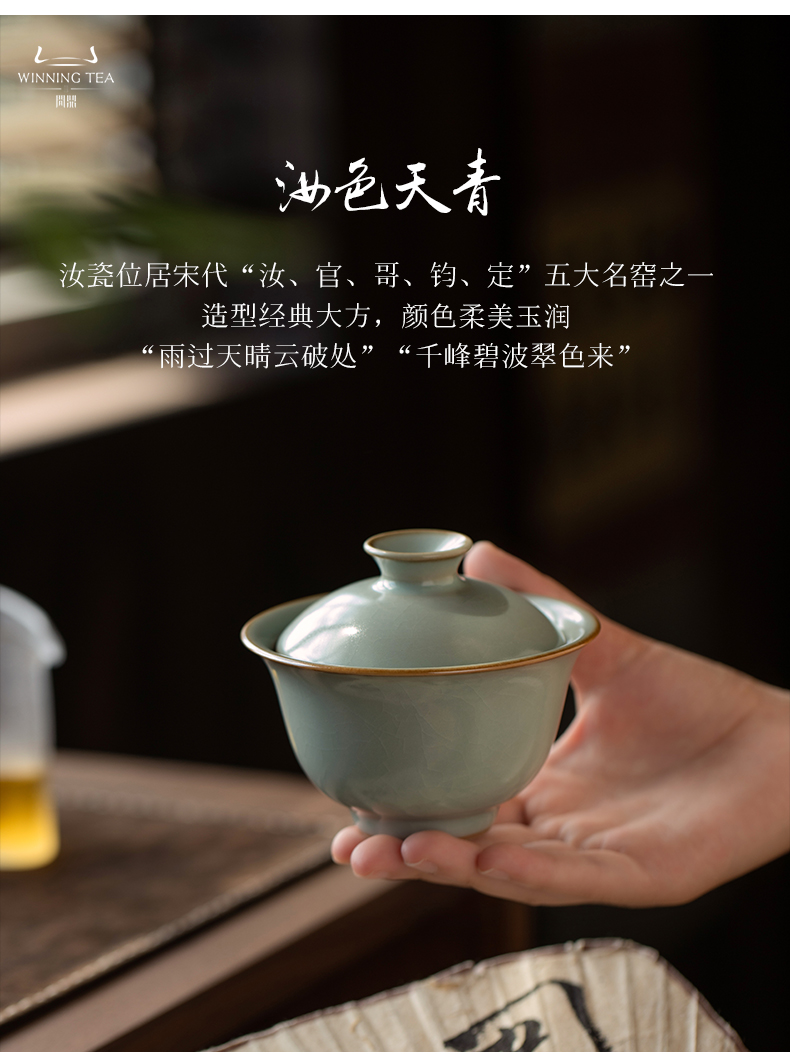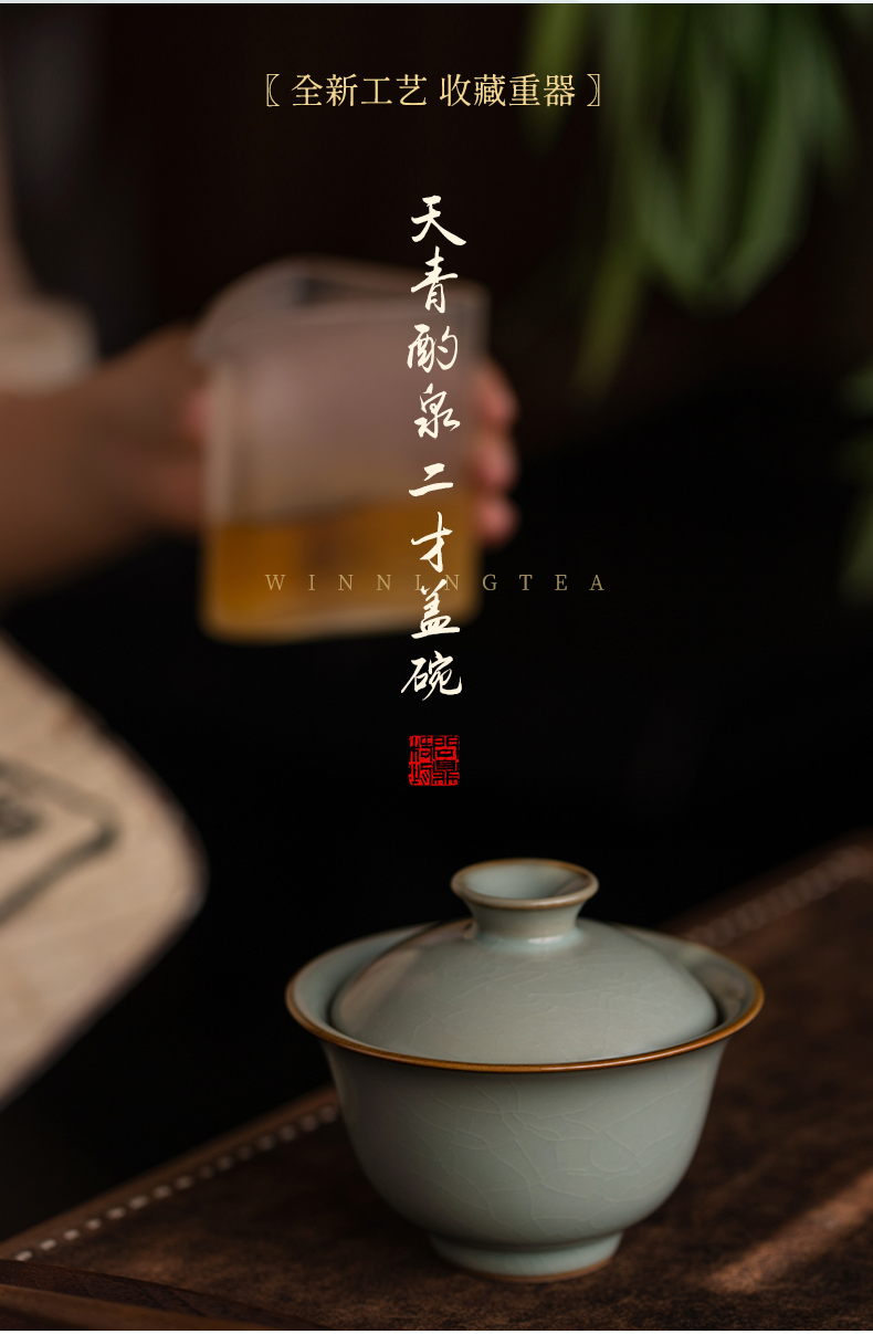 问鼎汝瓷鼎峰系列天青酌泉二才盖碗