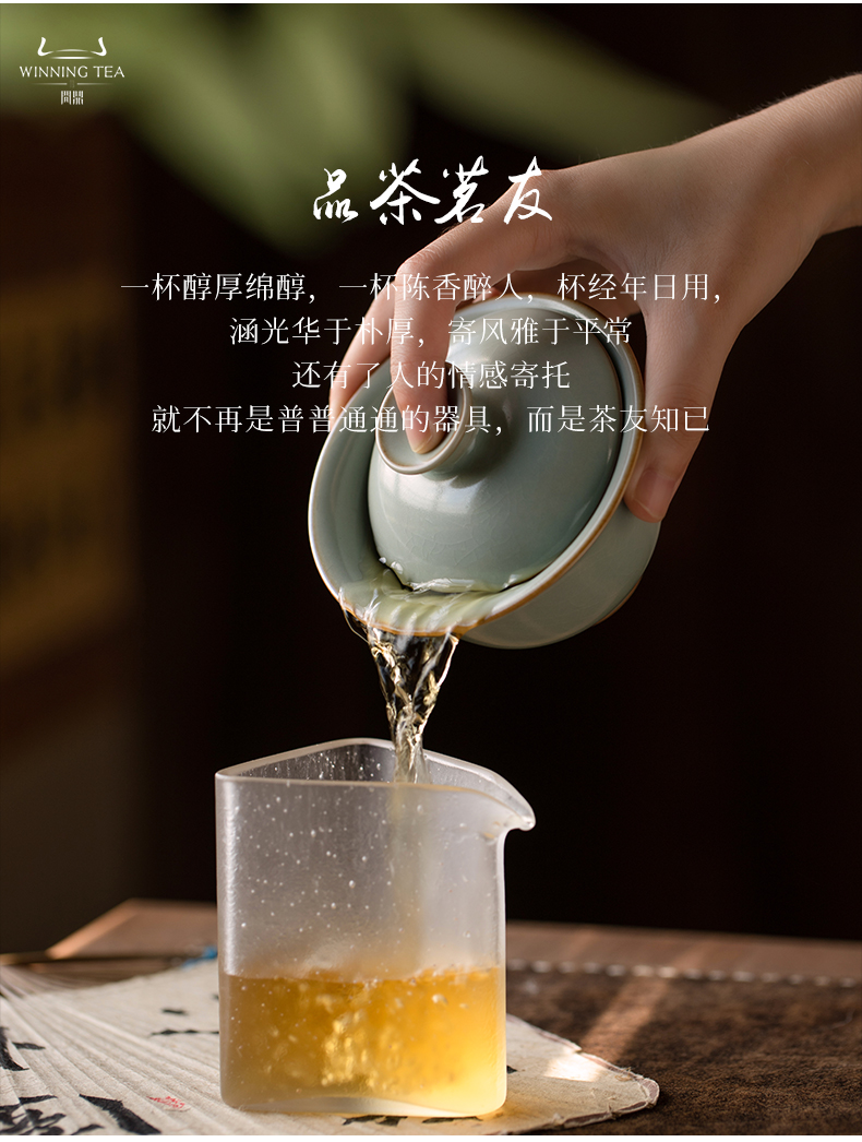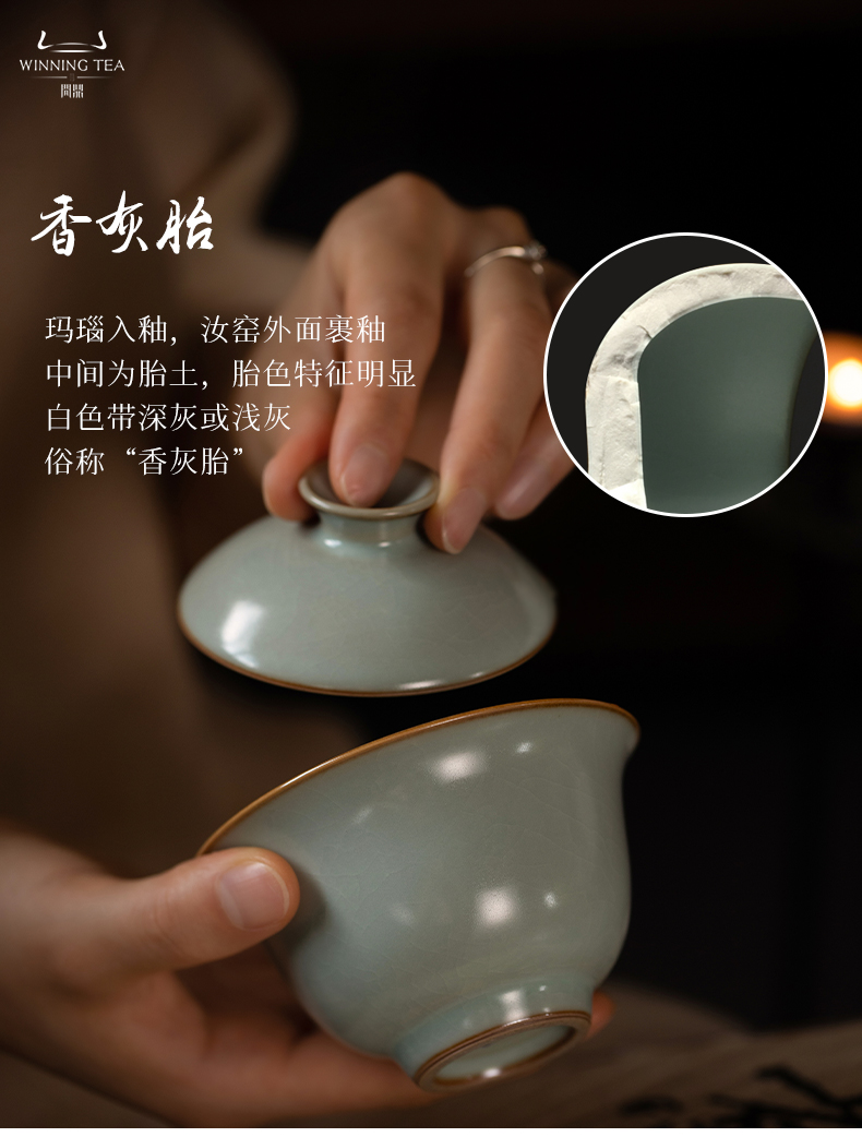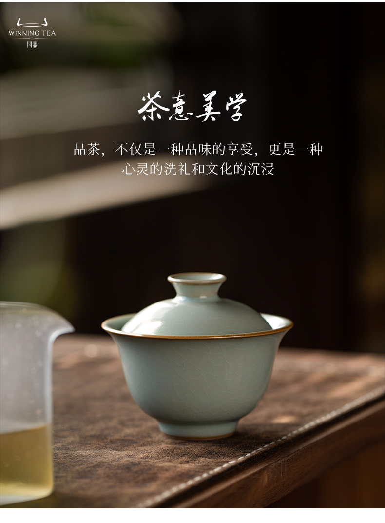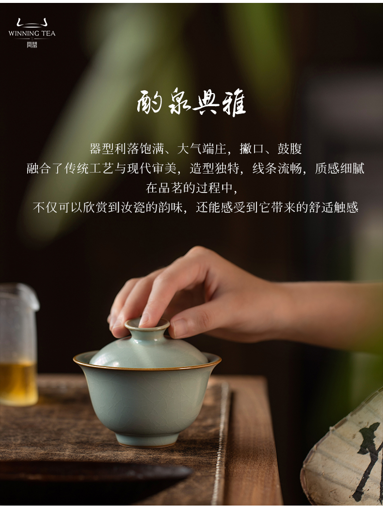 问鼎汝瓷鼎峰系列天青酌泉二才盖碗