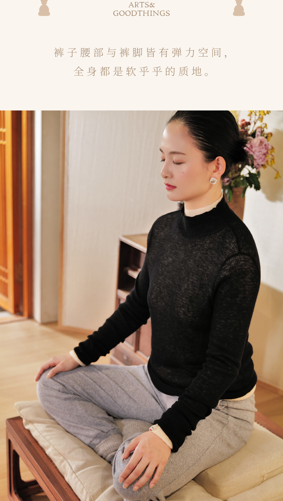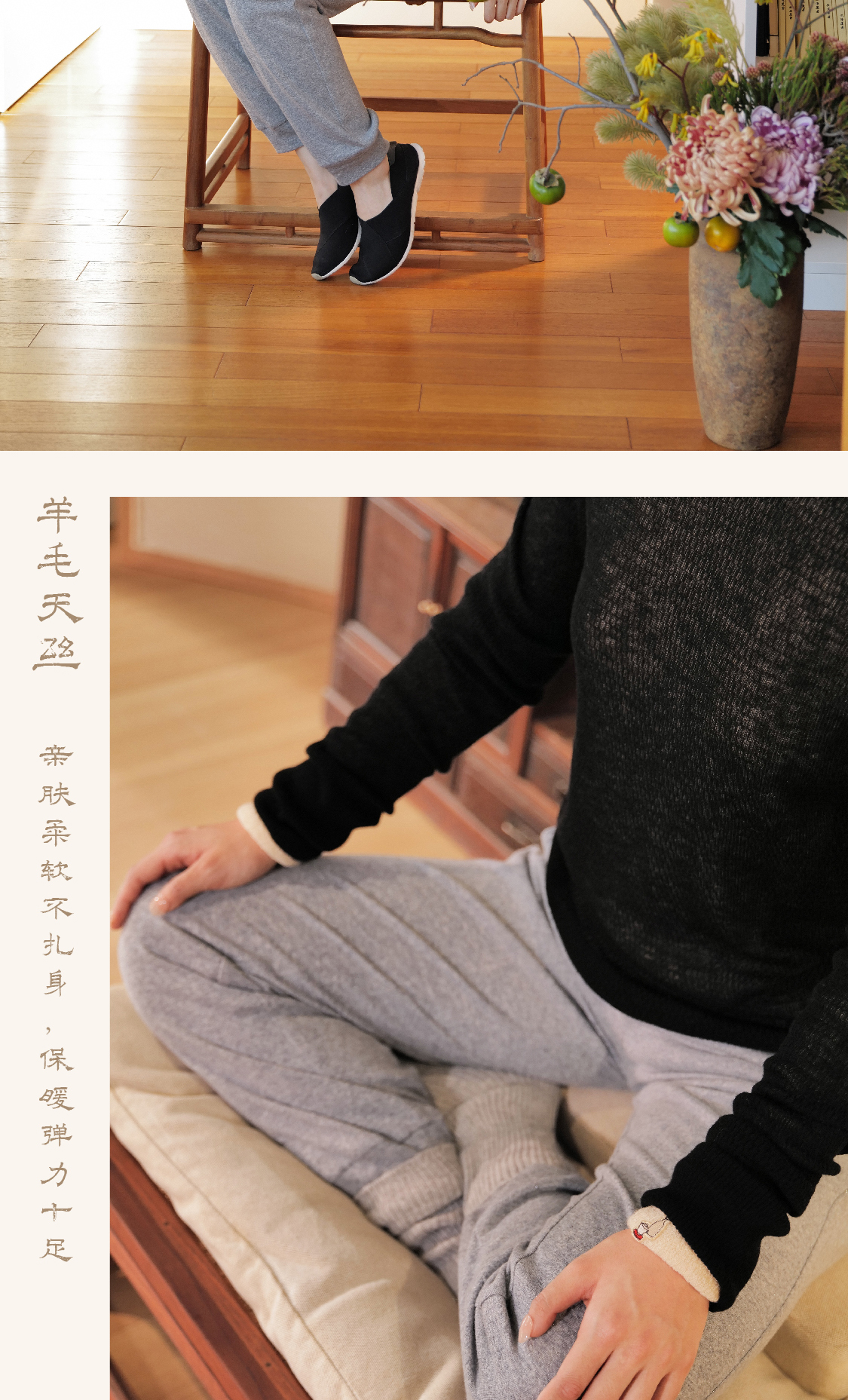 致柔翩然 羊毛静坐 自在松弛感暖裤 山林曦照