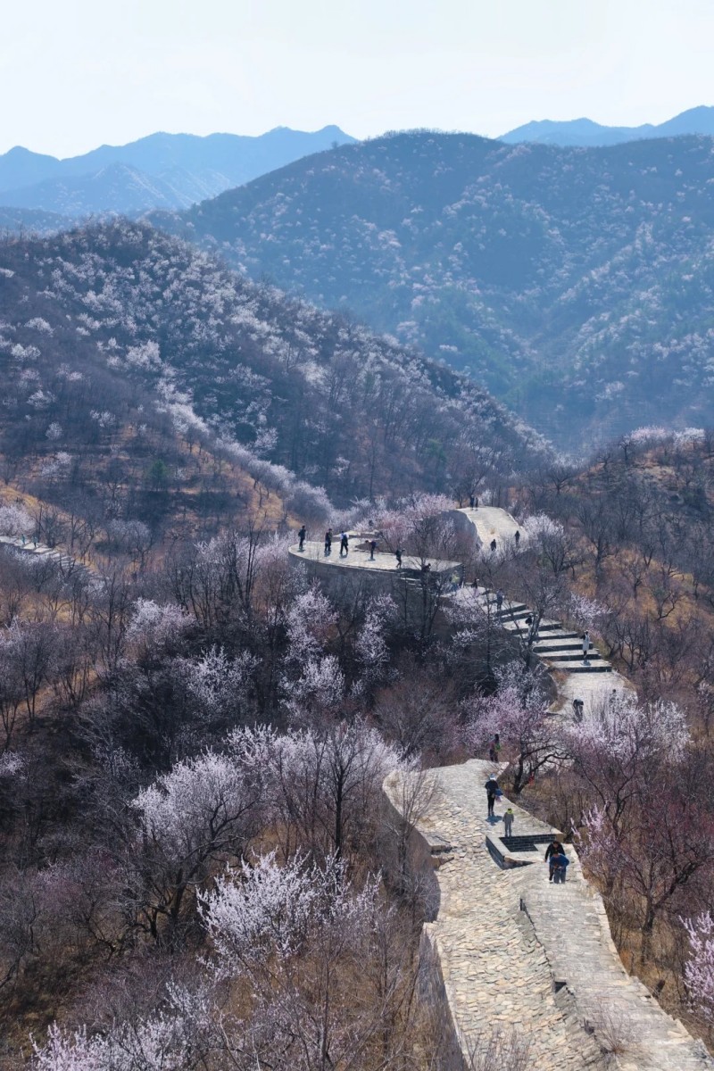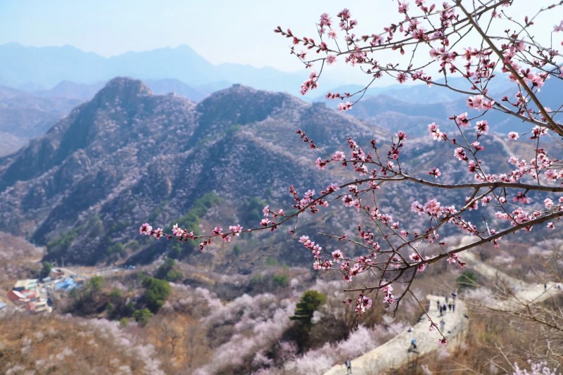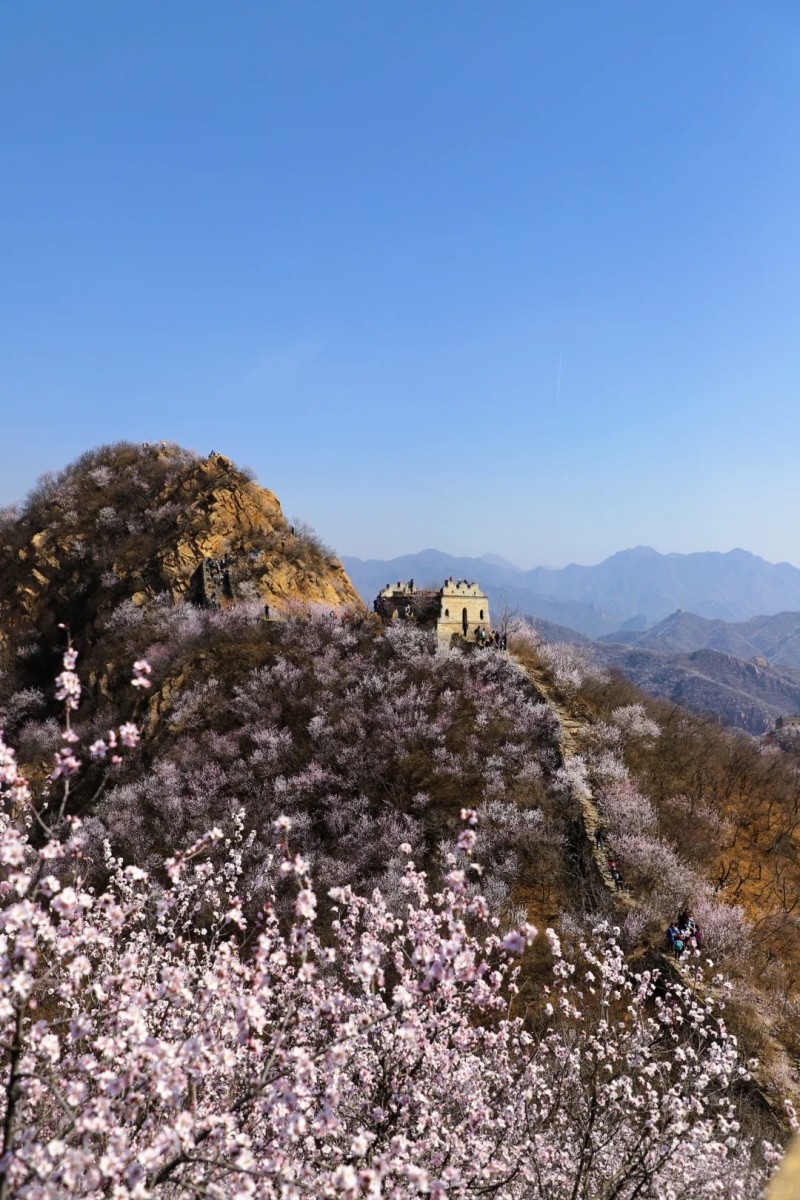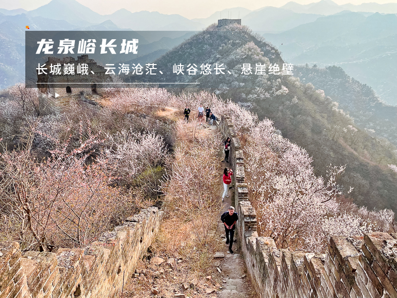 春季踏上龙泉峪 - 大云峡谷徒步路线,满是惊喜。从龙泉峪起步,古老长城旁,山桃花灼灼盛开,粉色花瓣与沧桑城墙相映,历史韵味与烂漫春光交织。之后步入大云峡谷,峡谷内溪流潺潺,溪边桃枝低垂,落花随水漂流。再往前,漫山遍野的桃花似云霞般绚丽,点缀在绿树间。全程约 8 公里,一路上,徒步者在清新花香与秀丽景致中穿梭,感受着大自然的蓬勃生机,尽享春日徒步的惬意美好 。