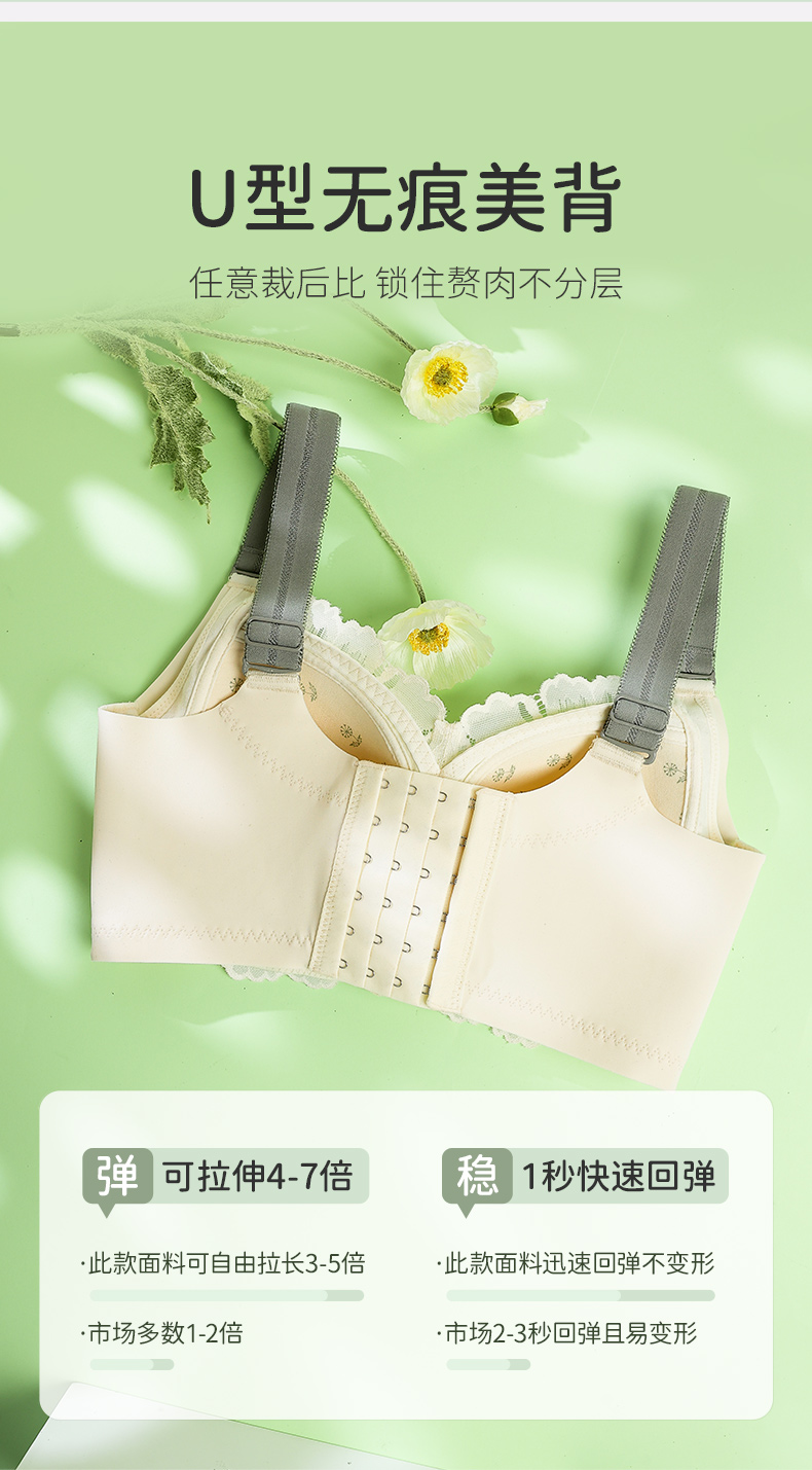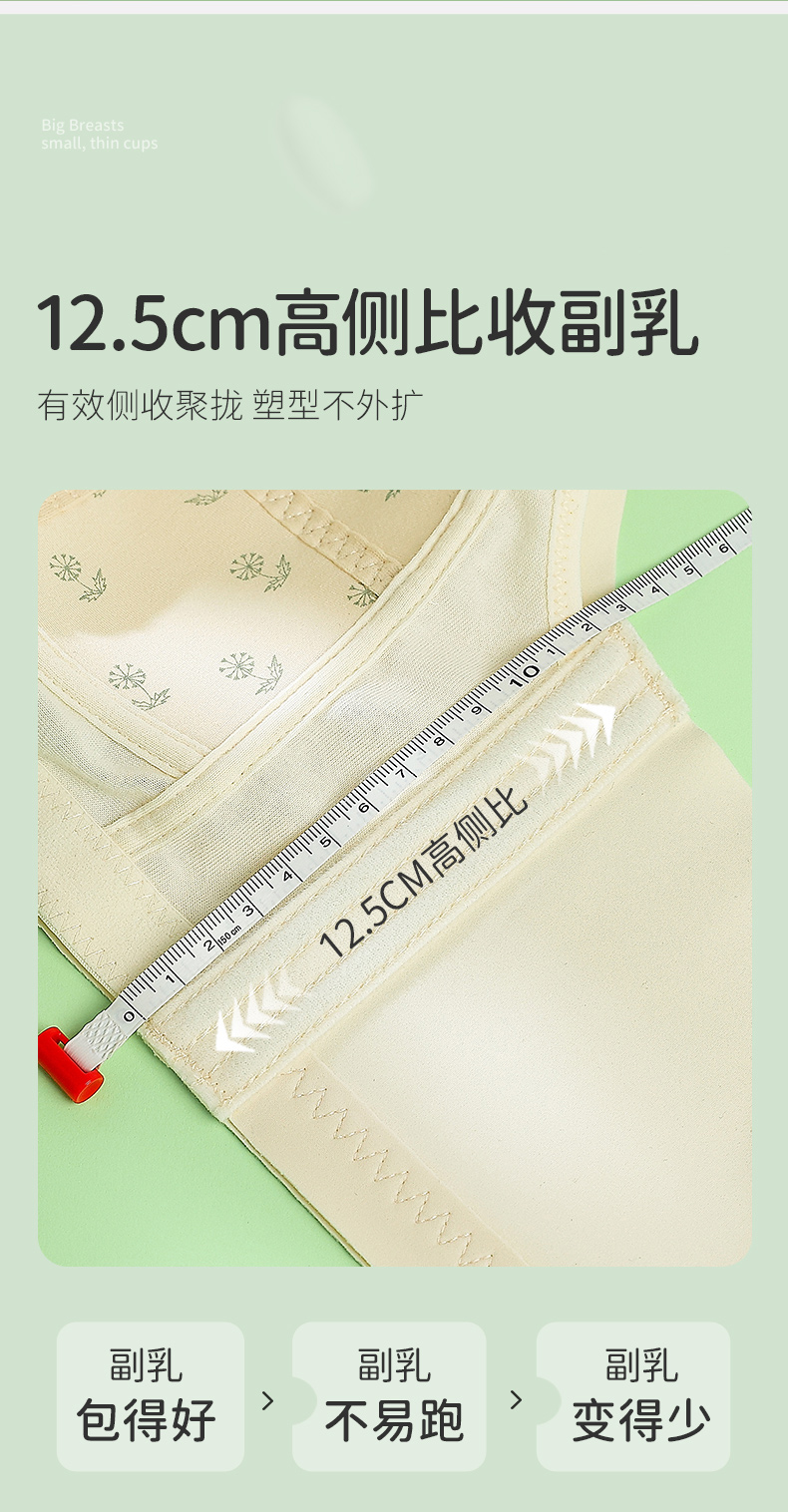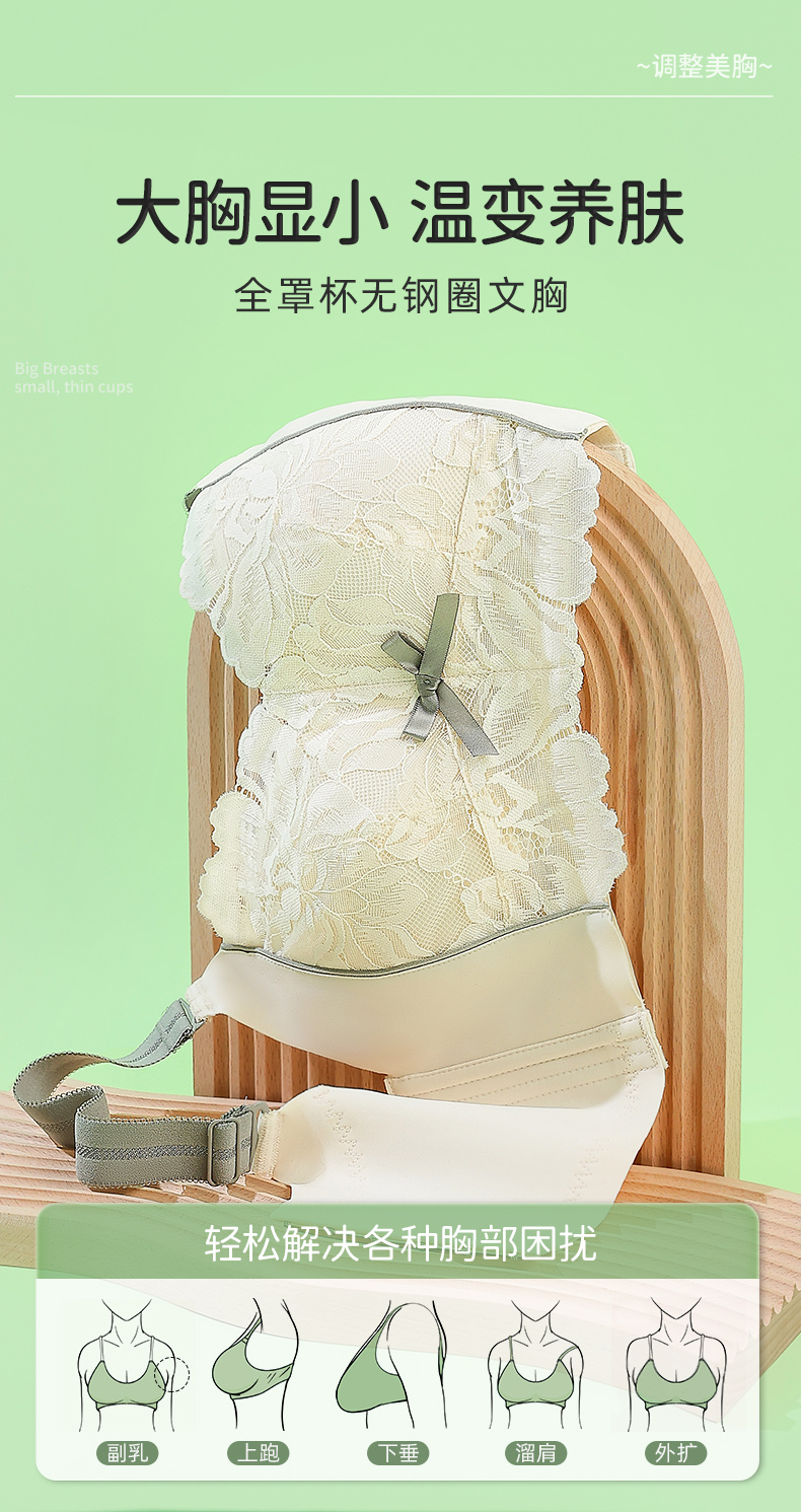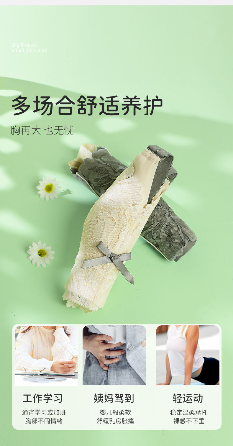 雅黛丽内衣女大胸显小夏季薄款文胸无钢圈收副乳防下垂调整型胸罩