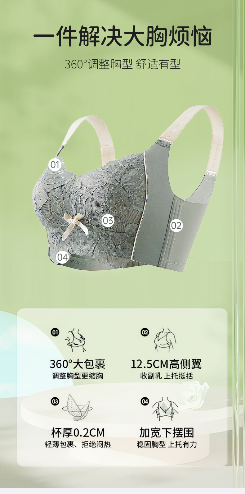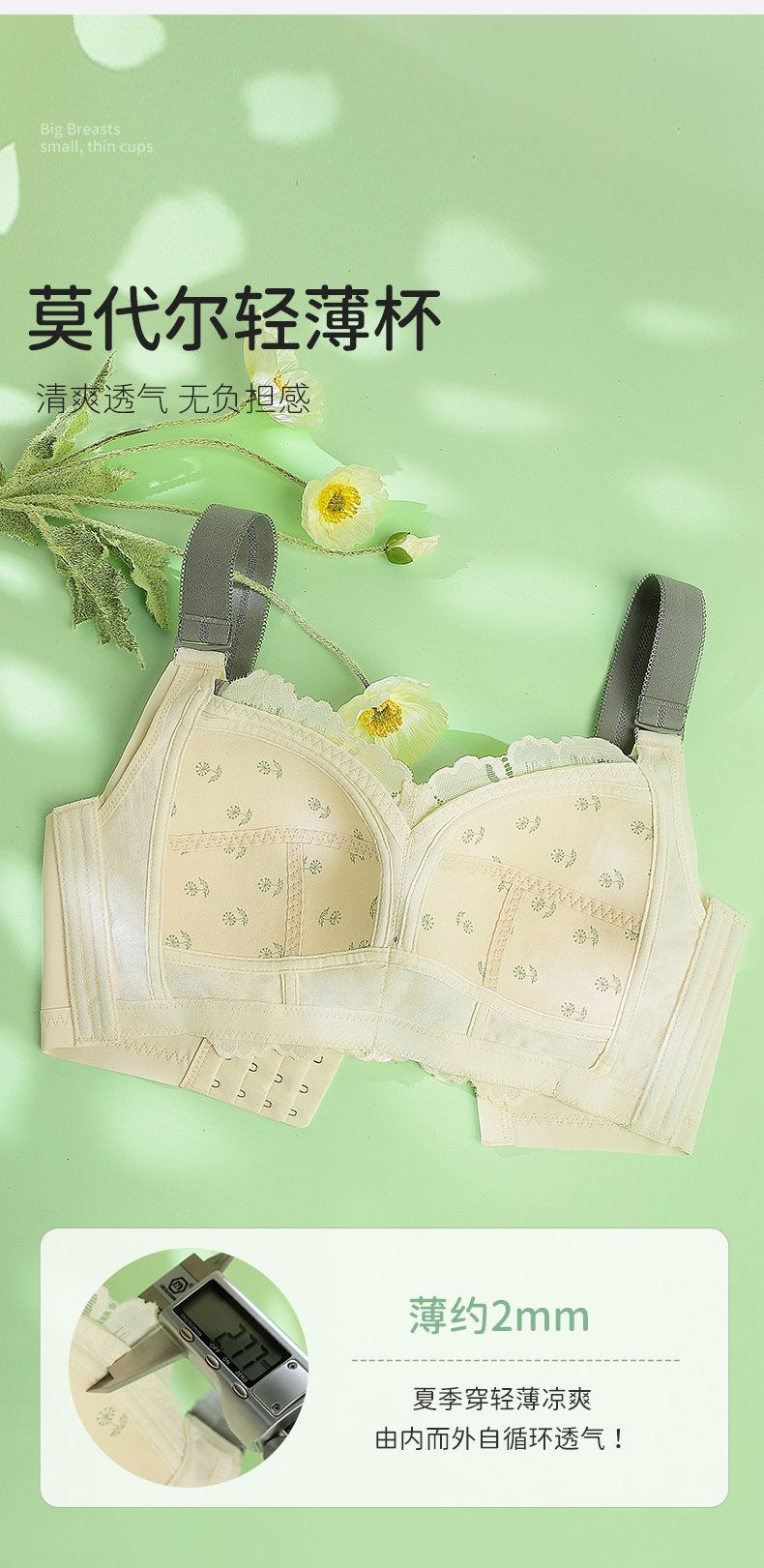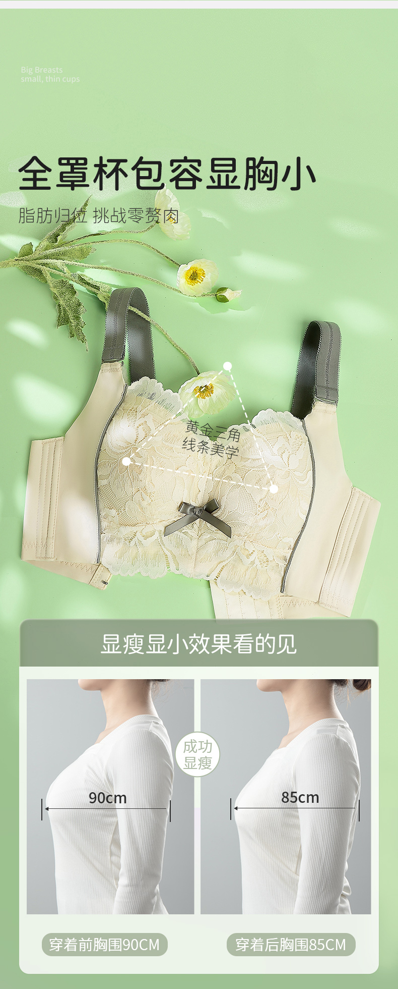雅黛丽内衣女大胸显小夏季薄款文胸无钢圈收副乳防下垂调整型胸罩