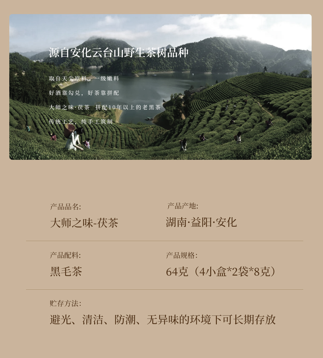 山水悠悠 大师之味茯茶 黑茶袋泡茶叶礼盒装64g*4条