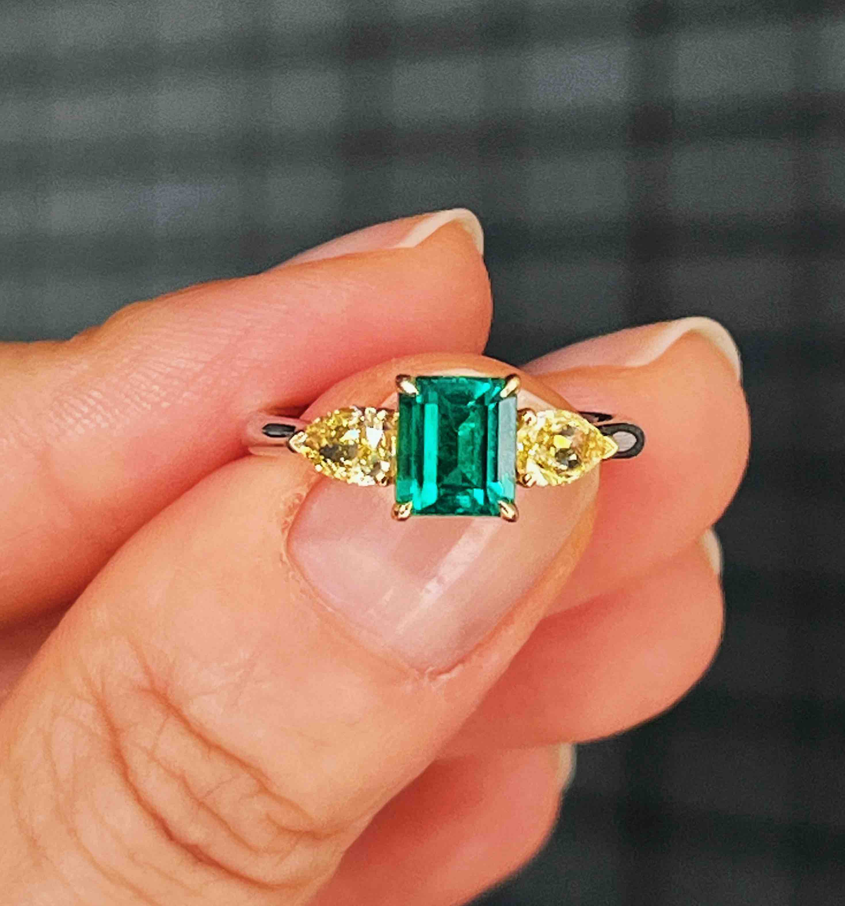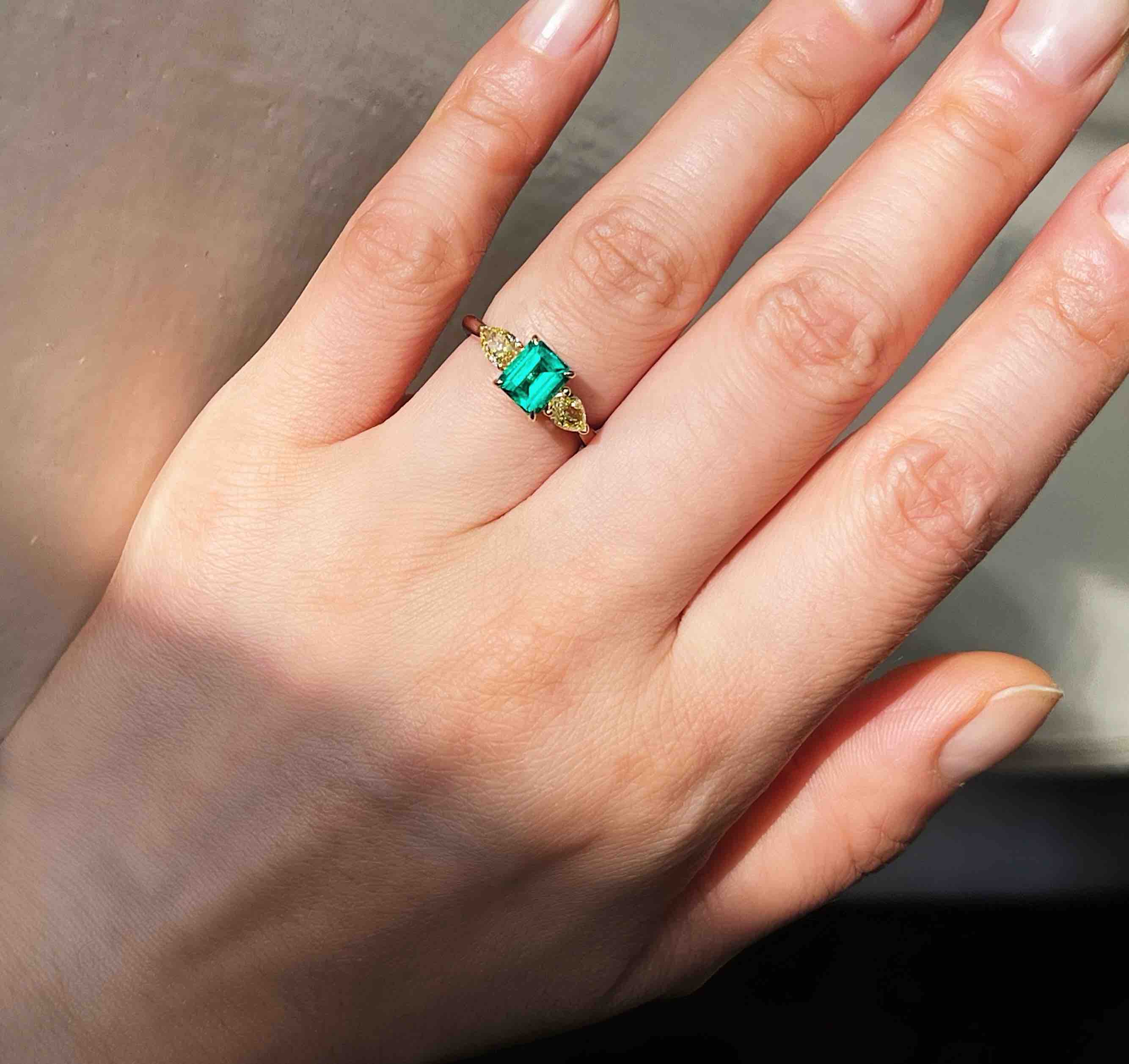 CLASSIC系列 18K镶天然彩黄钻和祖母绿 戒指