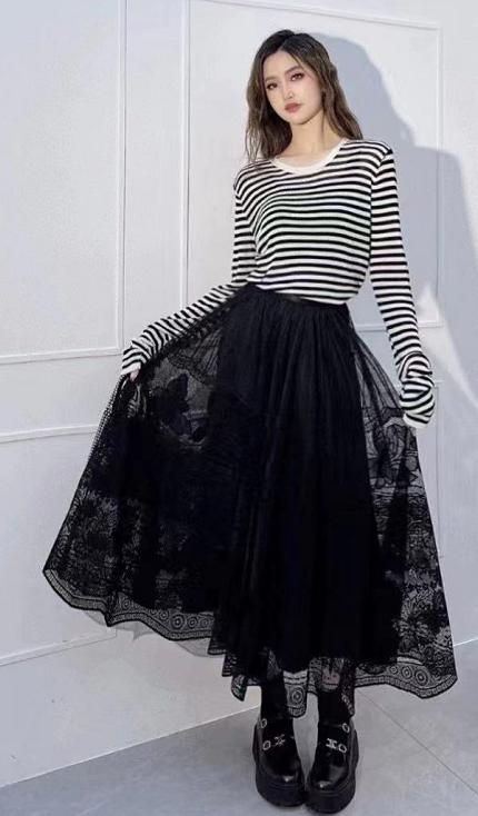 精致的绣花图案如同艺术品一般,半裙的定位花裙边设计让整件裙子更加立体,增加了层次感。半裙的超大摆设计在行走间摇曳生姿,充满了女人味。穿着它都感觉自己变得更加自信、更加优雅。