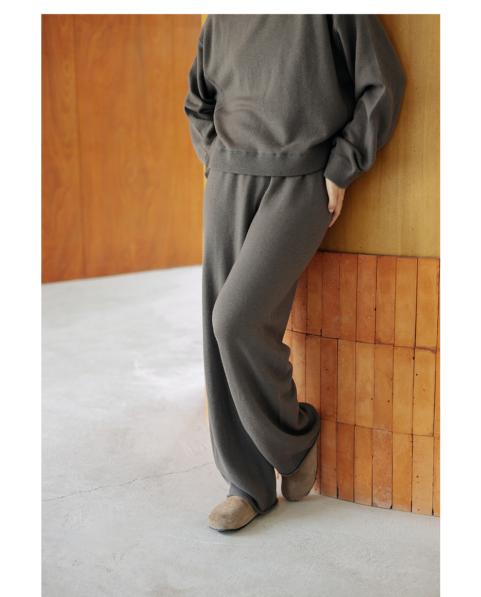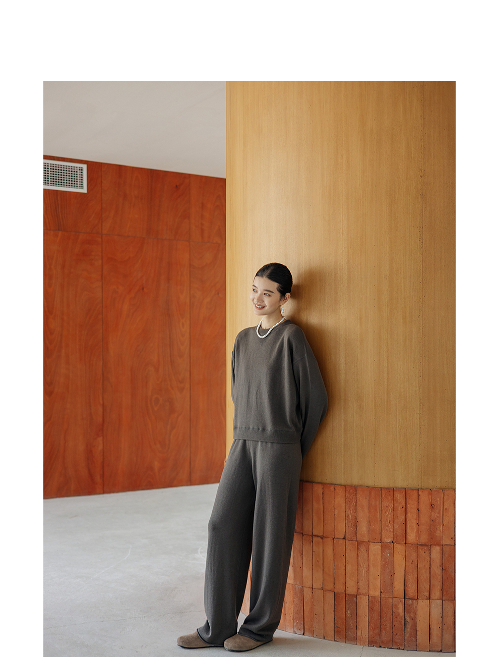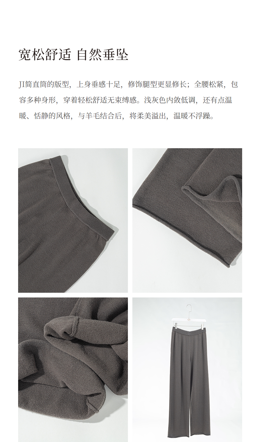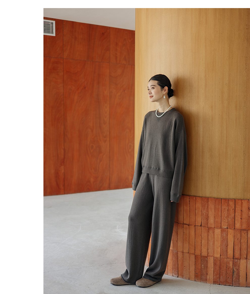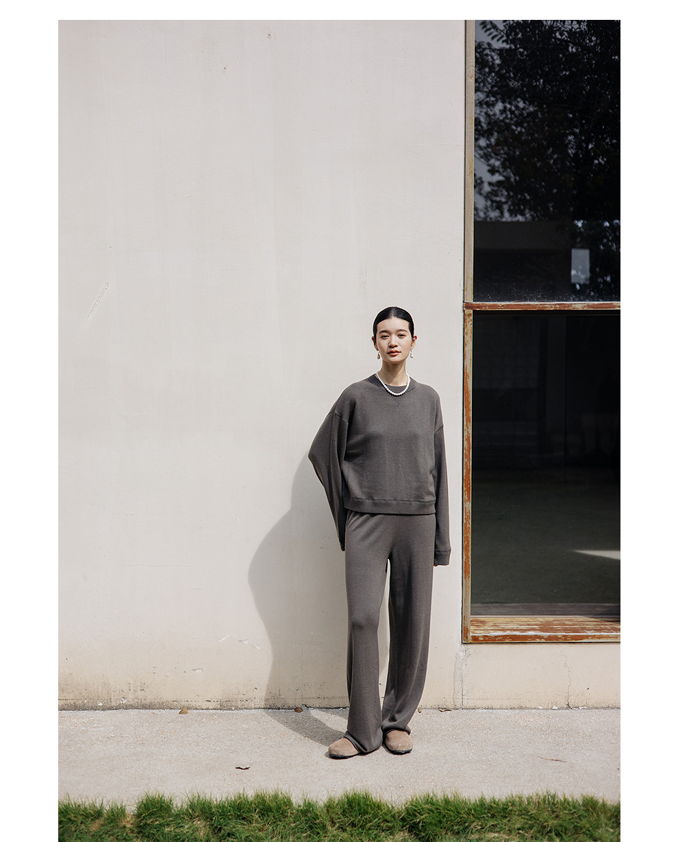绽放665-JC666朵/绵羊毛慵懒感宽松落肩针织套头毛衣直筒长裤套装