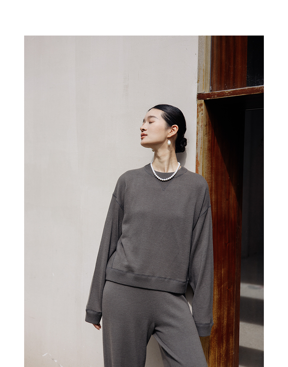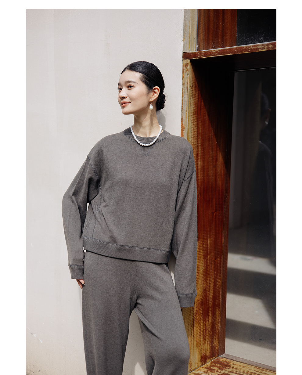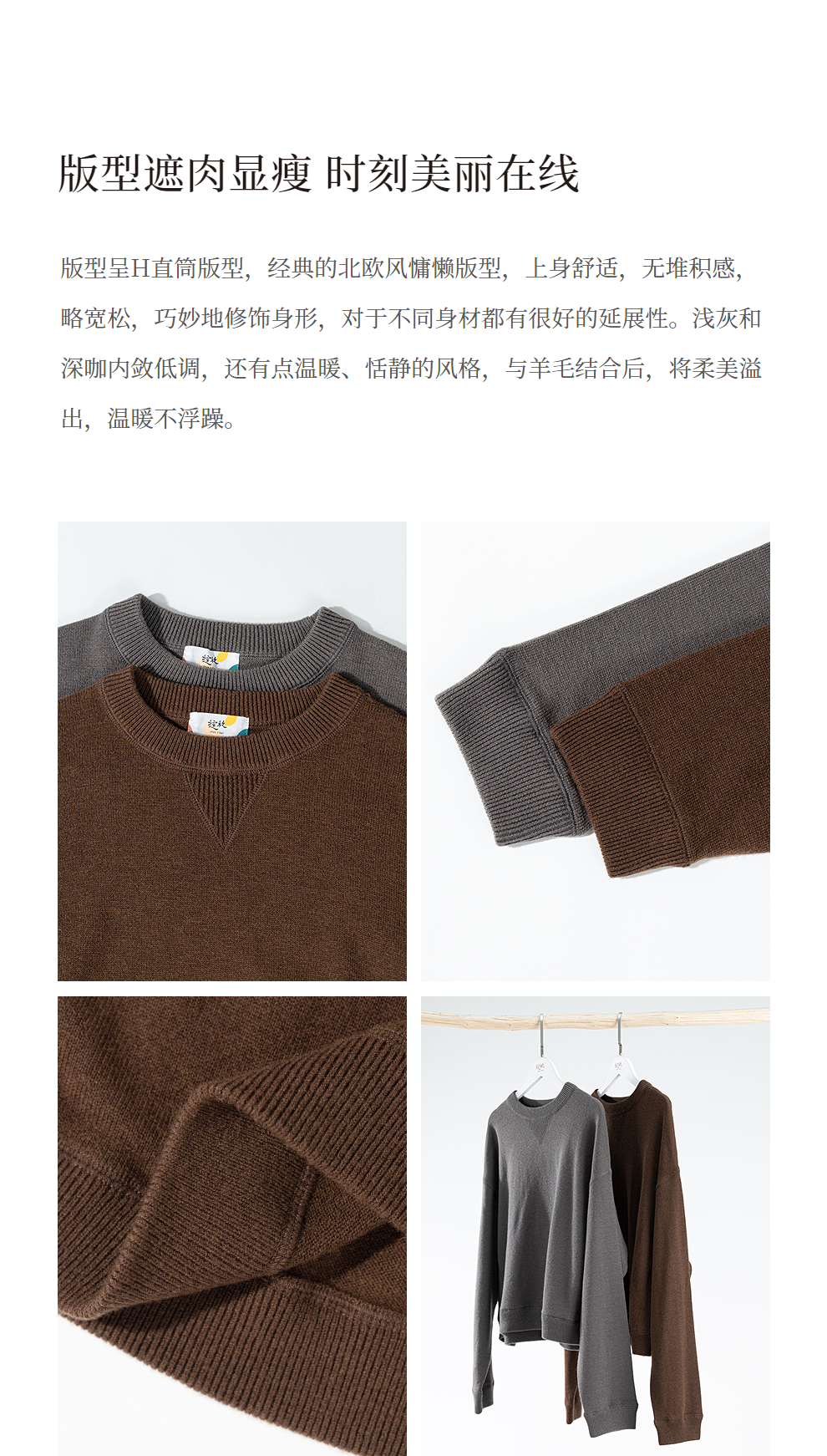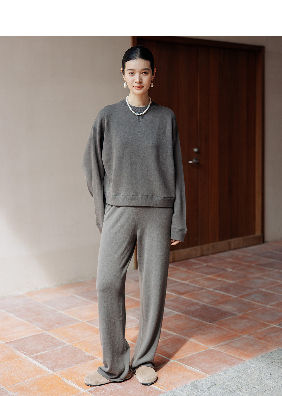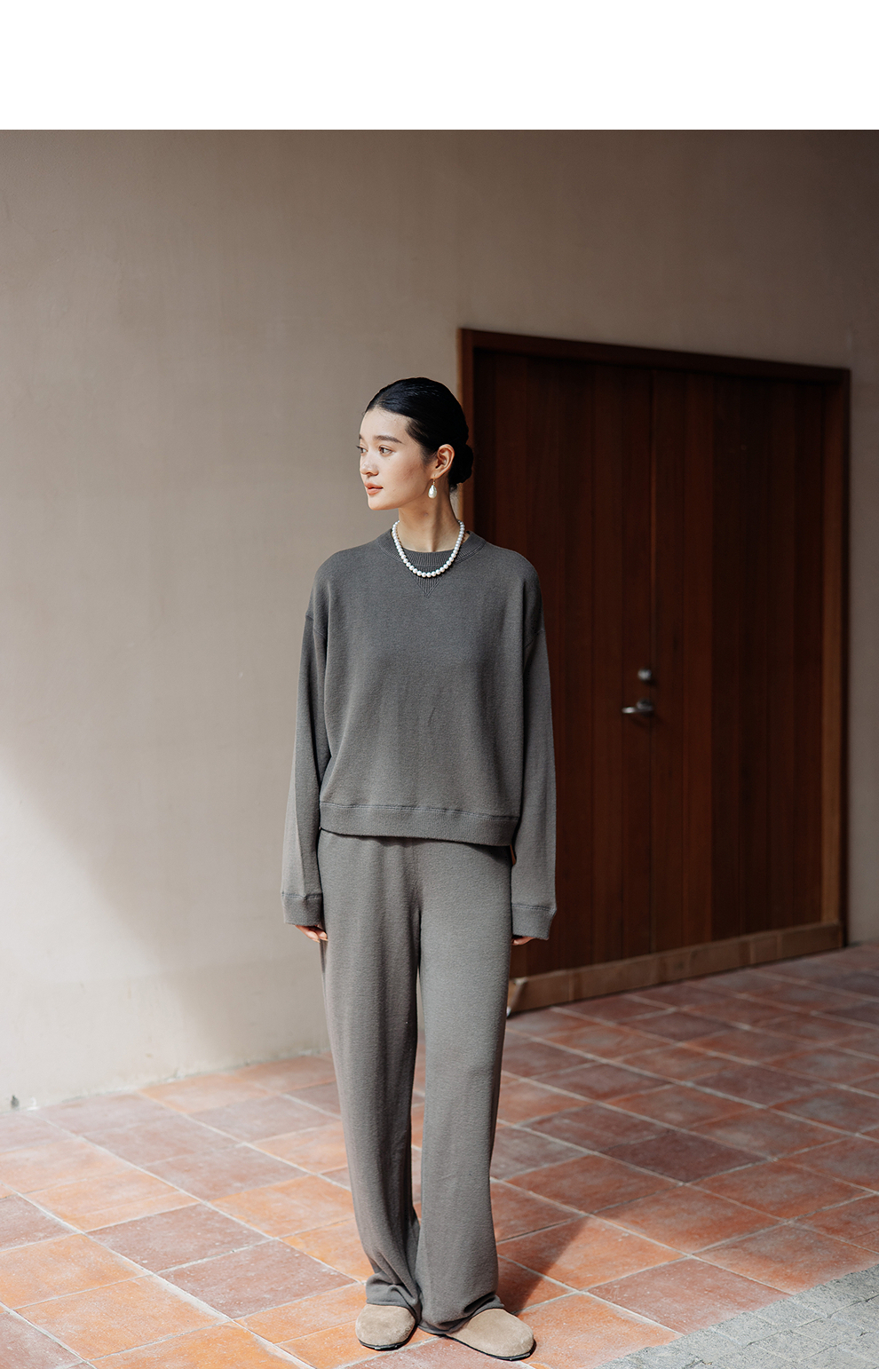 绽放665-JC666朵/绵羊毛慵懒感宽松落肩针织套头毛衣直筒长裤套装