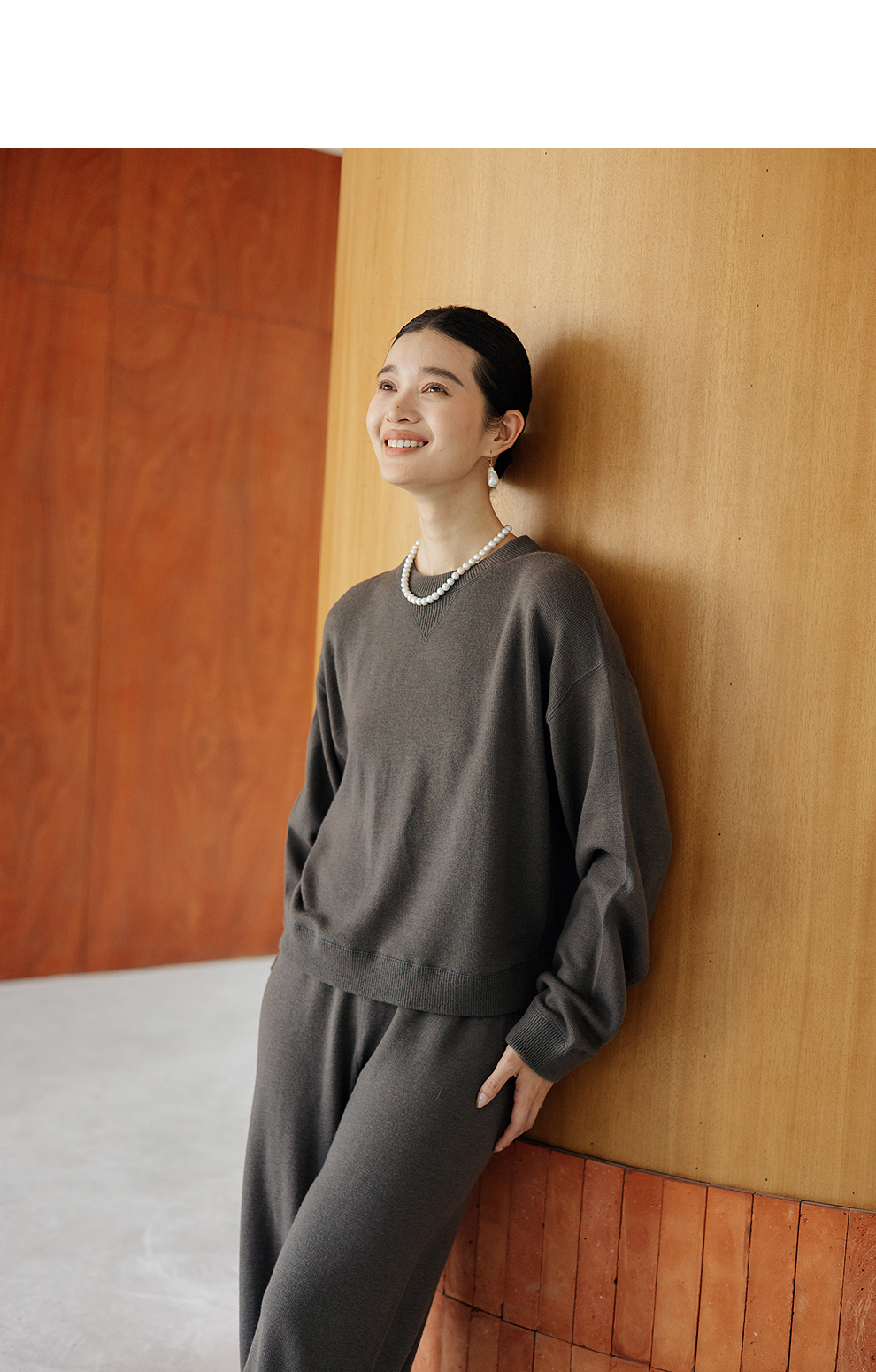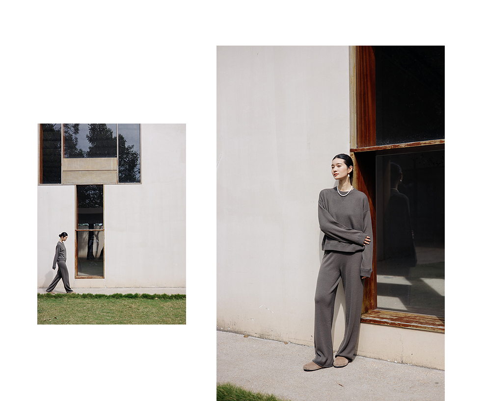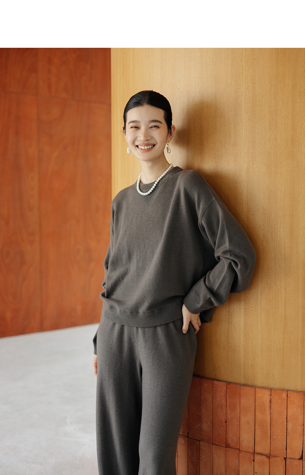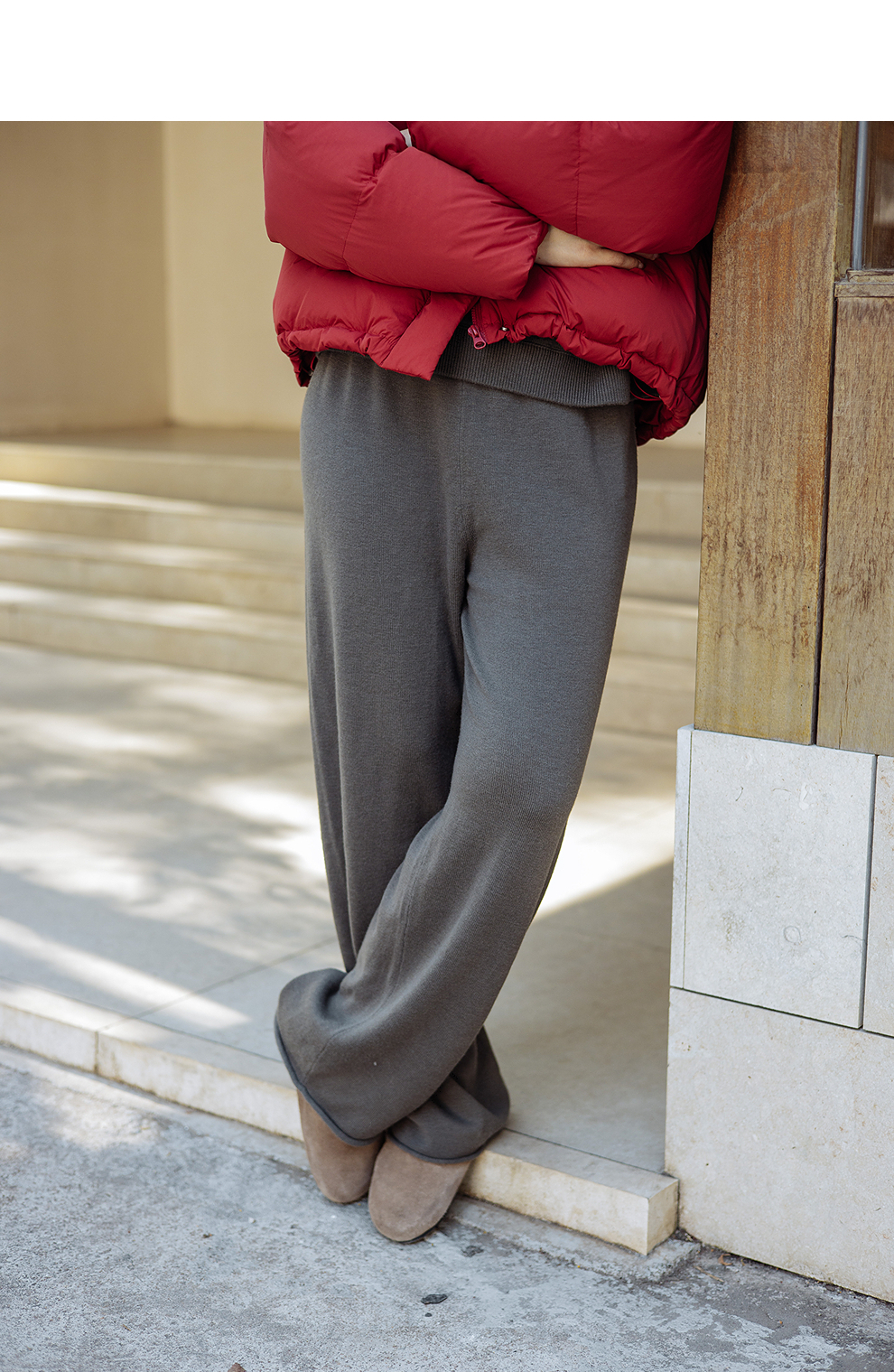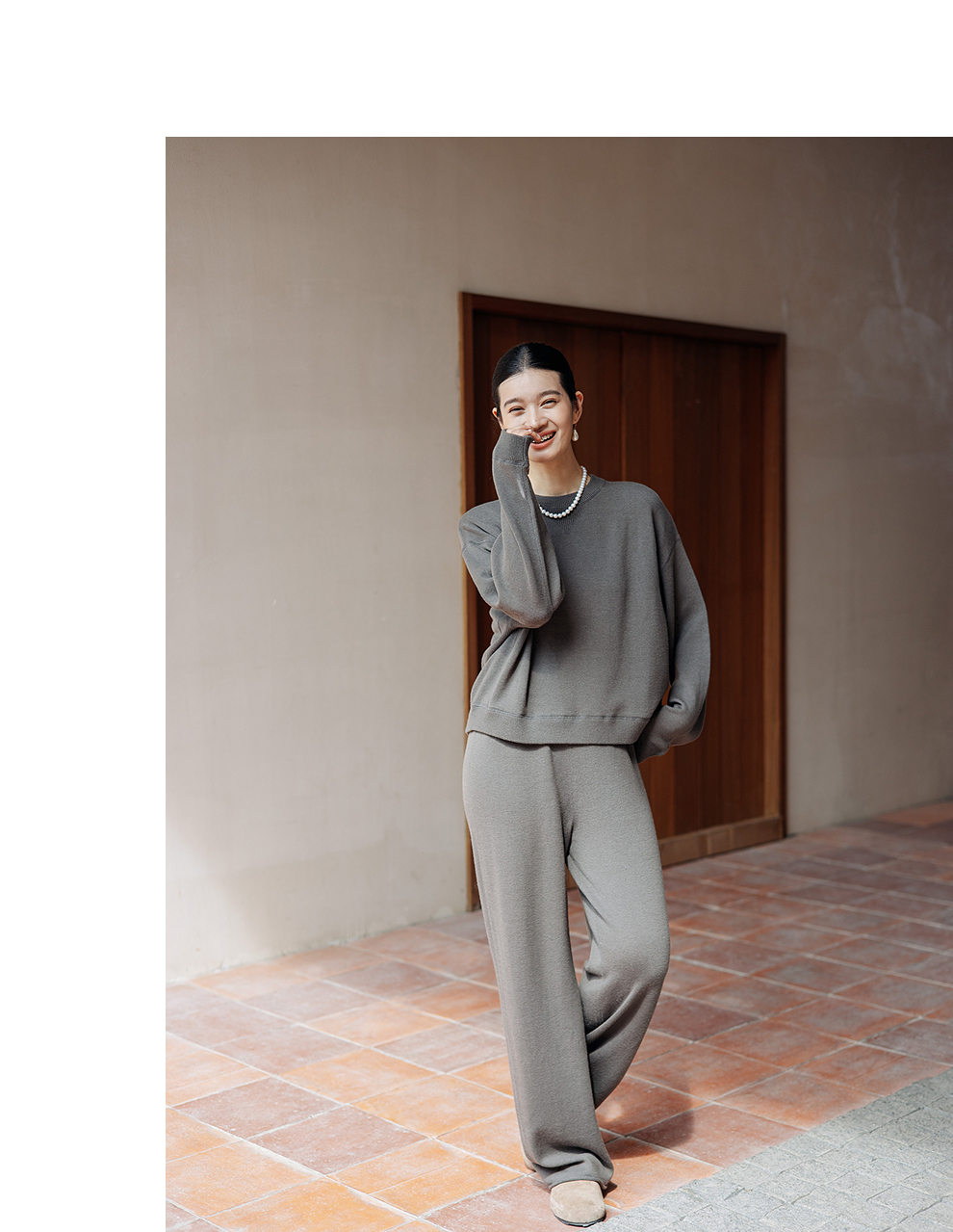绽放665-JC666朵/绵羊毛慵懒感宽松落肩针织套头毛衣直筒长裤套装