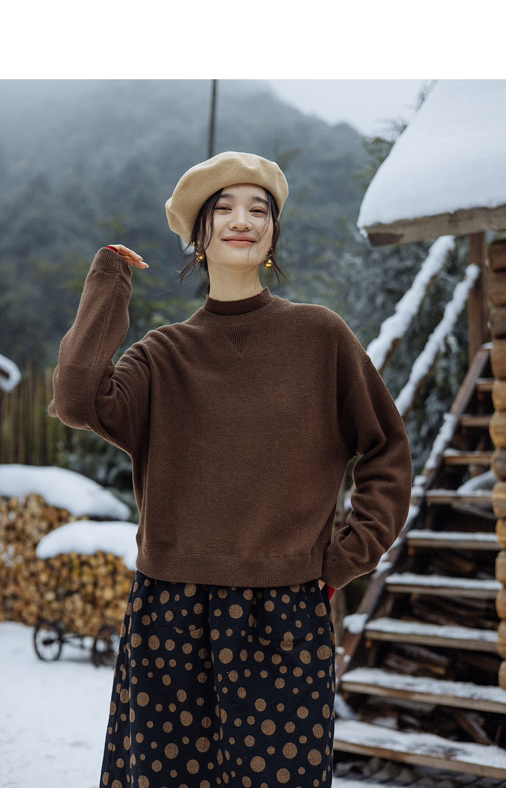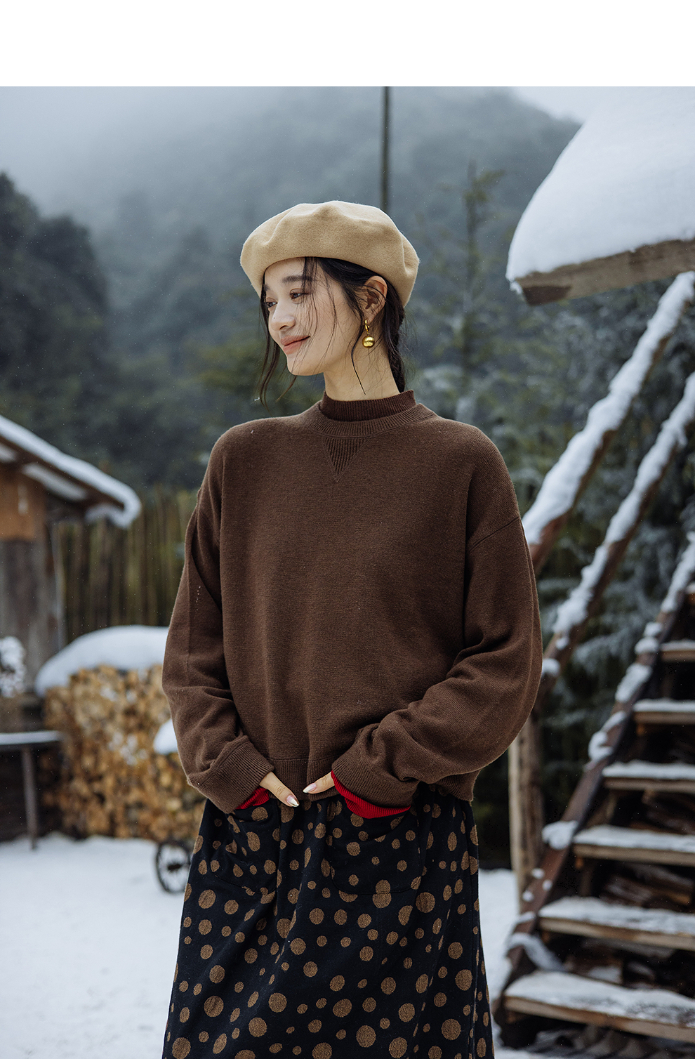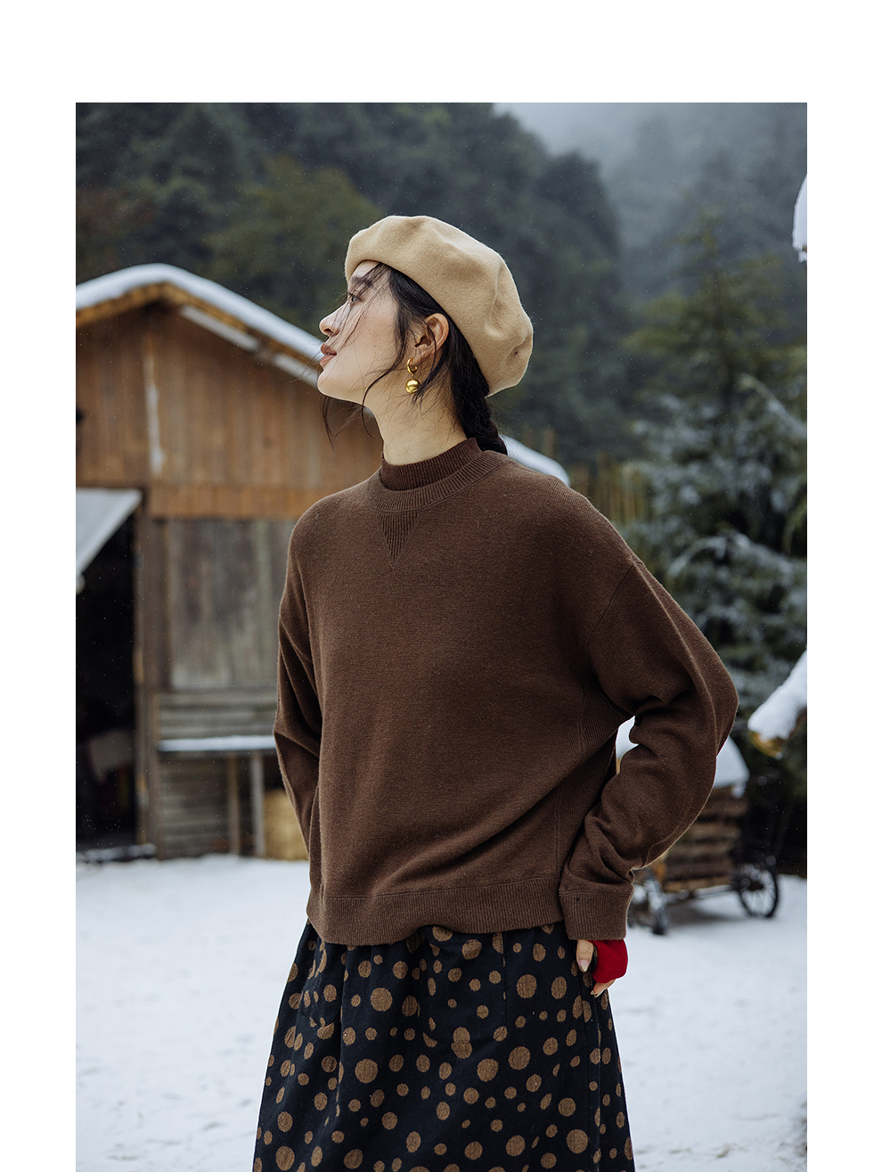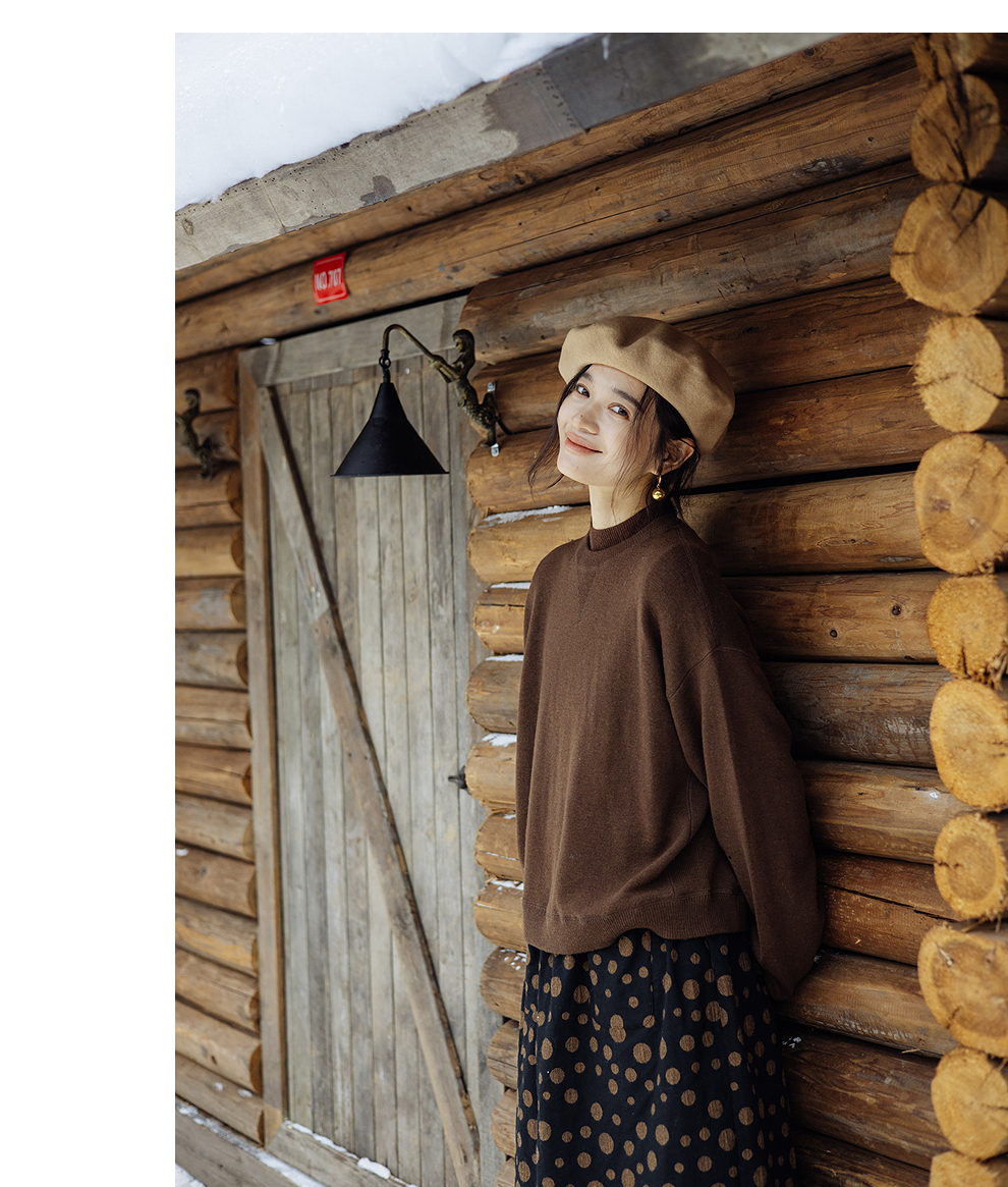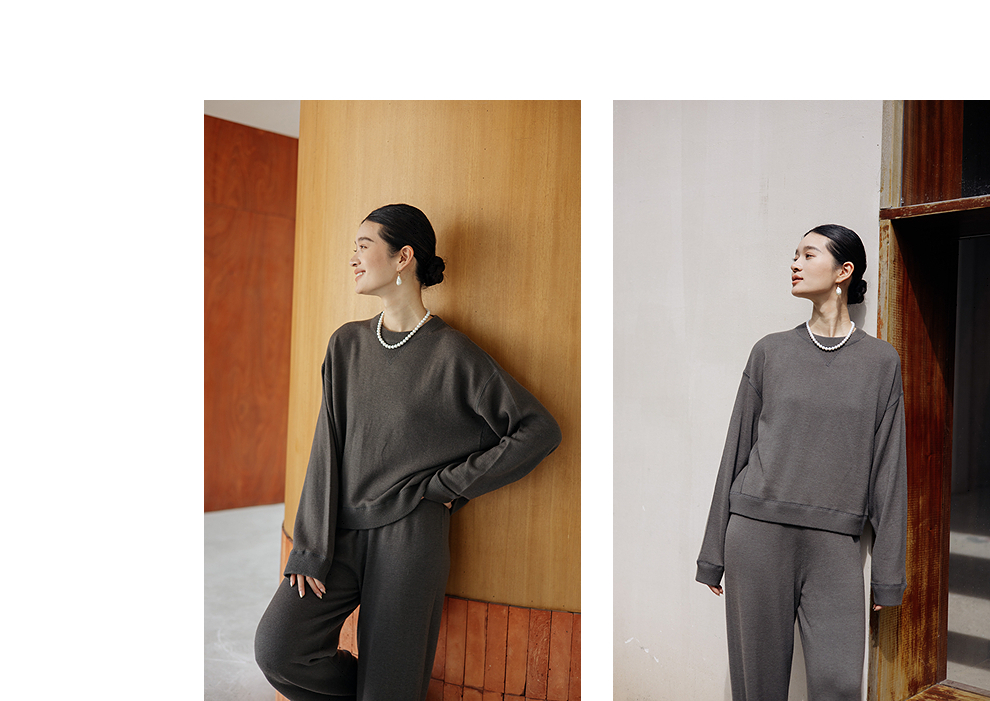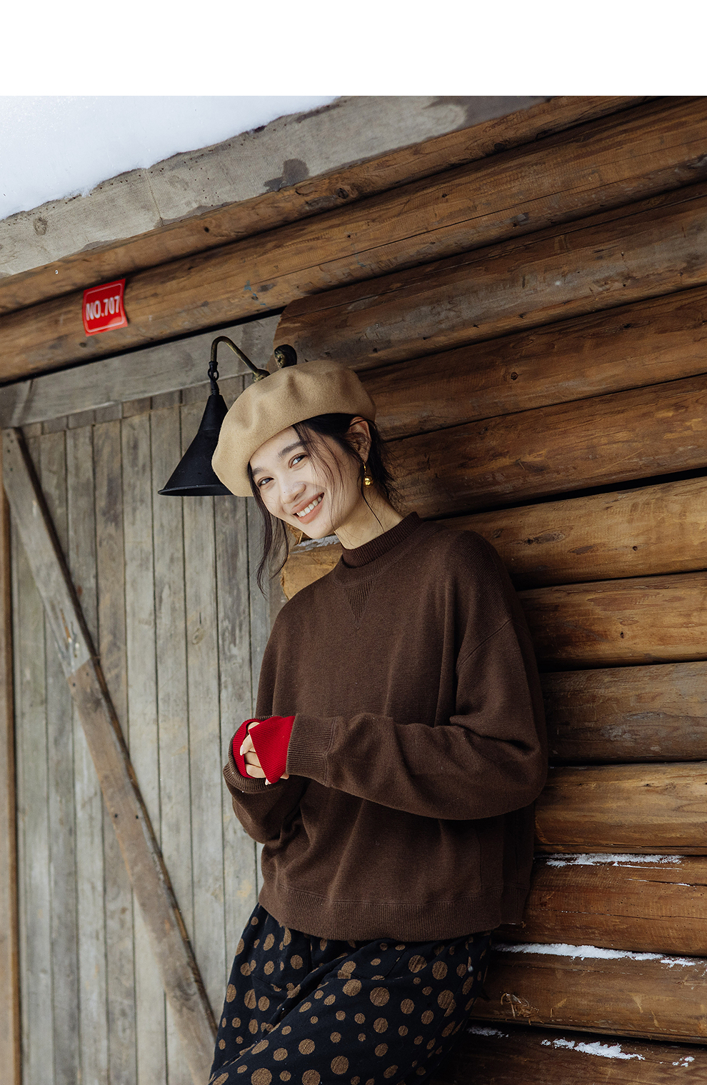 绽放665-JC666朵/绵羊毛慵懒感宽松落肩针织套头毛衣直筒长裤套装