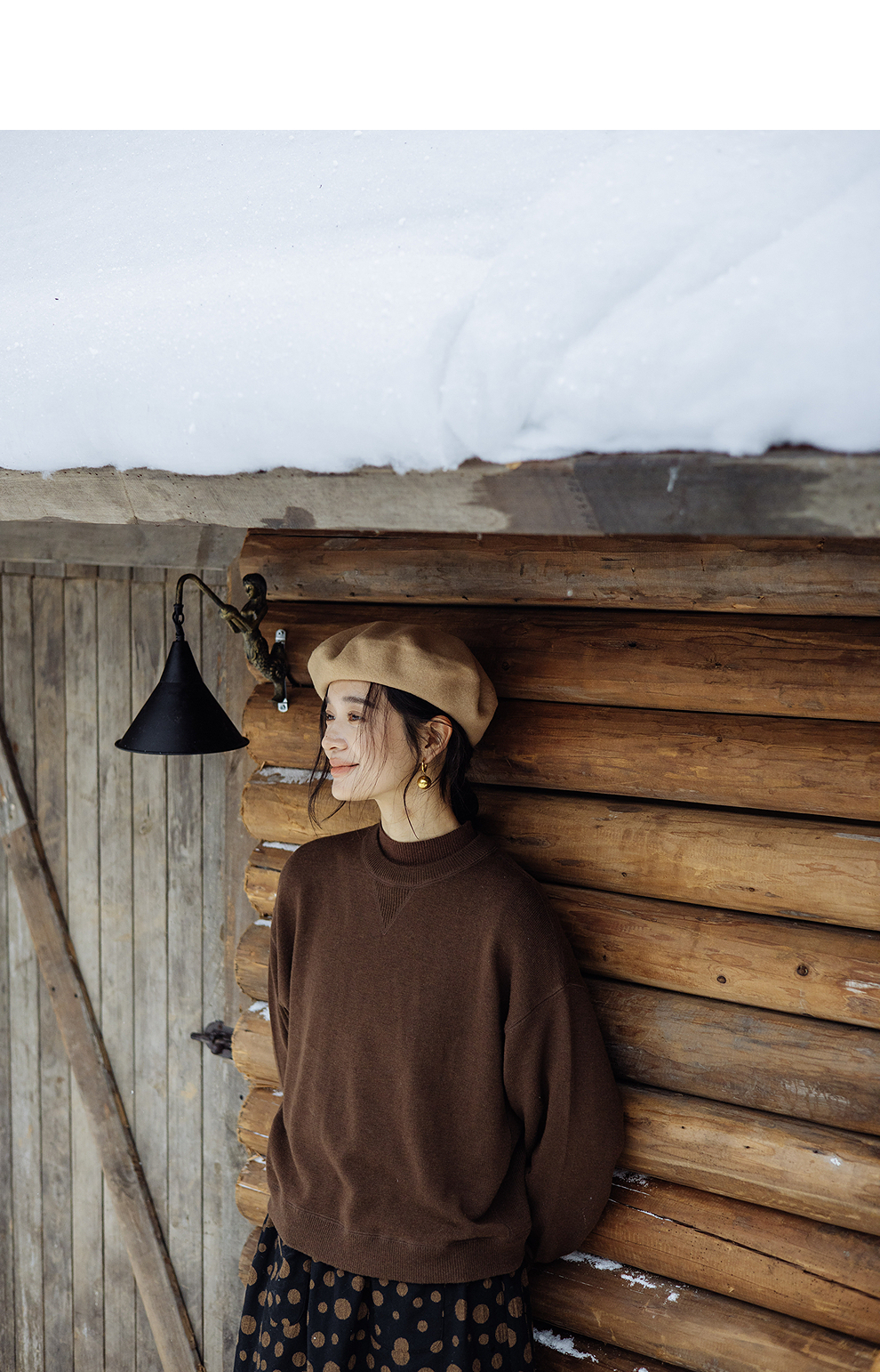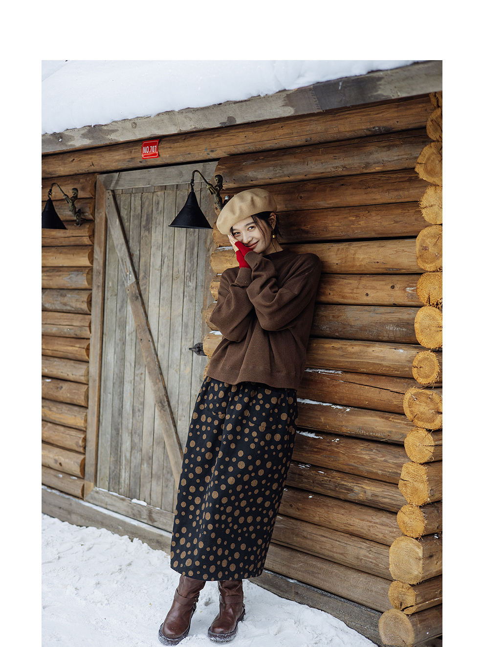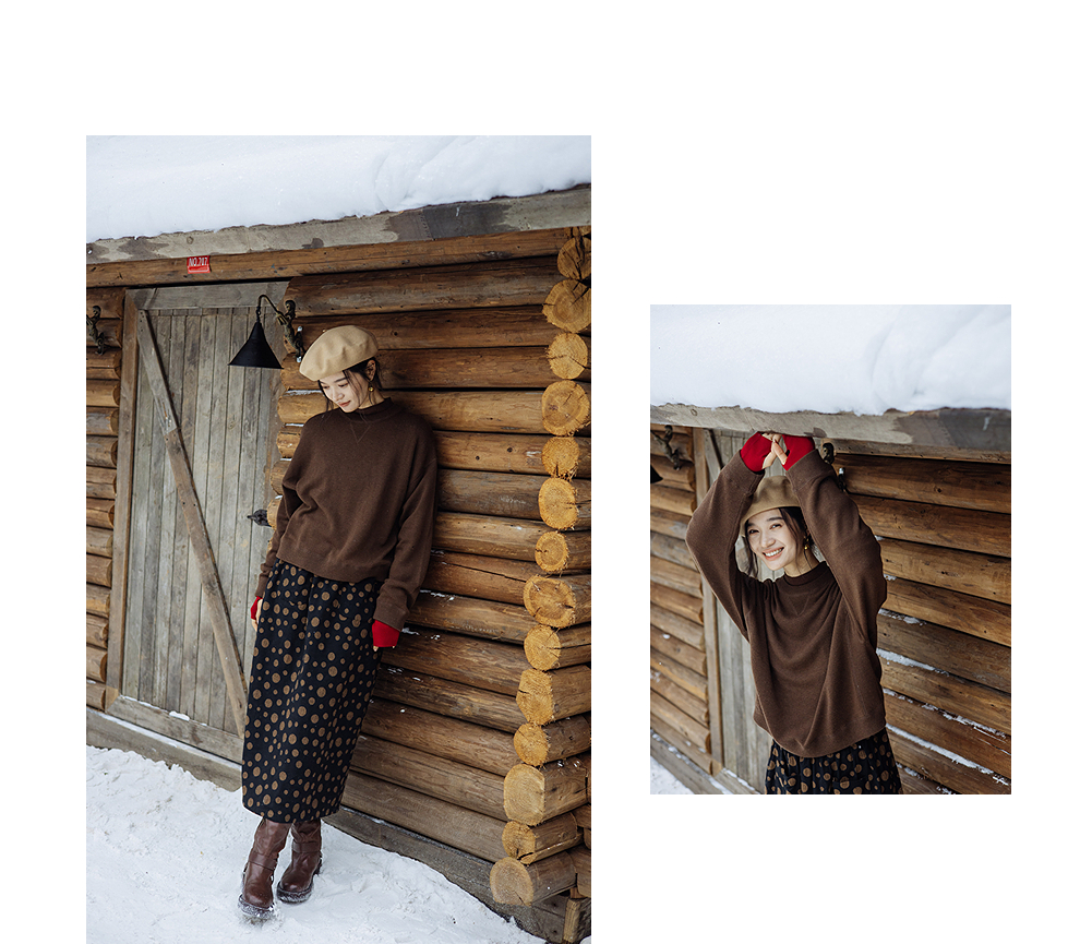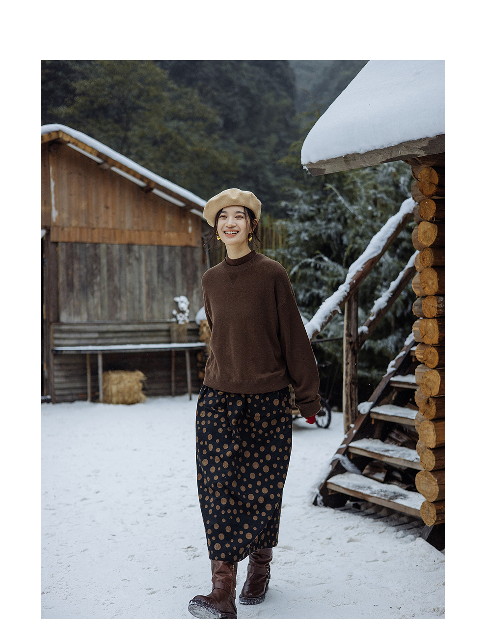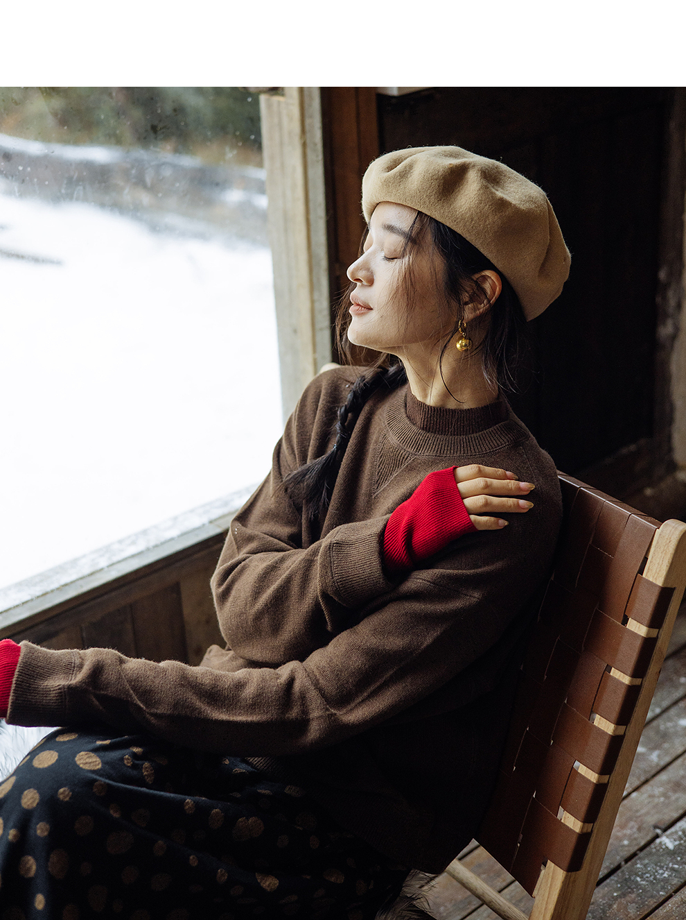 绽放665-JC666朵/绵羊毛慵懒感宽松落肩针织套头毛衣直筒长裤套装