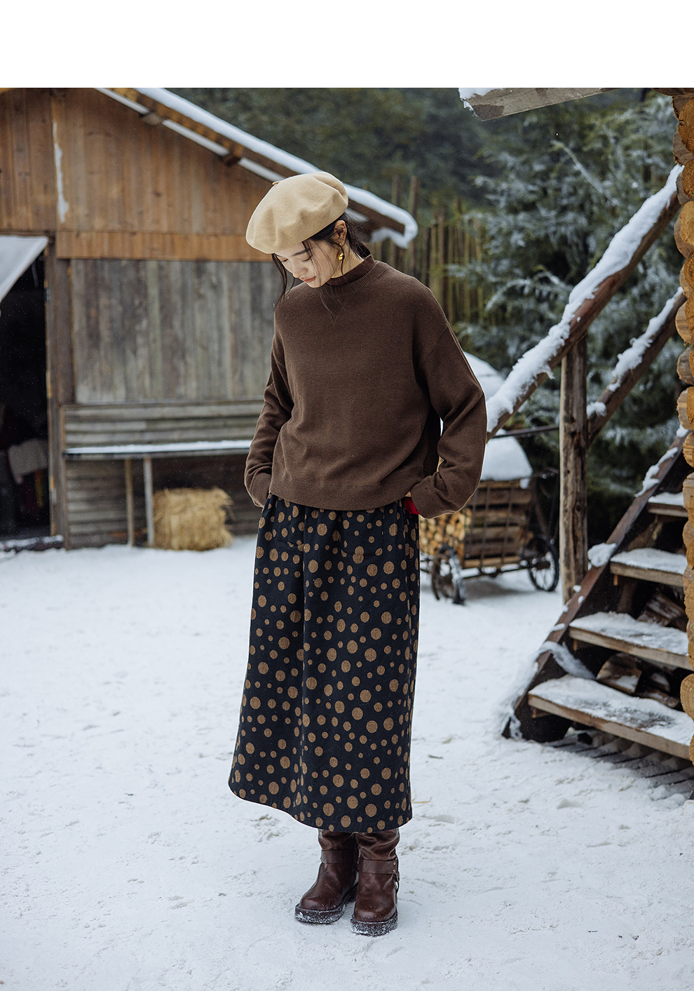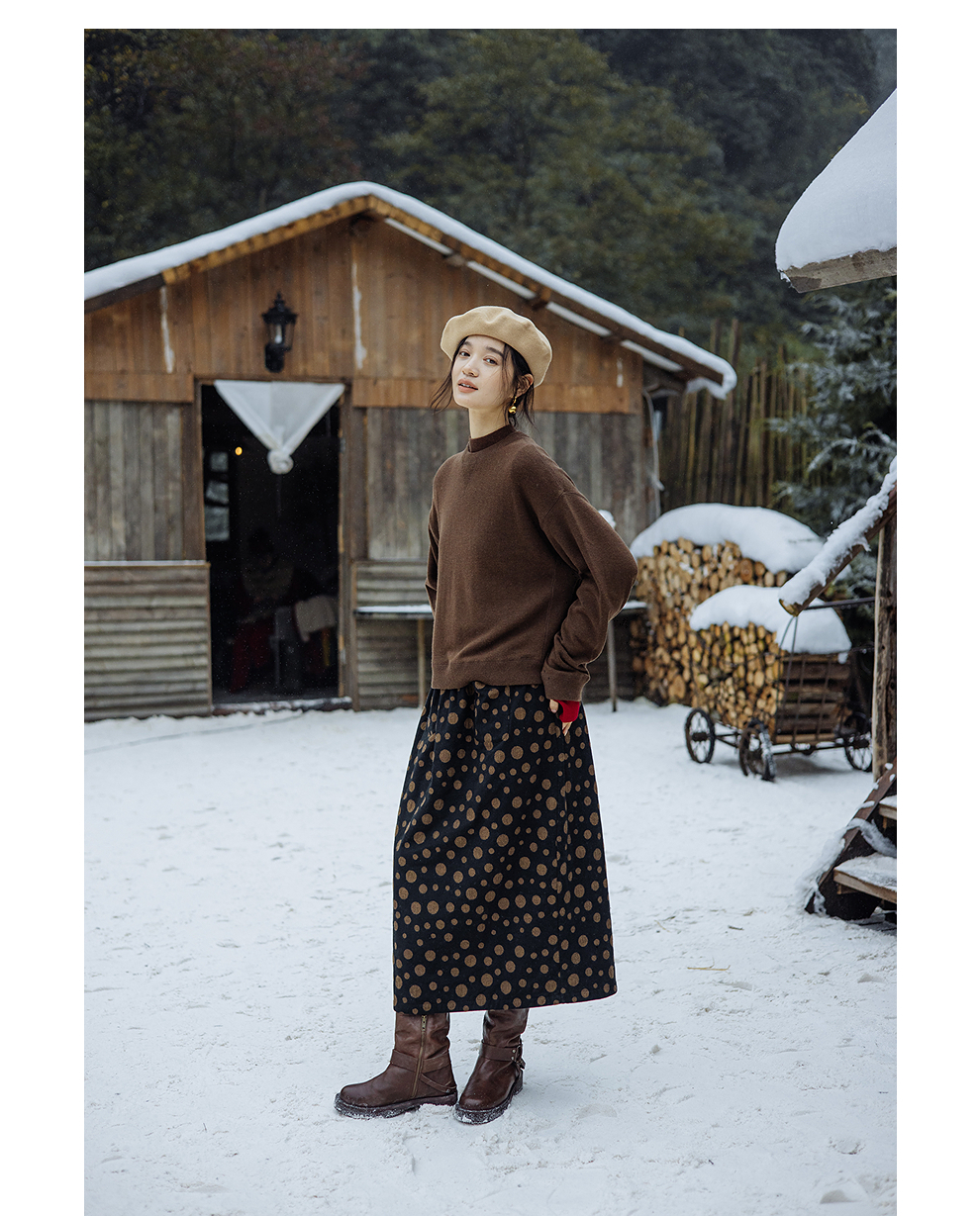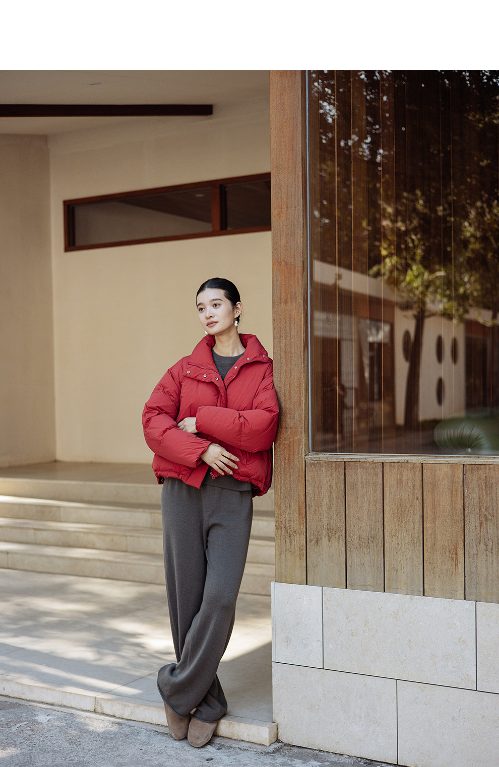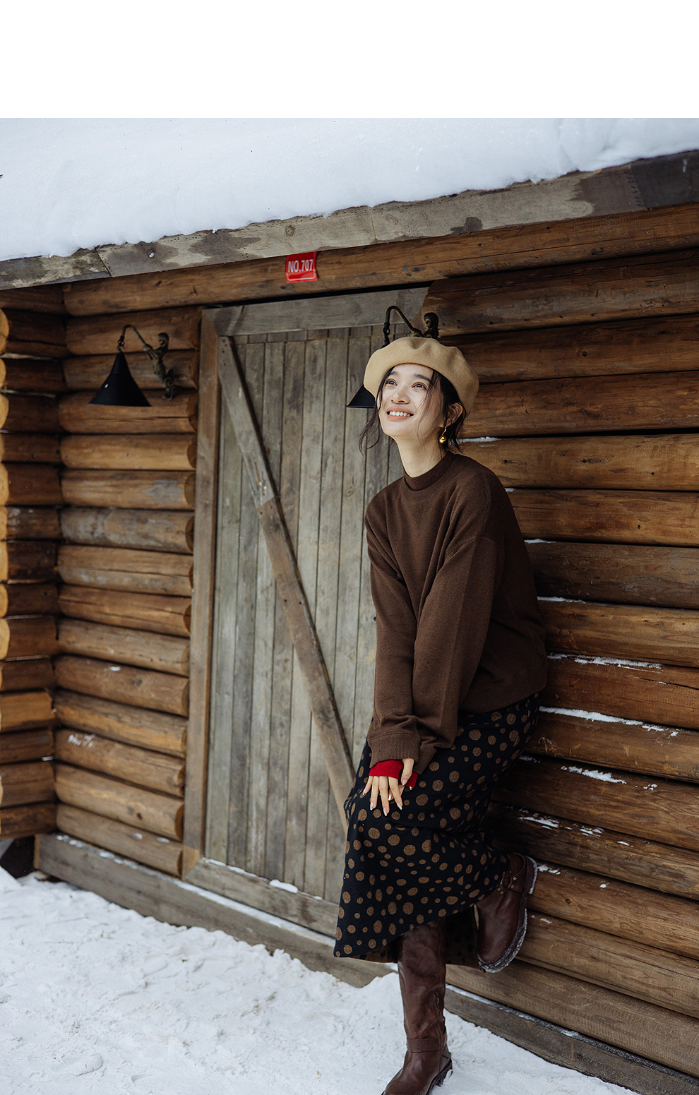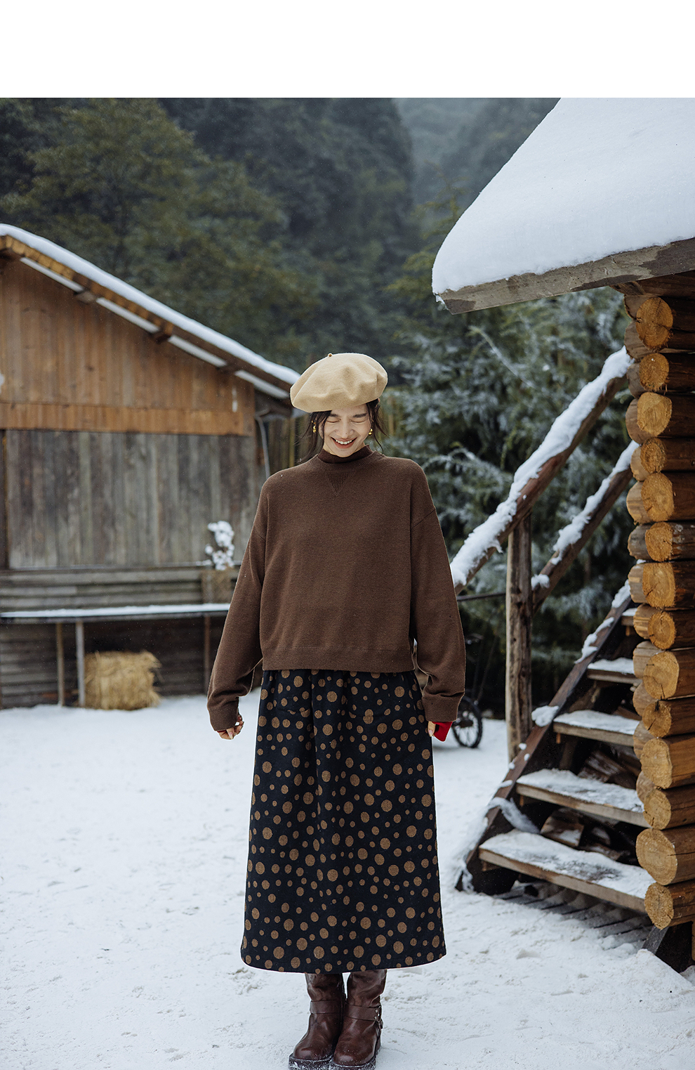 绽放665-JC666朵/绵羊毛慵懒感宽松落肩针织套头毛衣直筒长裤套装