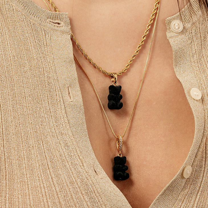 订购4周到|CRYSTAL HAZE-Velvet Nostalgia Bear-classic-黑色小熊 吊坠(金色环扣)[挪威设计师]