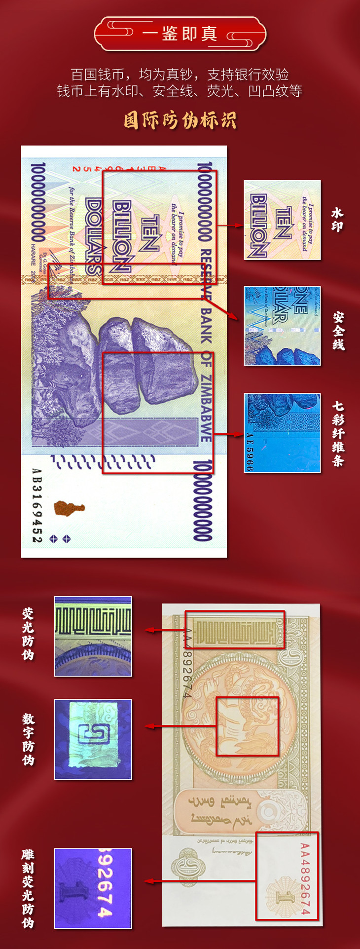 2、纸币硬币保证真币,支持银行验货,均为收藏纪念币,不参与外汇流通和国际清算。