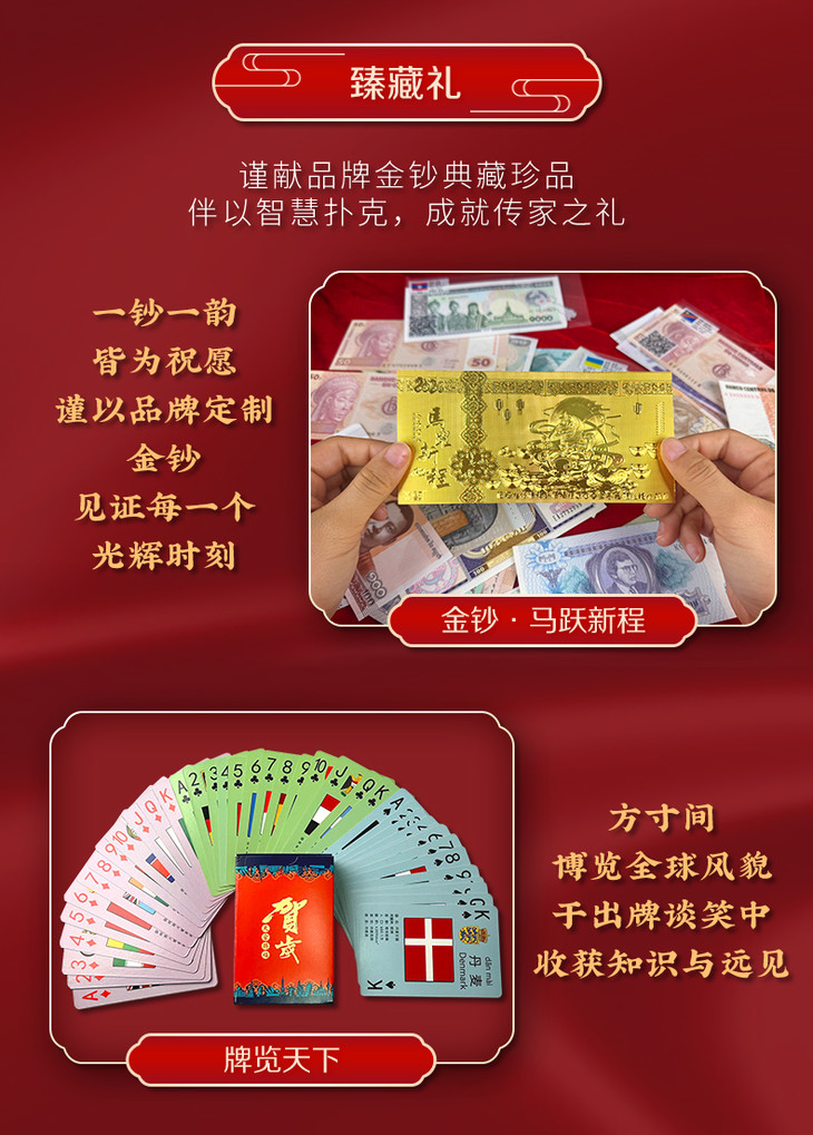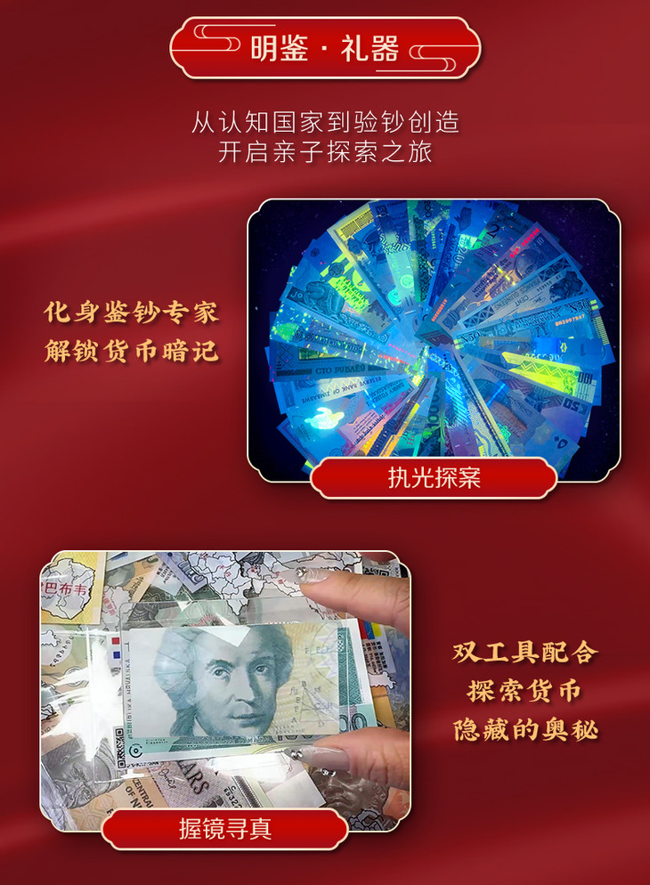 马年金箔钞+验钞灯+放大镜+资料册+地图涂色卡+国旗扑克+典藏证书