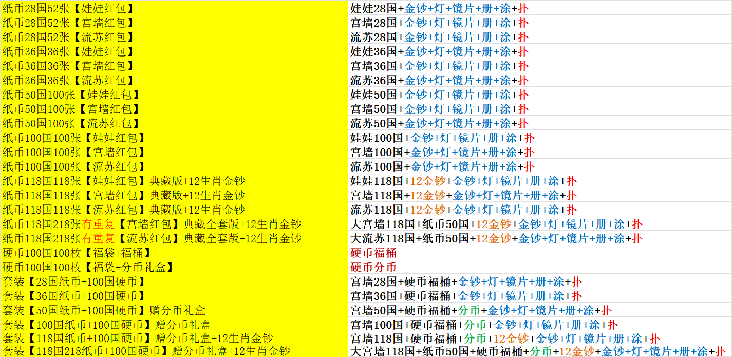 2026所有含纸币规格全新赠品: