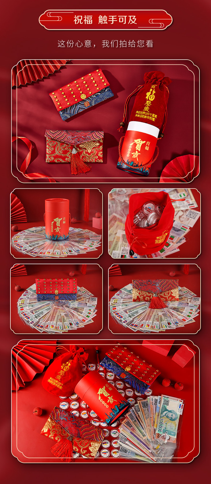 【为思礼】马跃新程 福纳百祥 创意外国纪念币红包 掌上“环球博物馆” 扫码看世界 娃娃红包 中国风宫墙红包 百福桶 新年春节压岁钱礼物