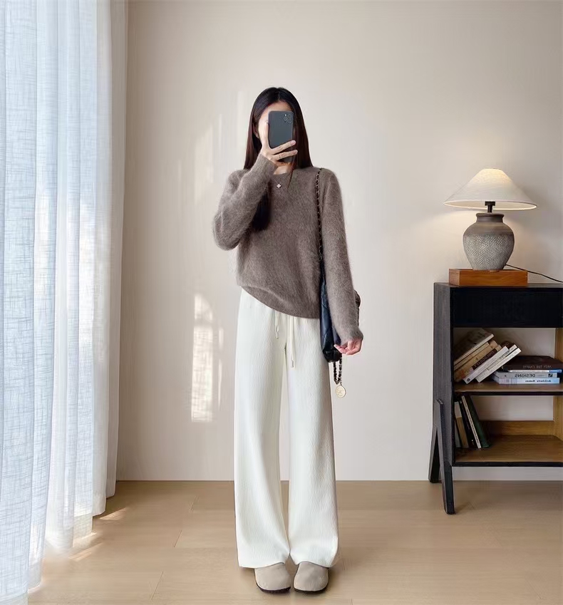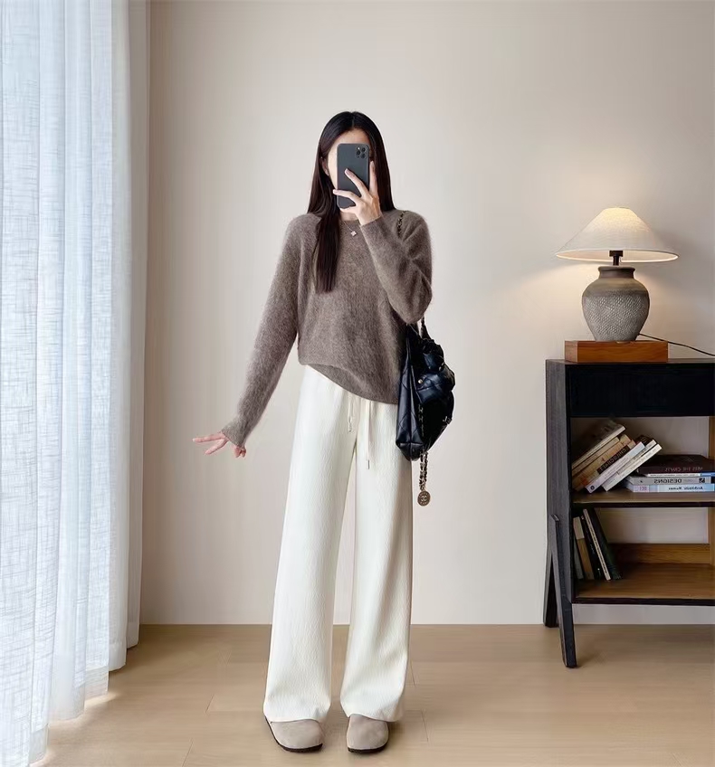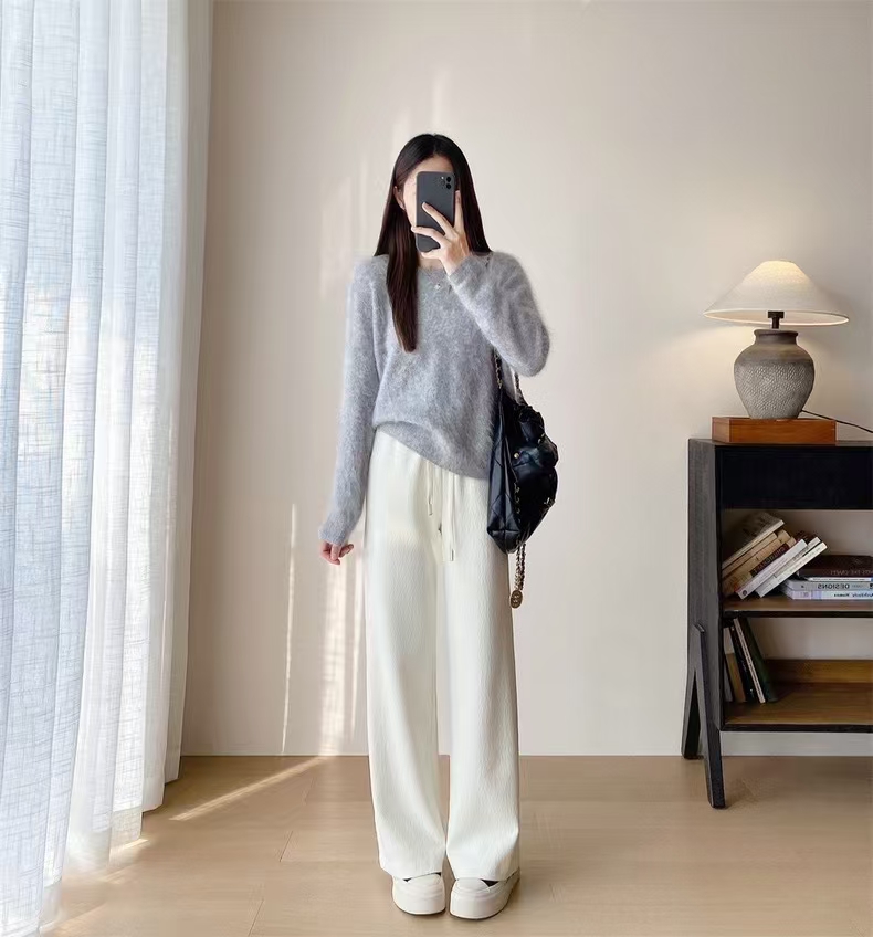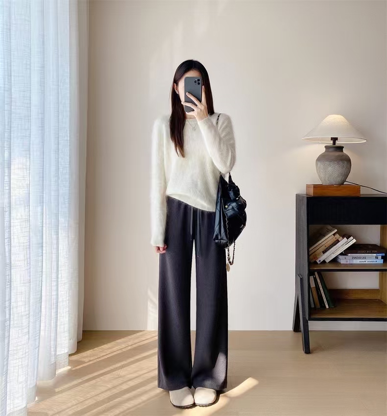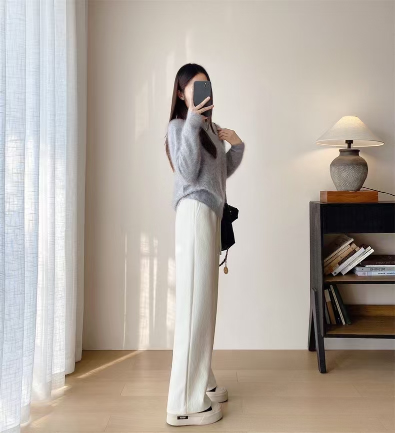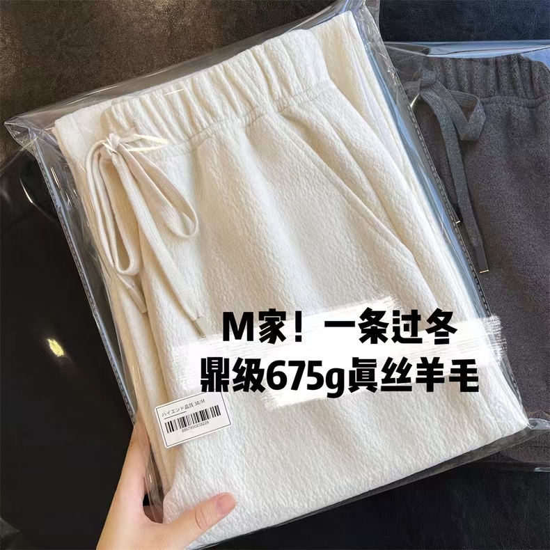 别犹豫直接入,实打实的675g高克重,南方可以直穿到冬天!!明明是真丝羊毛,却有着像空气卫衣料一样的蓬松, 骨感,垂坠不沾身,对于腿部微肉而言,藏肉。修饰腿型方方面面。优点还不止这一个,它又具备了羊毛裤本身的慵懒 随性 舒松天生气质使然,简直了!!!