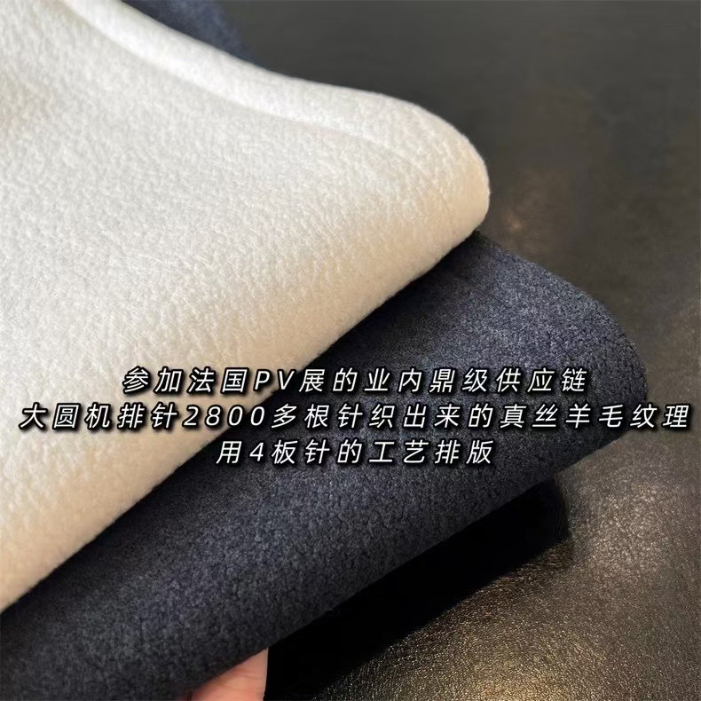 (参加法国PV展的业内鼎鼎供应商)有颜业务能力又强!春秋新款面料“真丝羊毛”光这块面料就要大圆机排针2800多根针织!再用四板针的工艺排版!