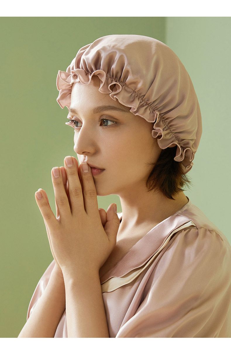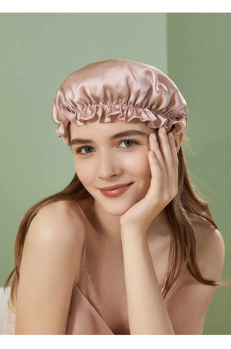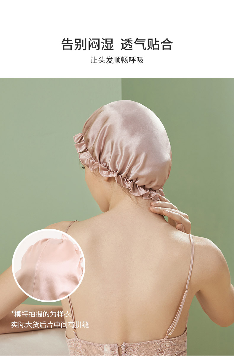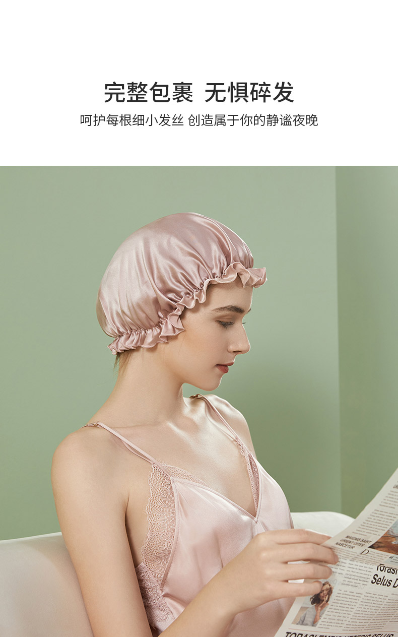 金三塔100%桑蚕丝睡帽女舒适透气弹力贴合防风护发真丝月子帽新品 JXQ271
