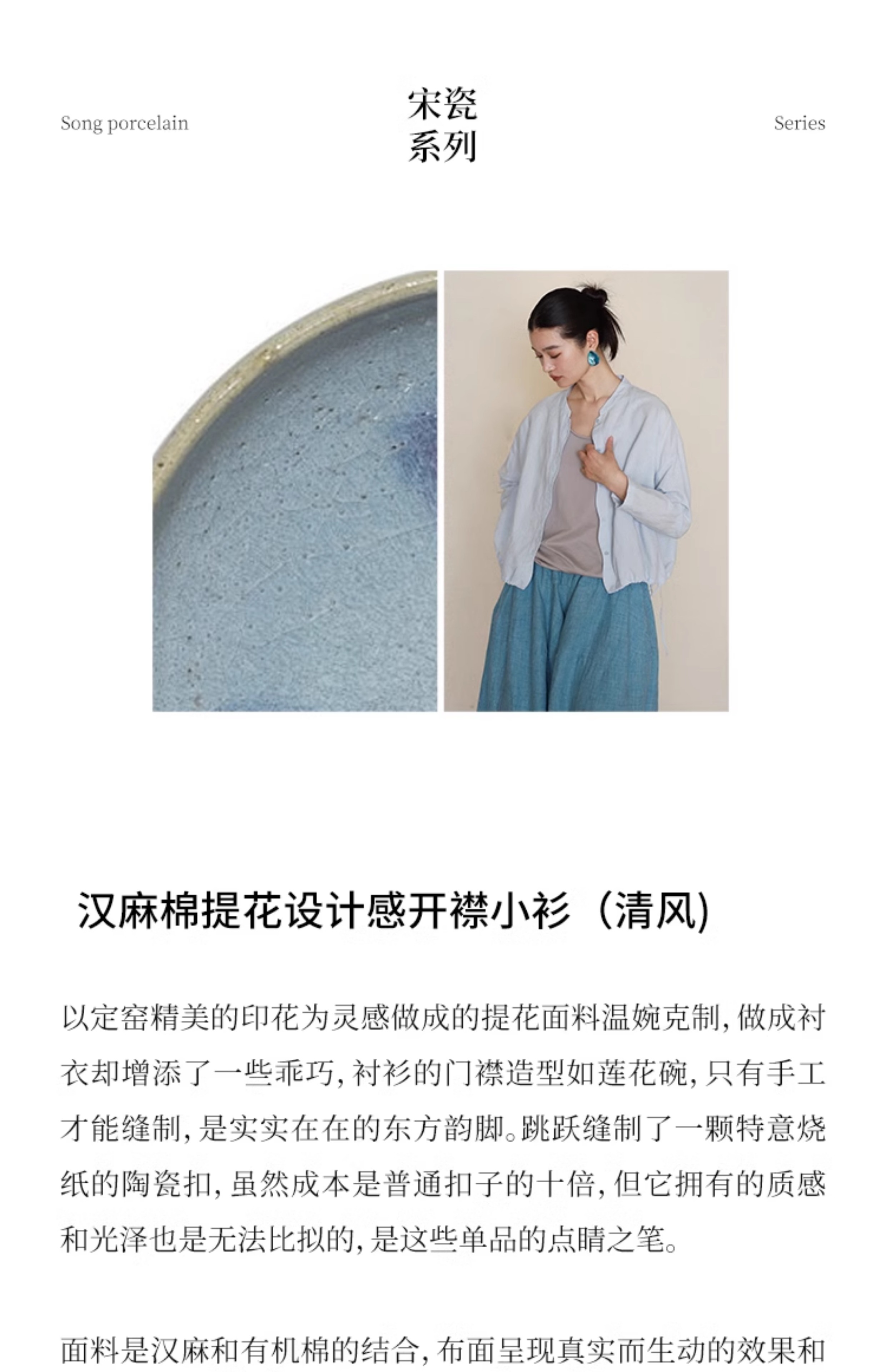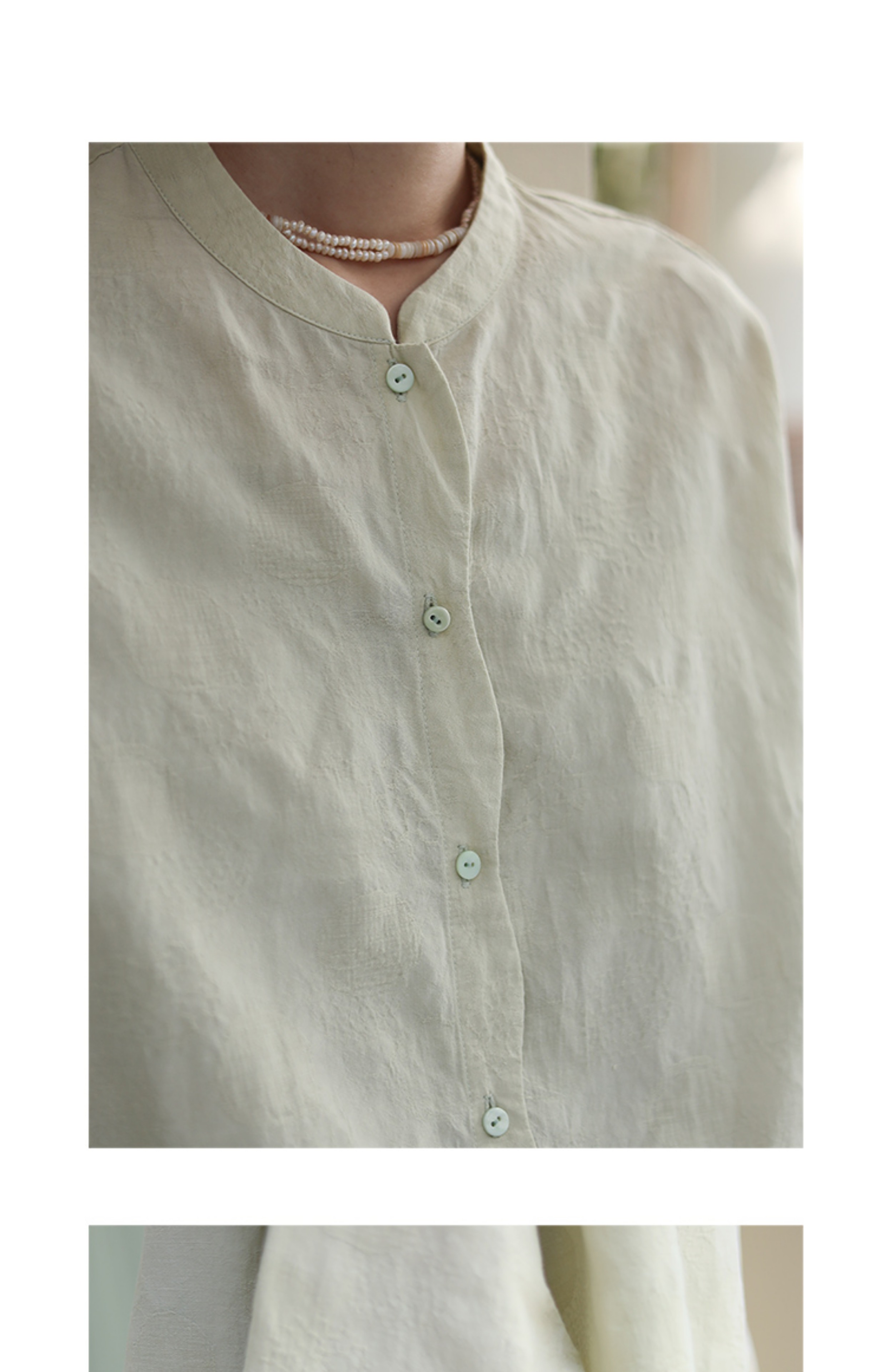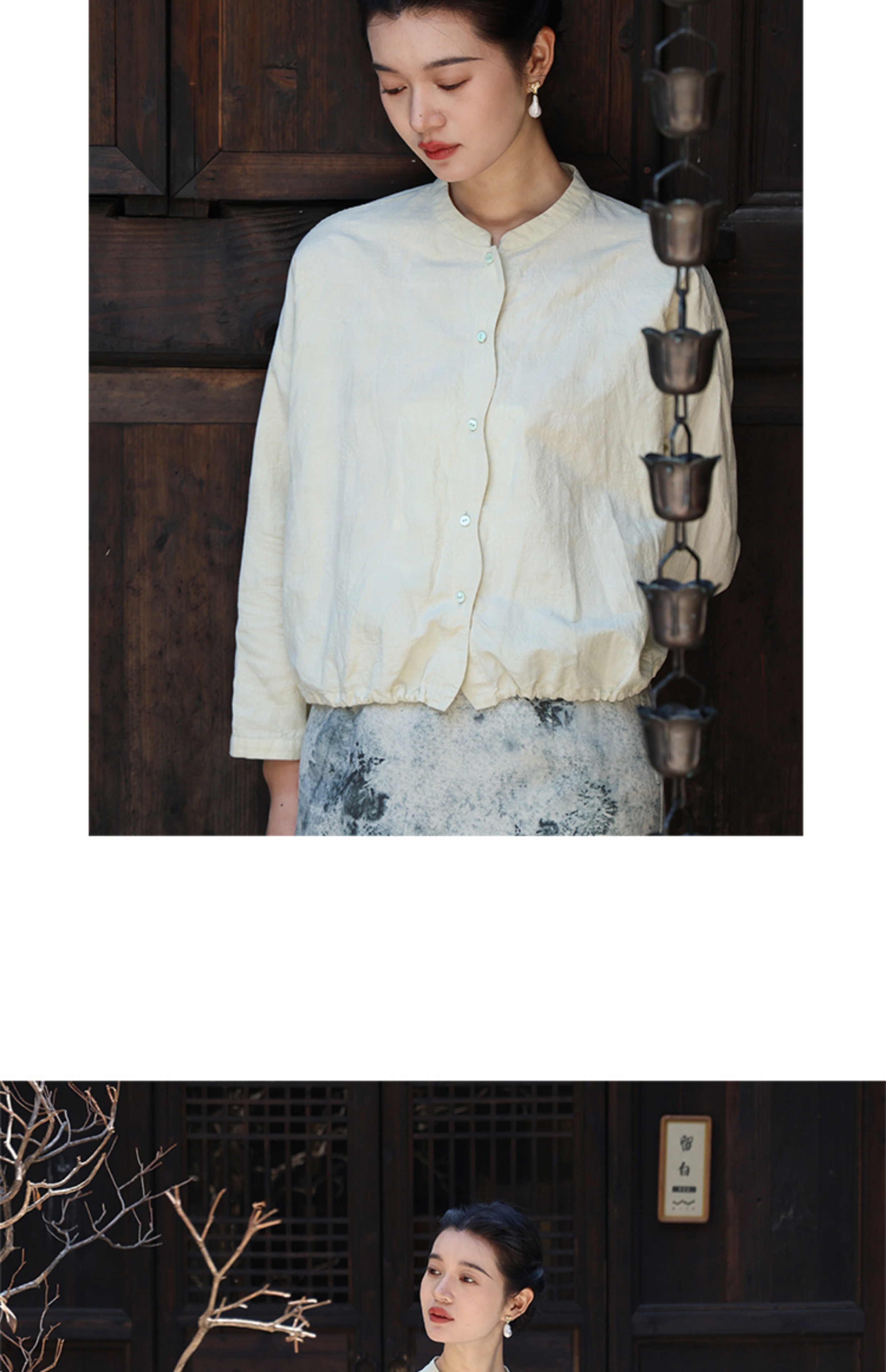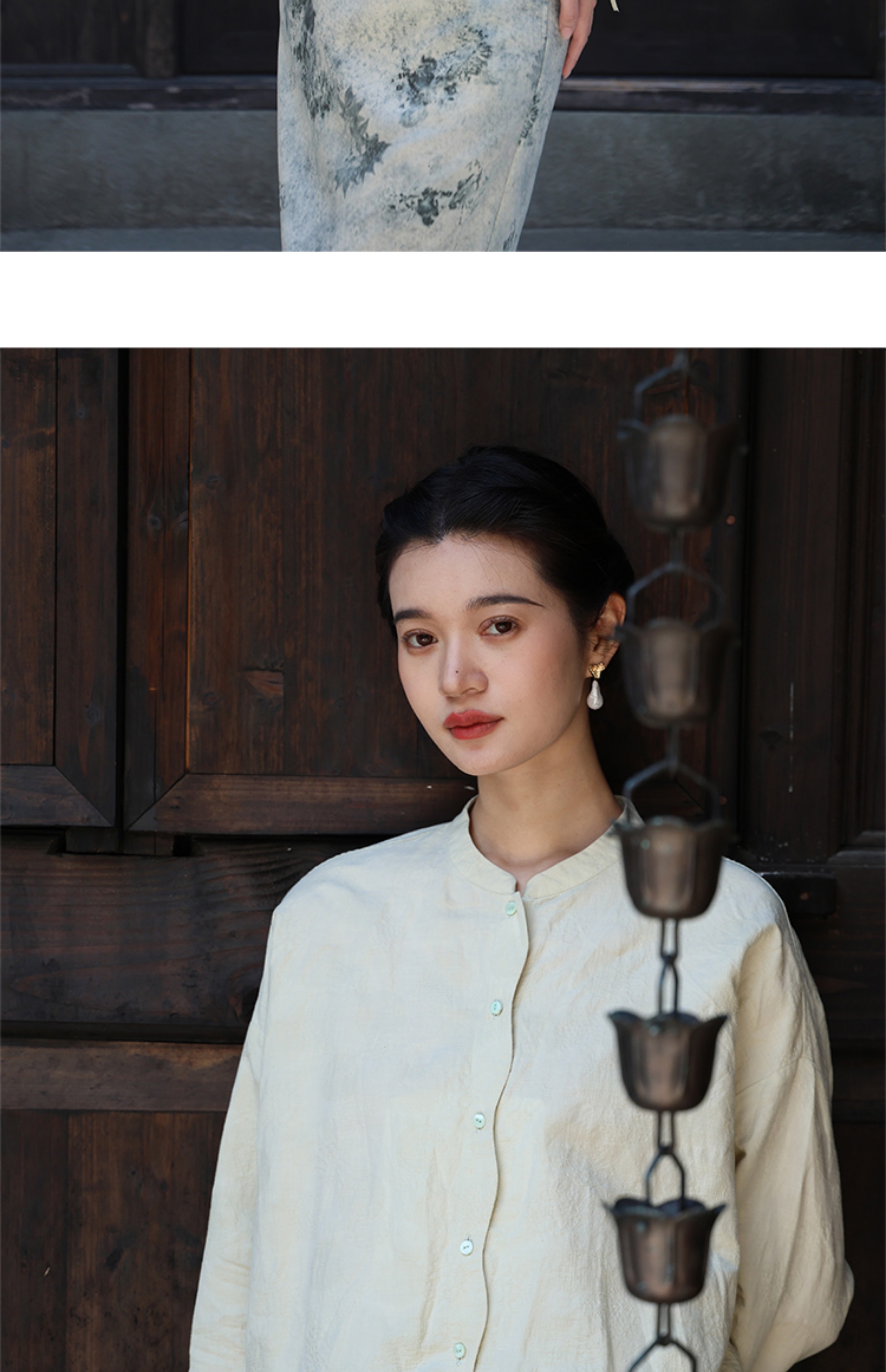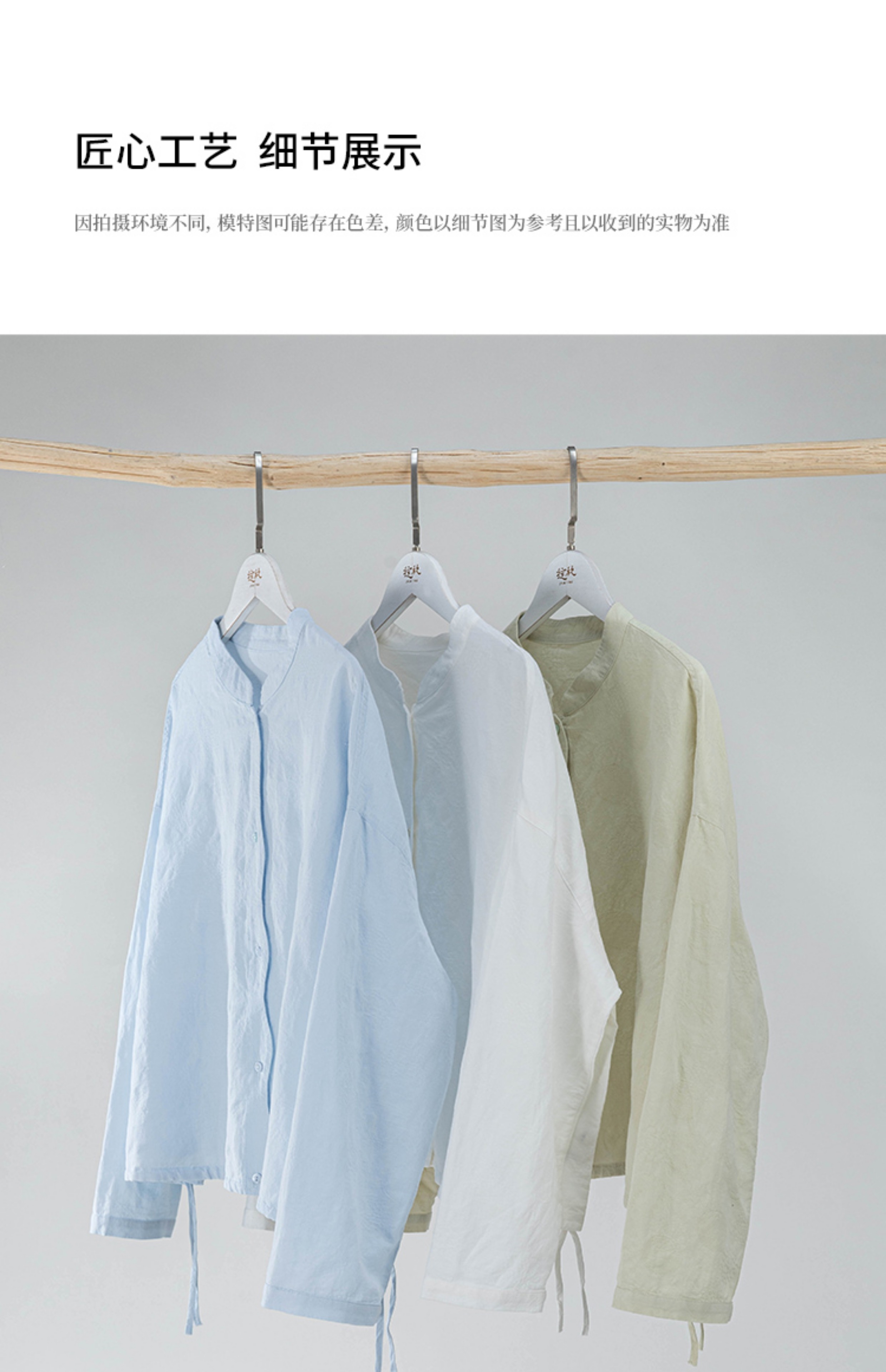 绽放191朵/【宋瓷系列】汉麻棉提花设计感衬衫陶瓷扣点缀开襟小衫