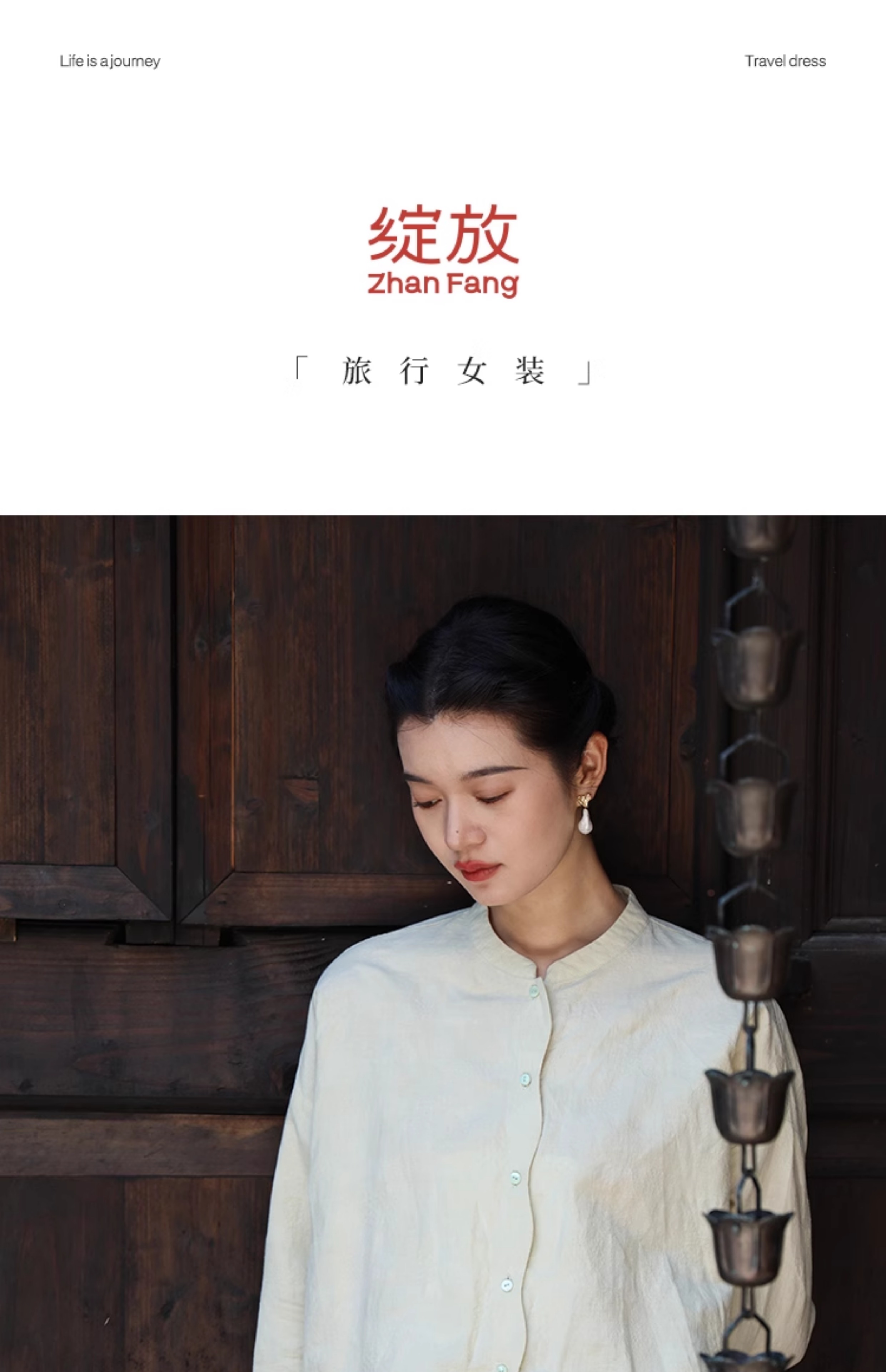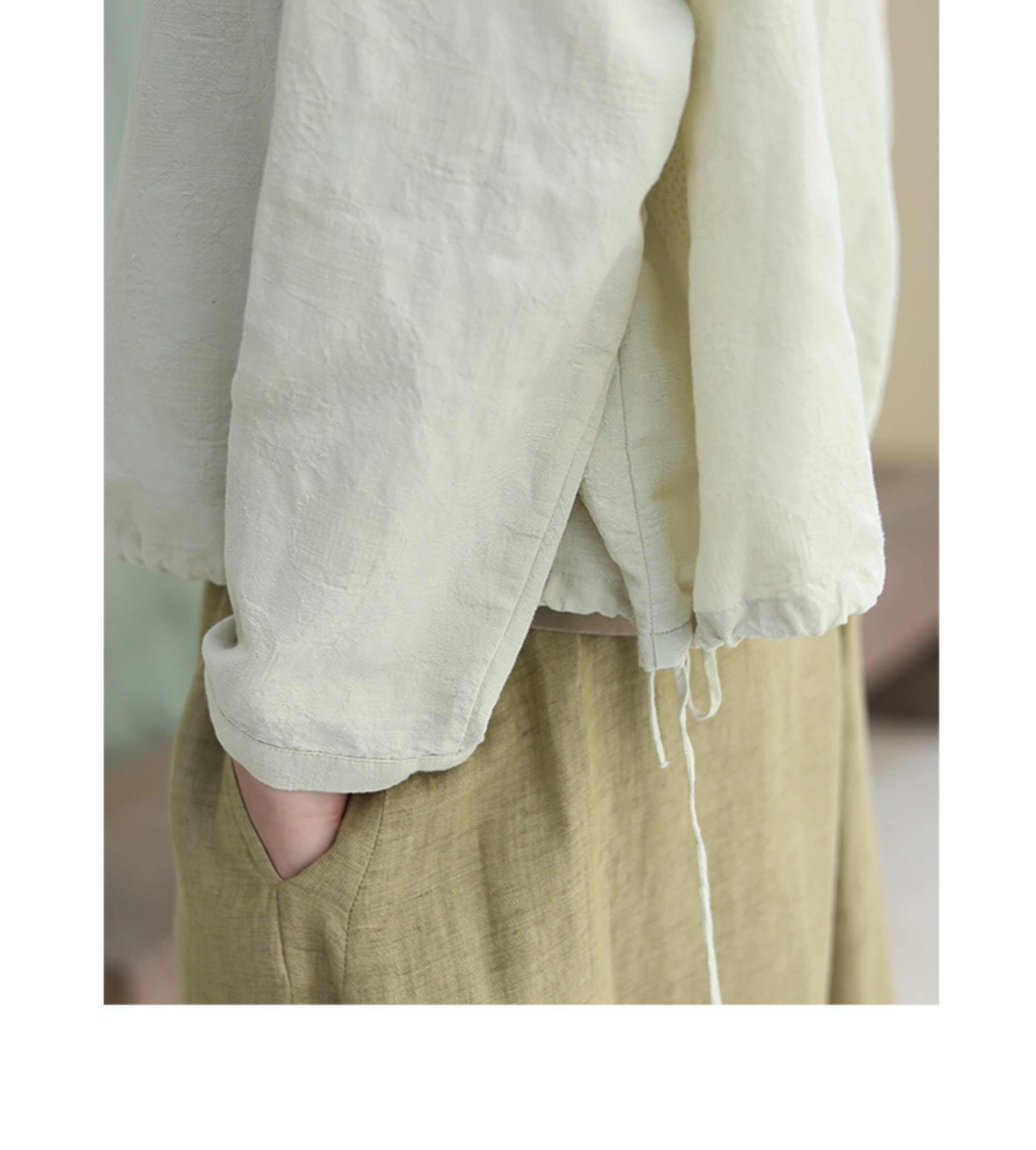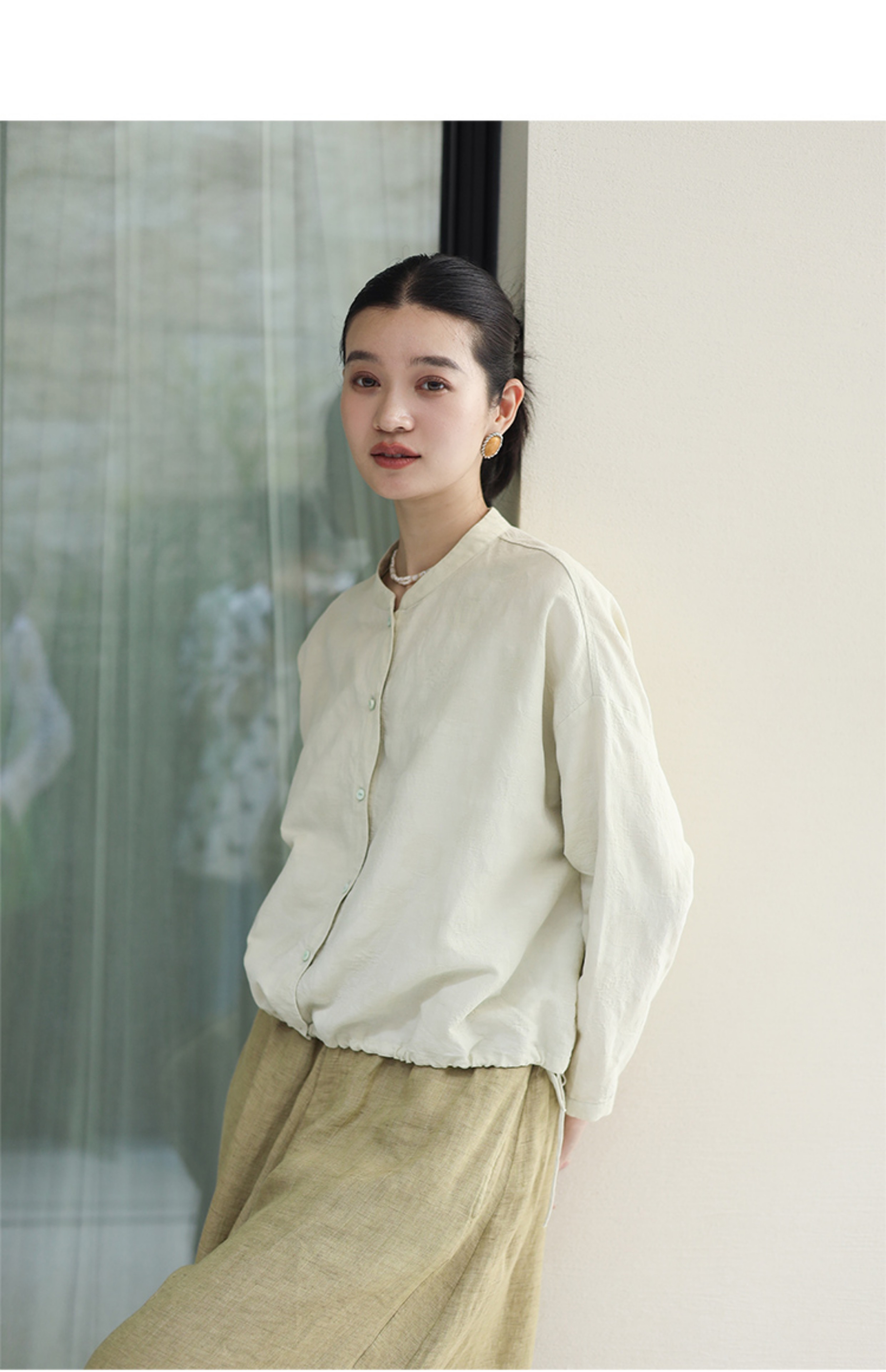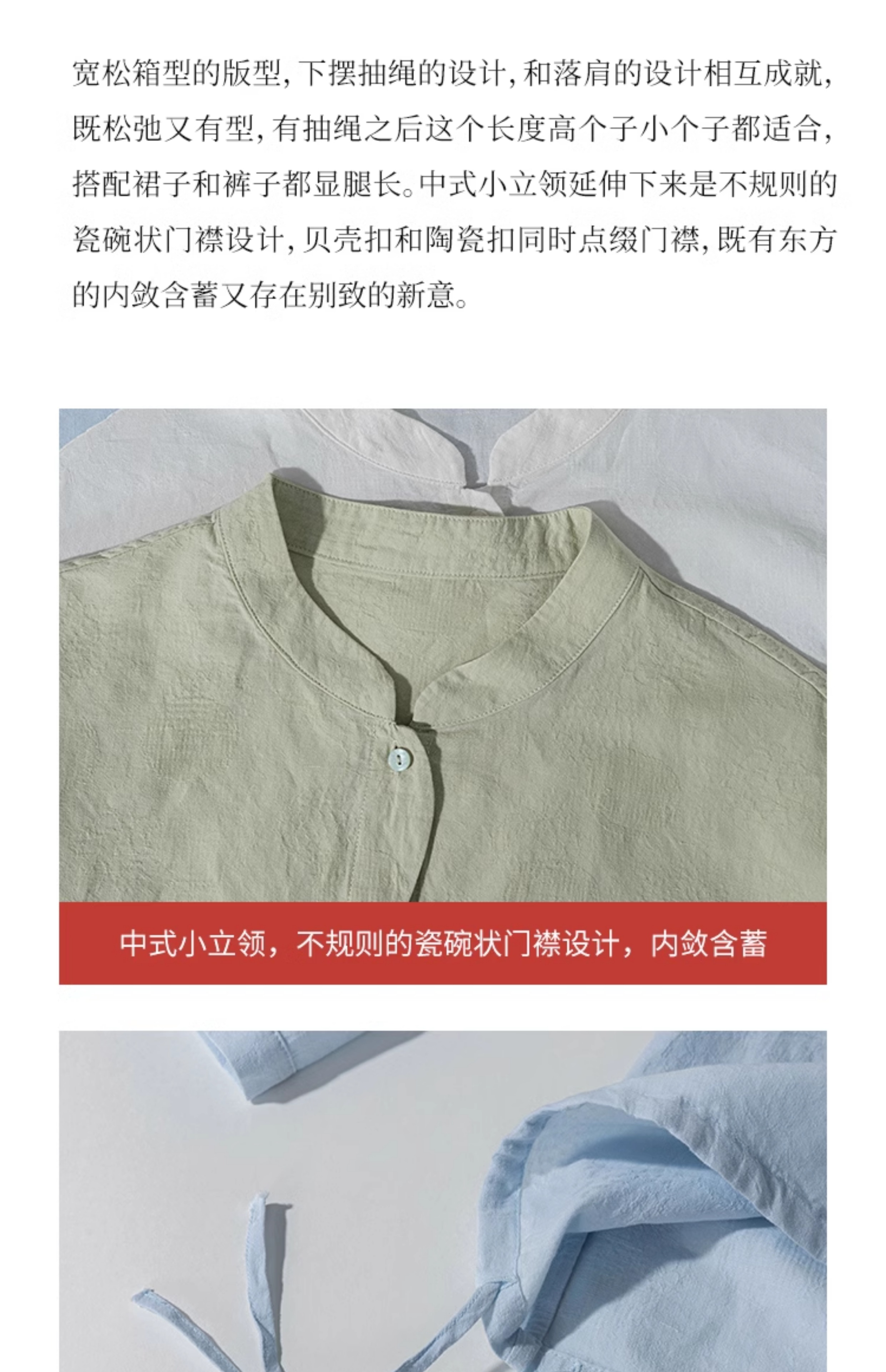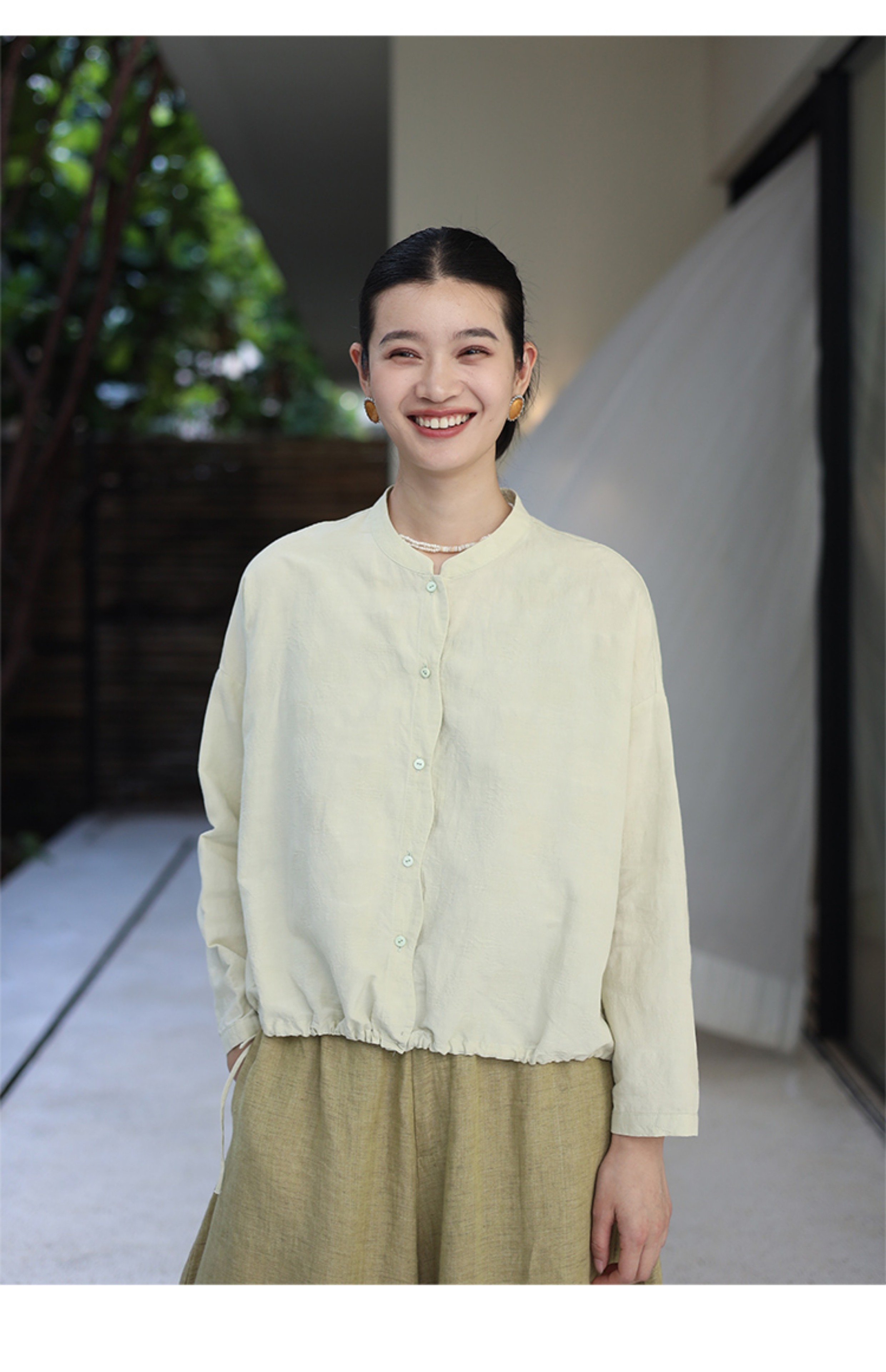 绽放191朵/【宋瓷系列】汉麻棉提花设计感衬衫陶瓷扣点缀开襟小衫