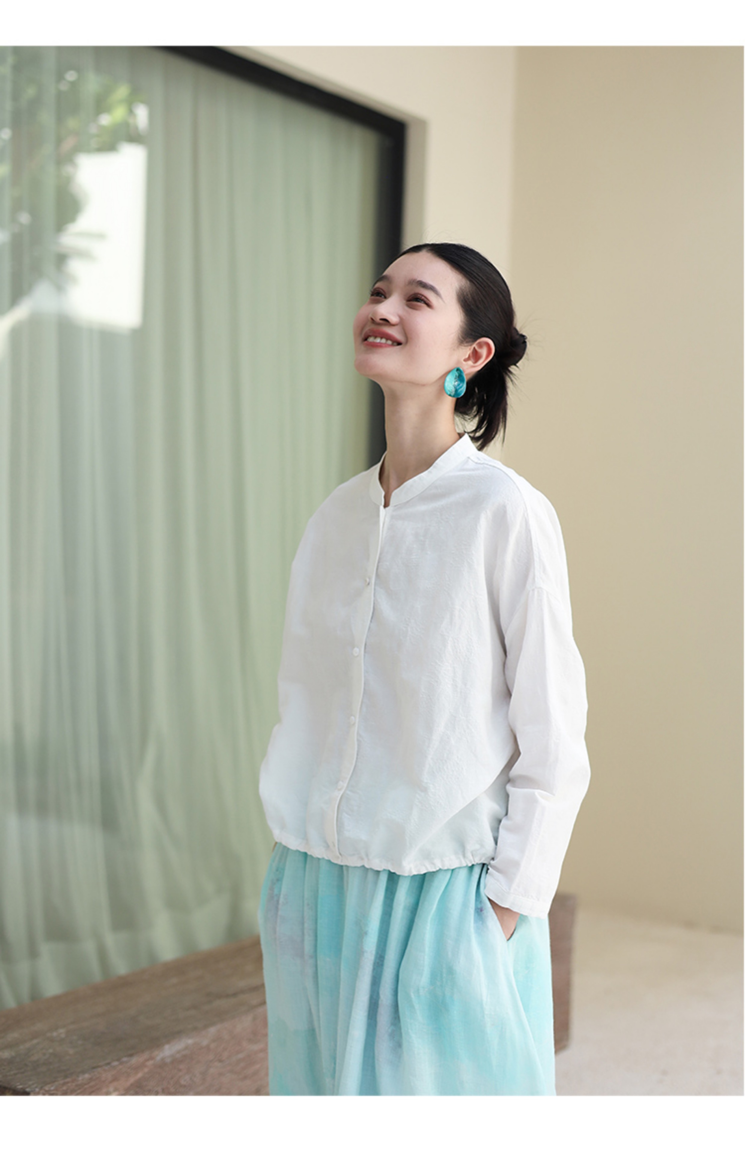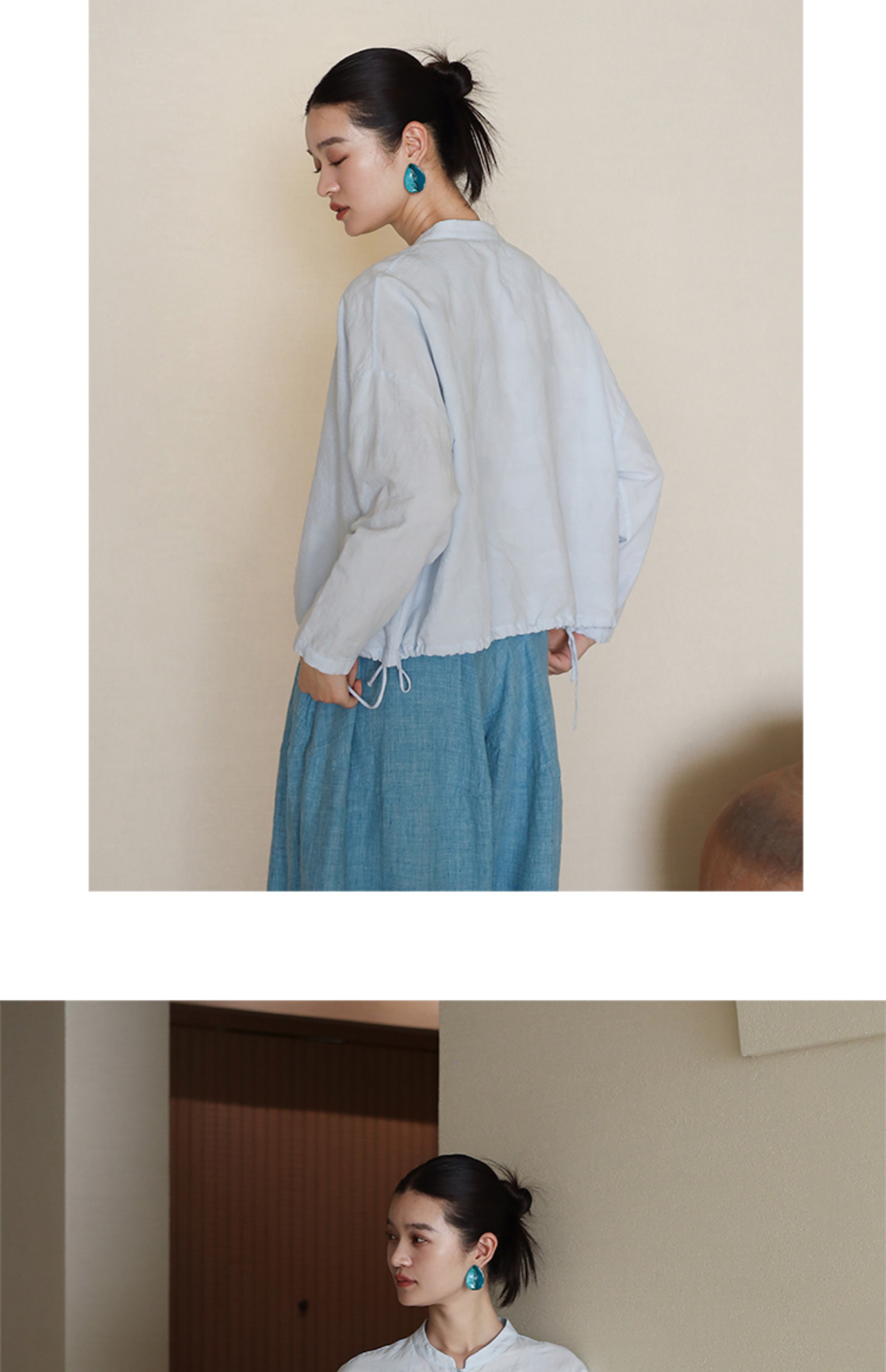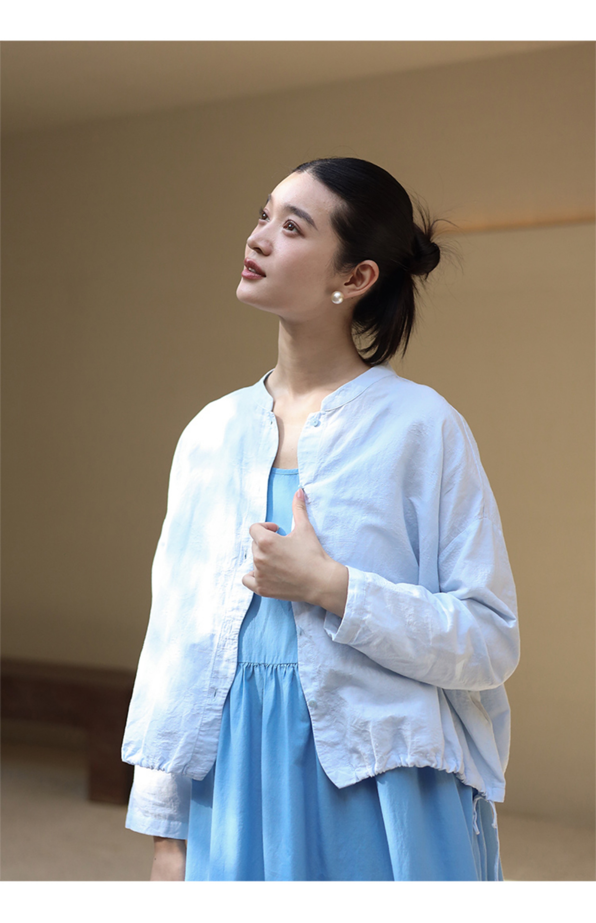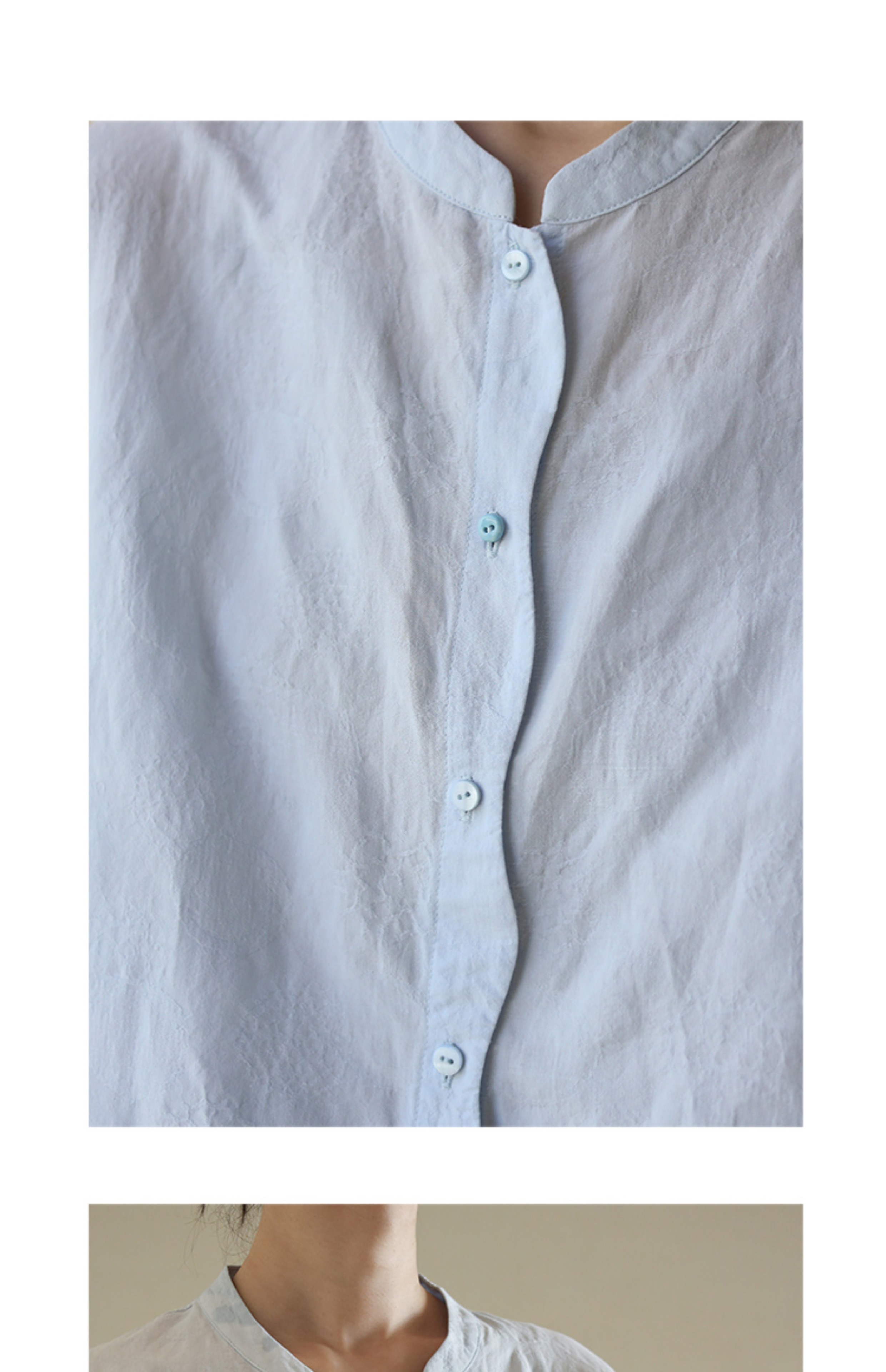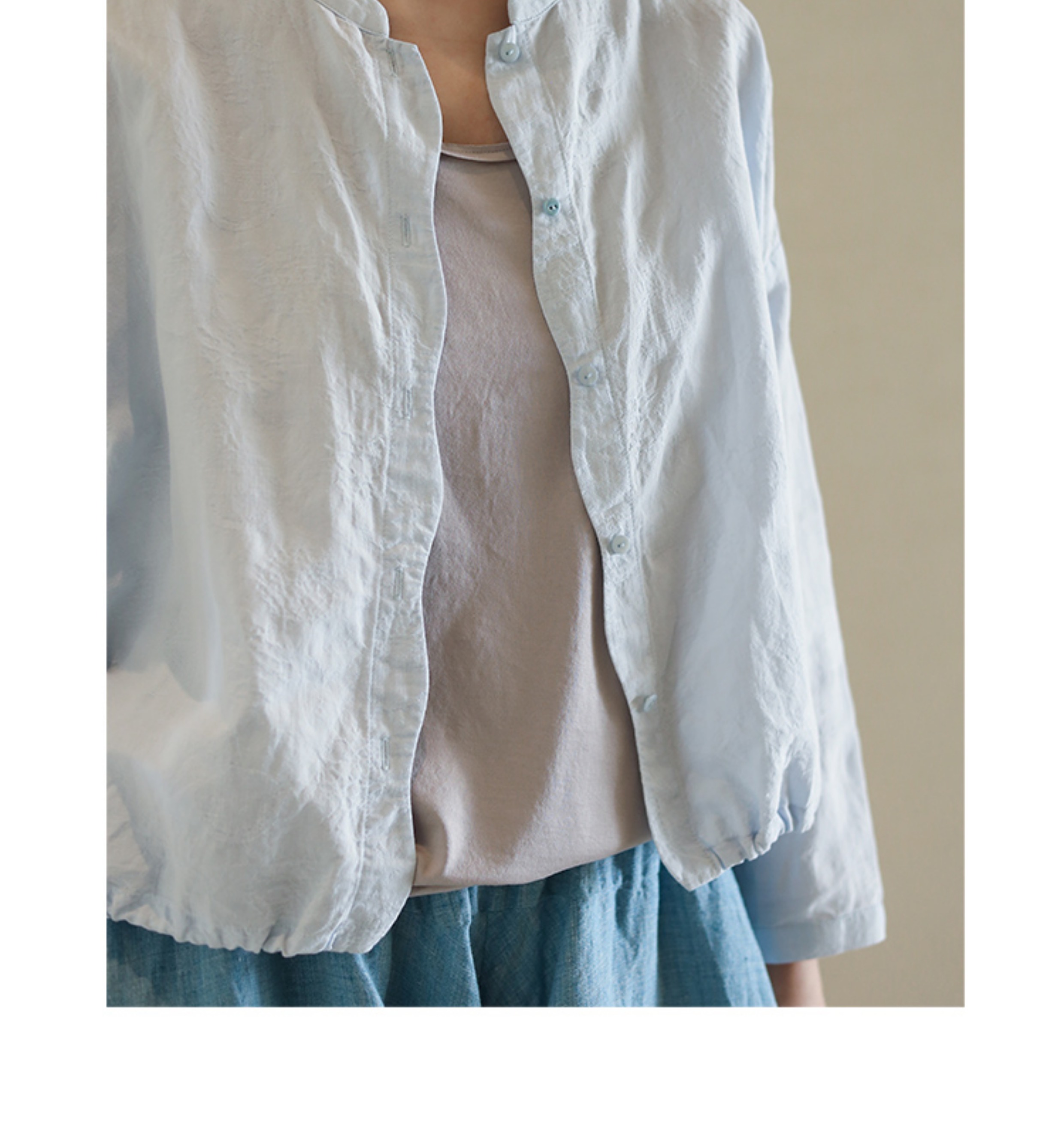 绽放191朵/【宋瓷系列】汉麻棉提花设计感衬衫陶瓷扣点缀开襟小衫