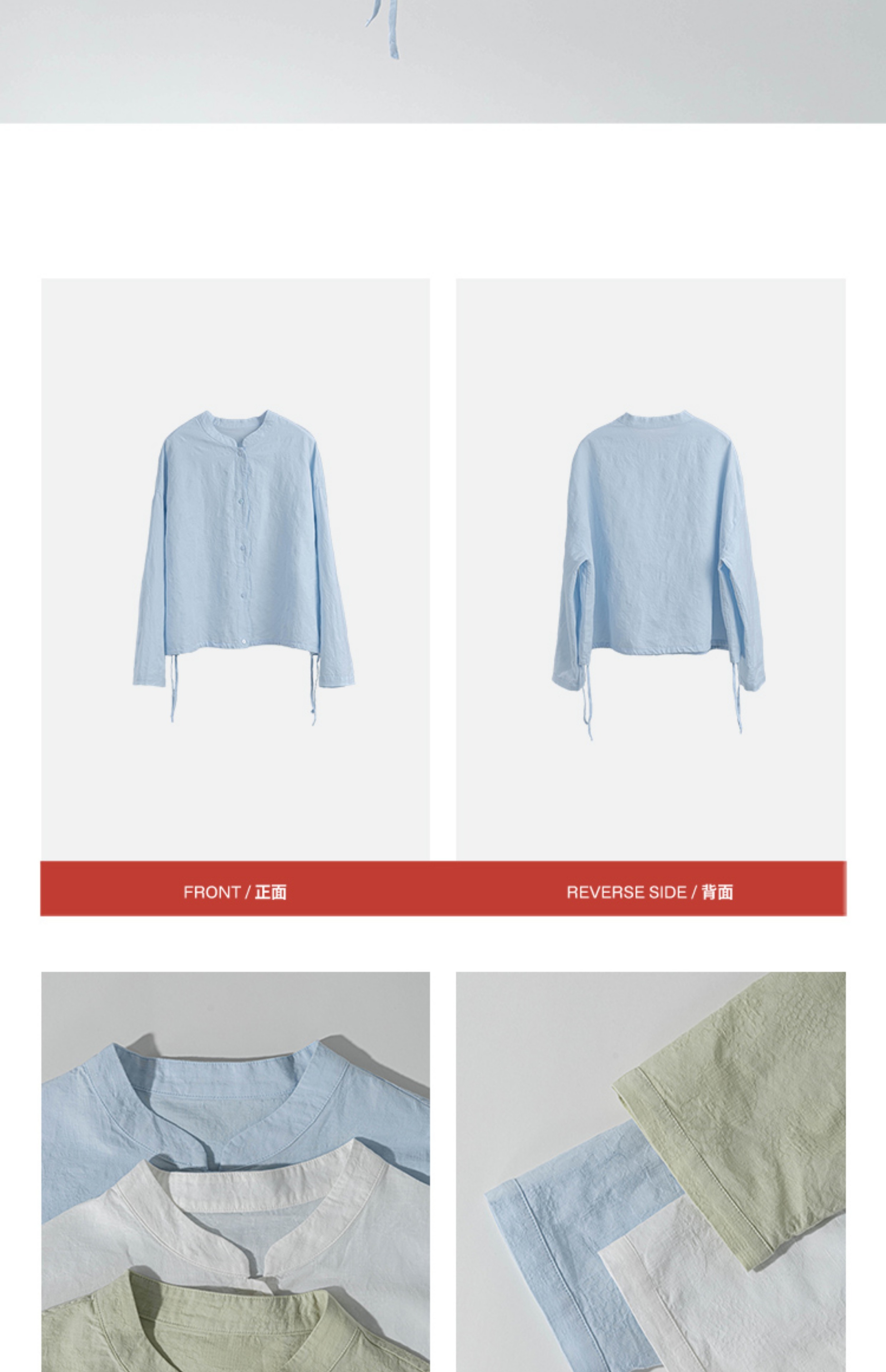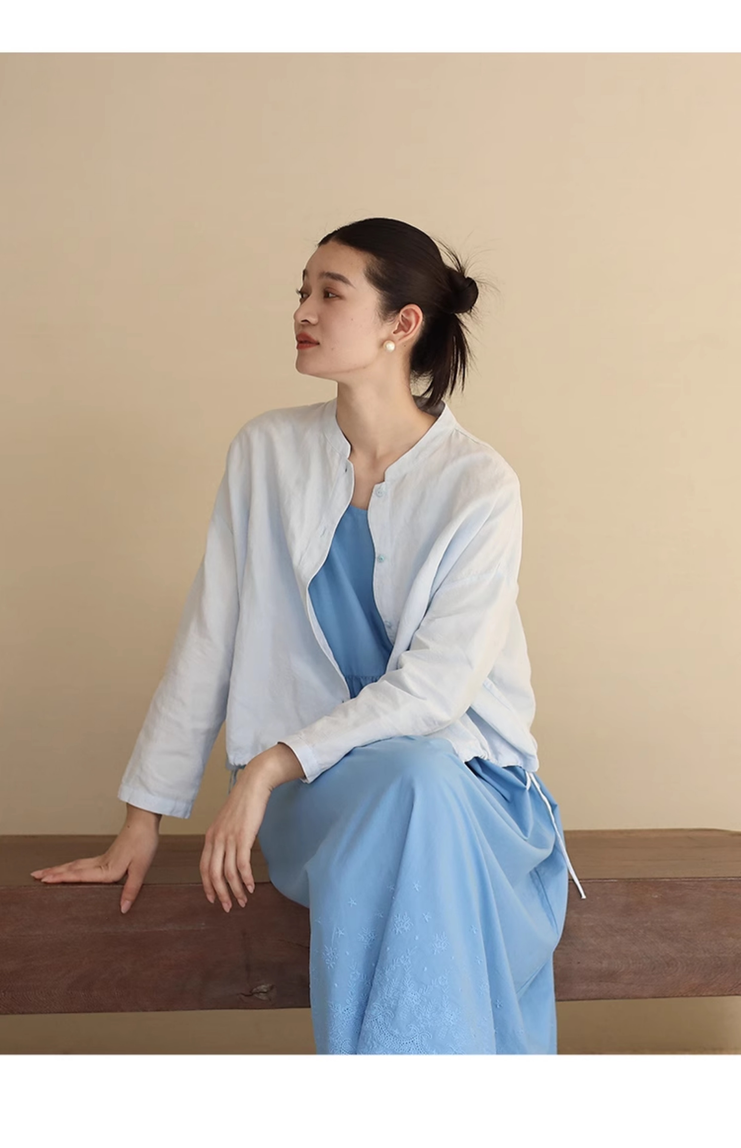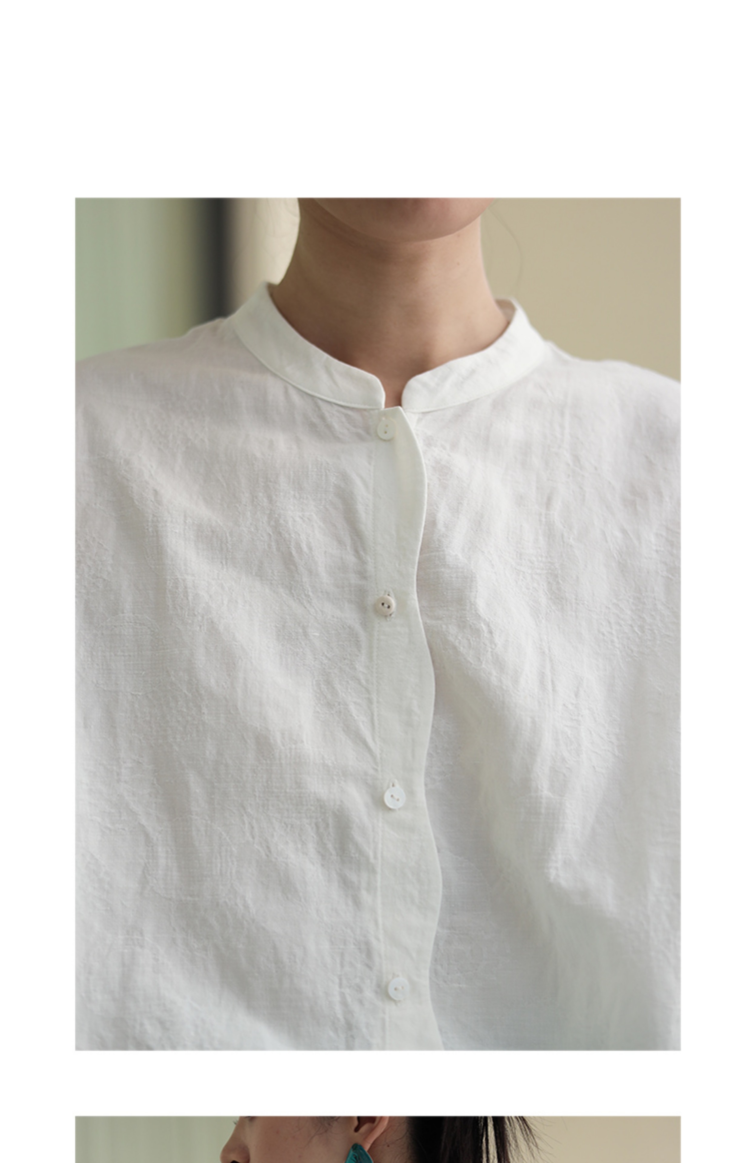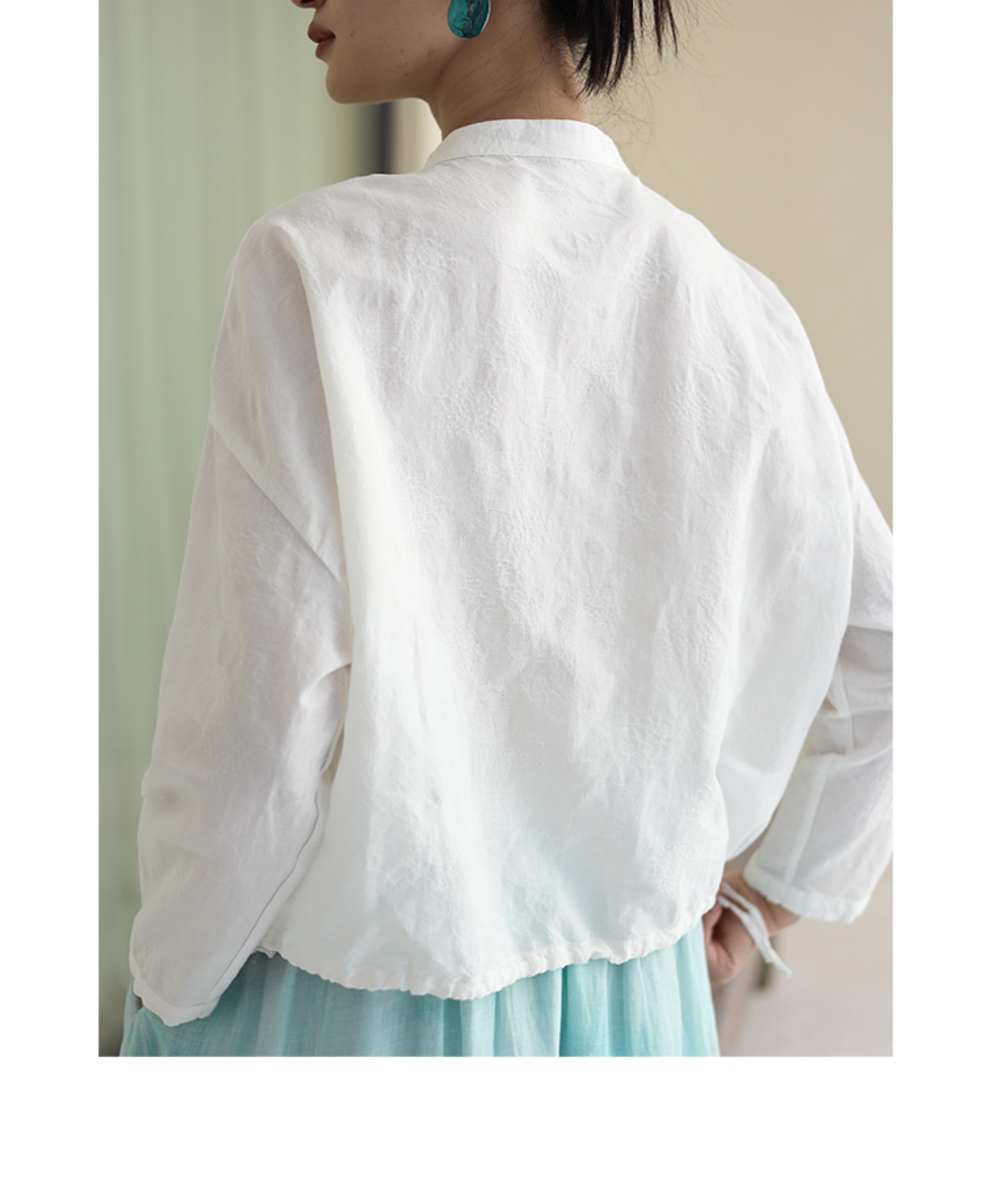 绽放191朵/【宋瓷系列】汉麻棉提花设计感衬衫陶瓷扣点缀开襟小衫