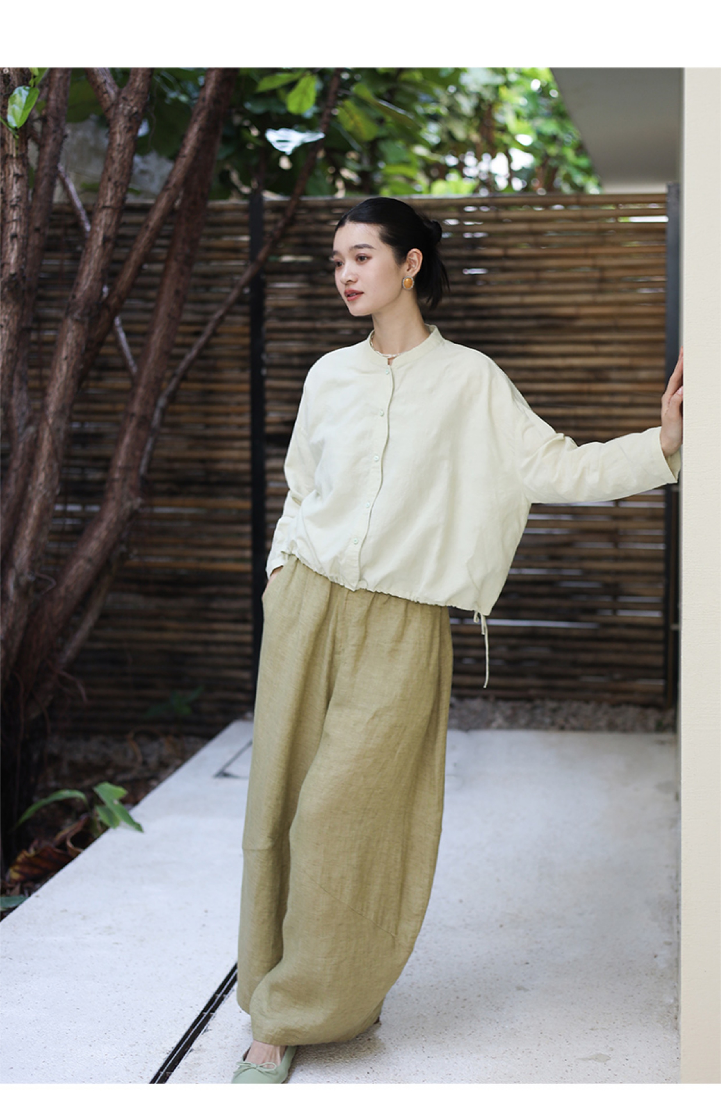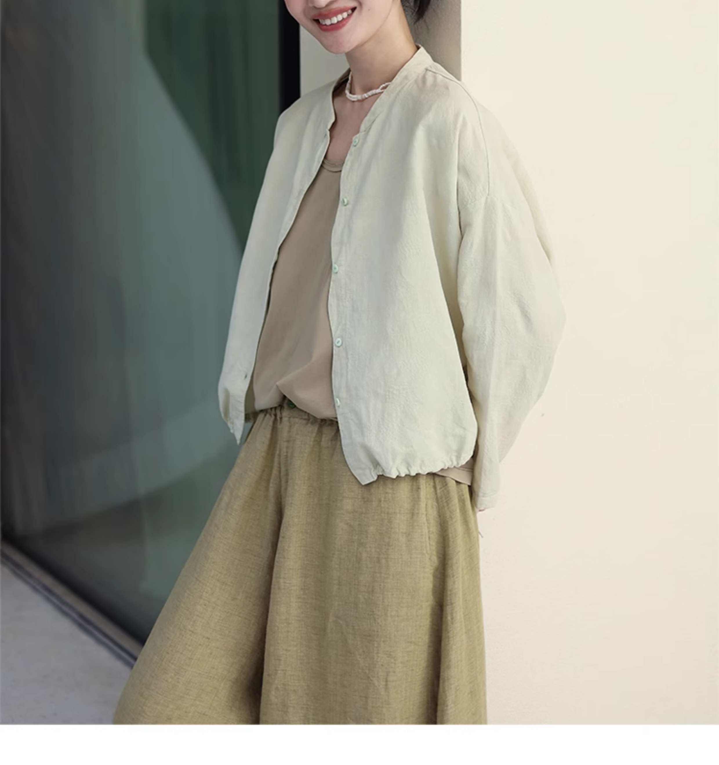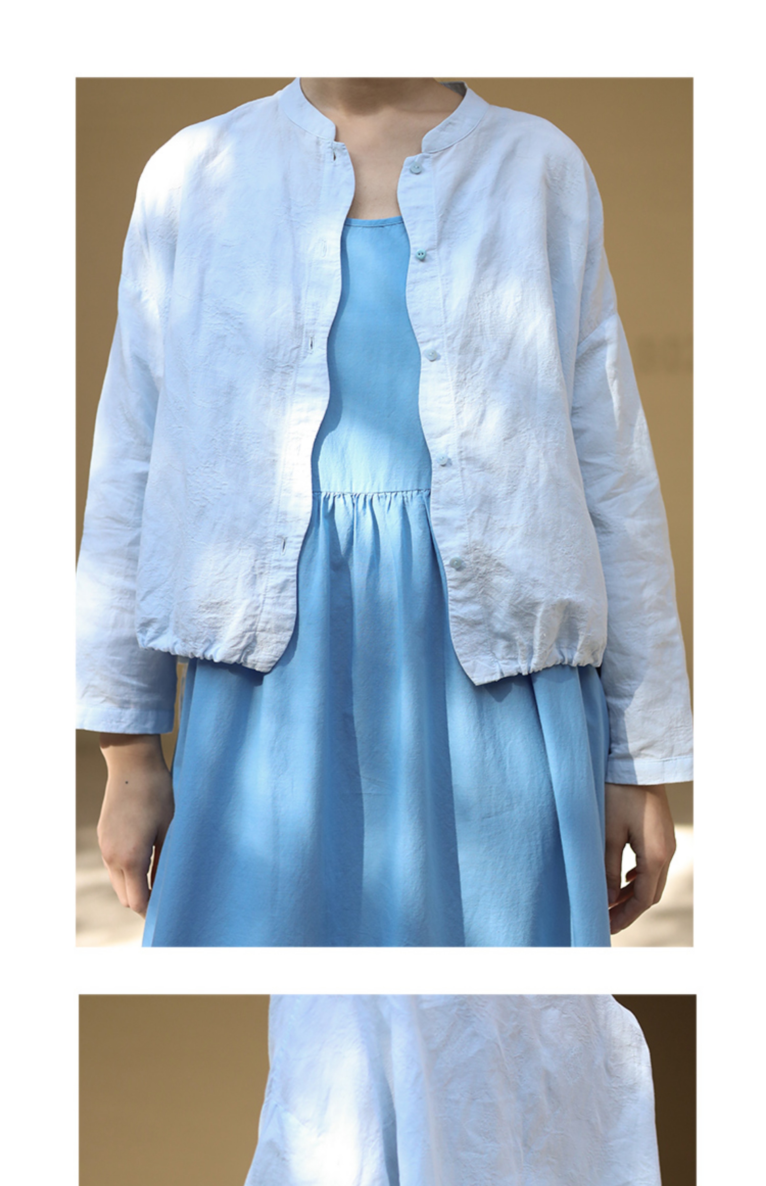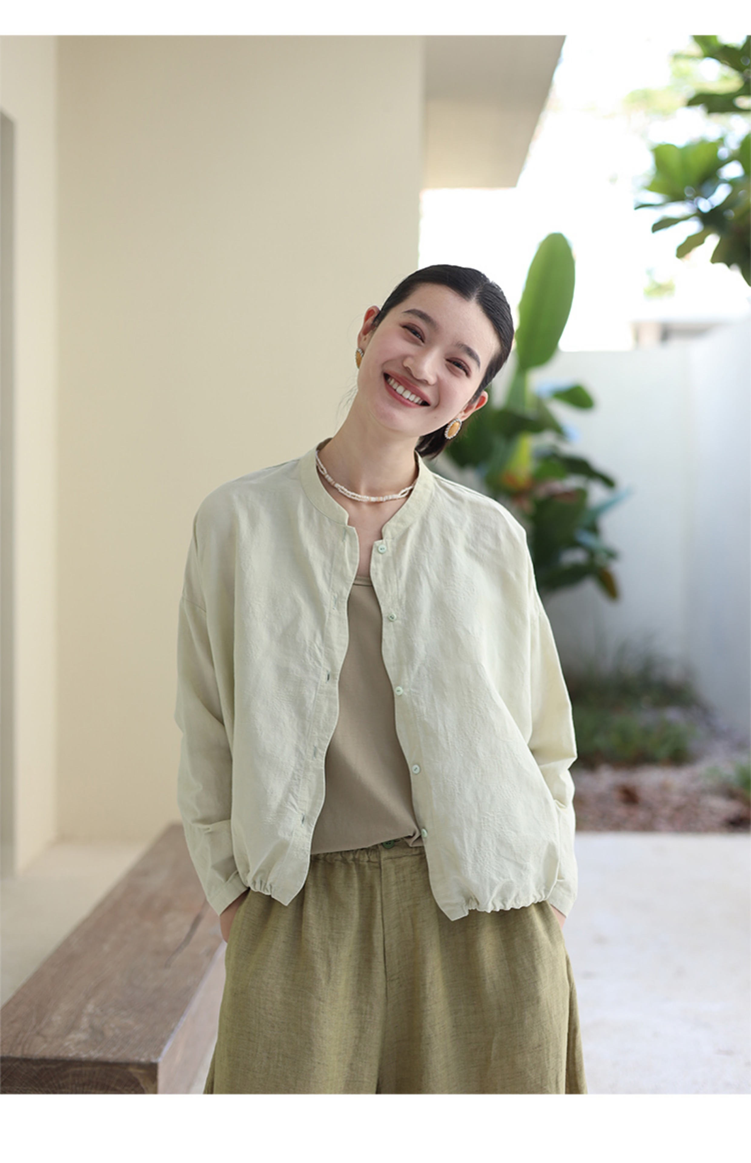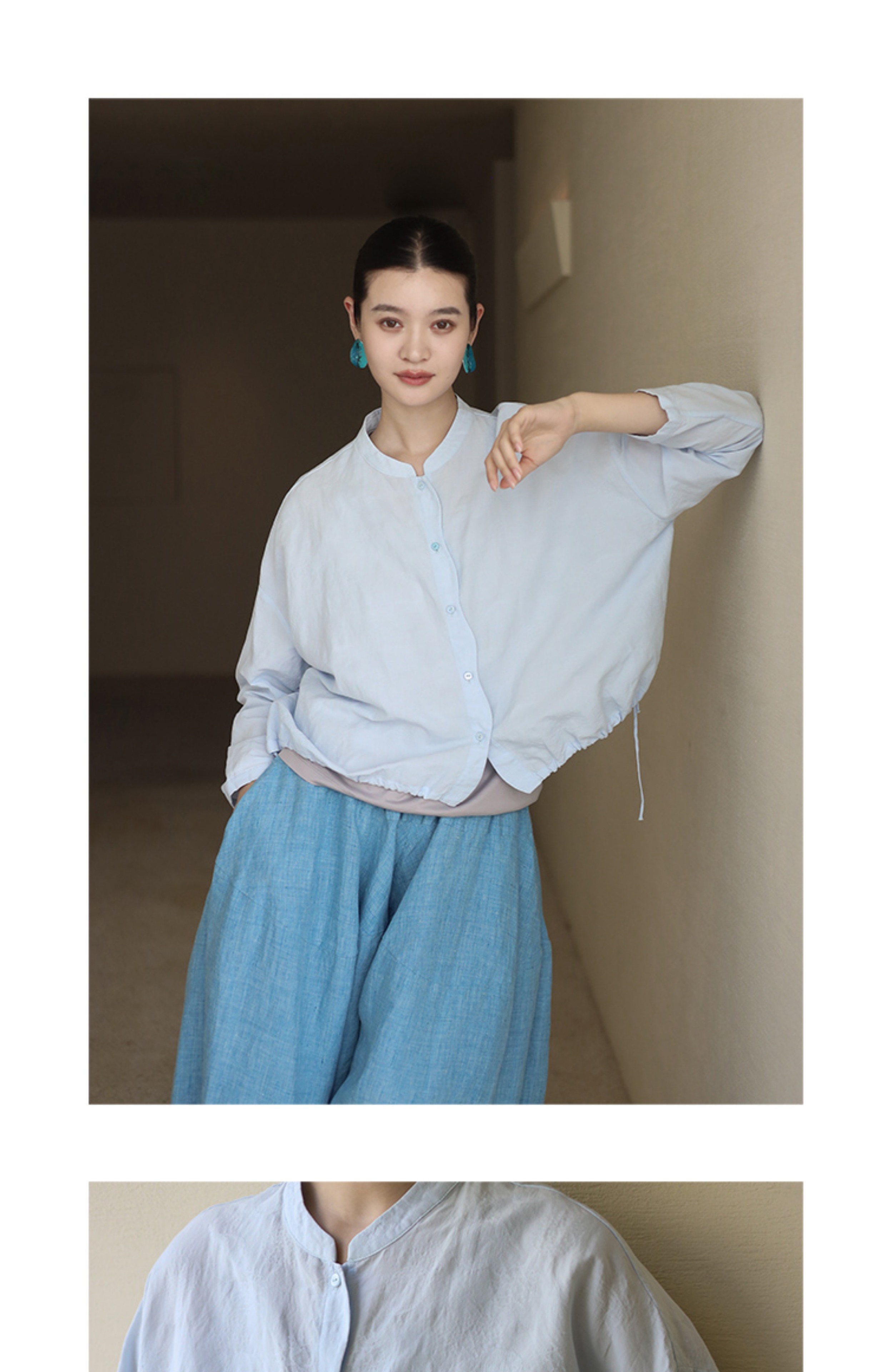 绽放191朵/【宋瓷系列】汉麻棉提花设计感衬衫陶瓷扣点缀开襟小衫