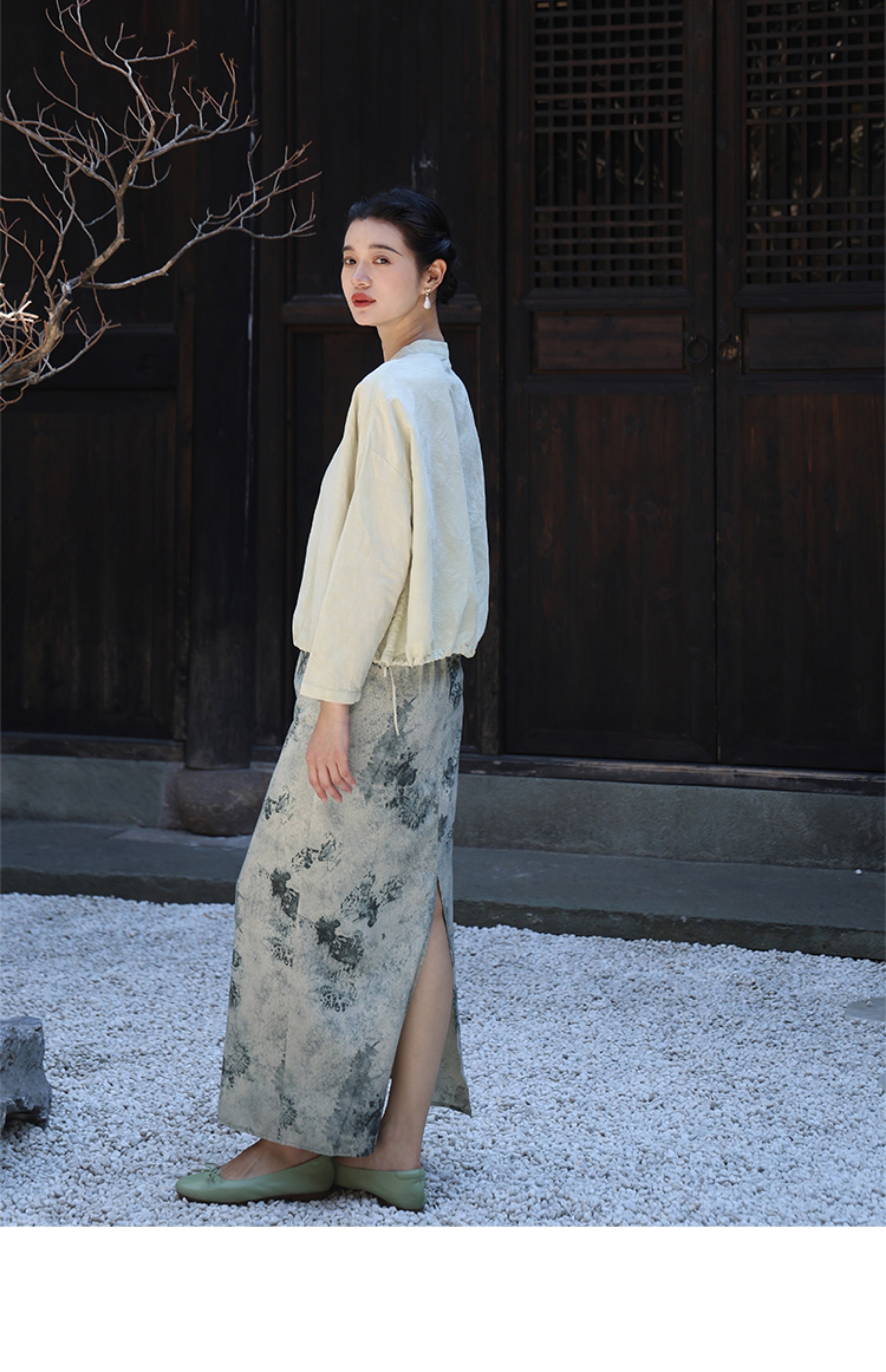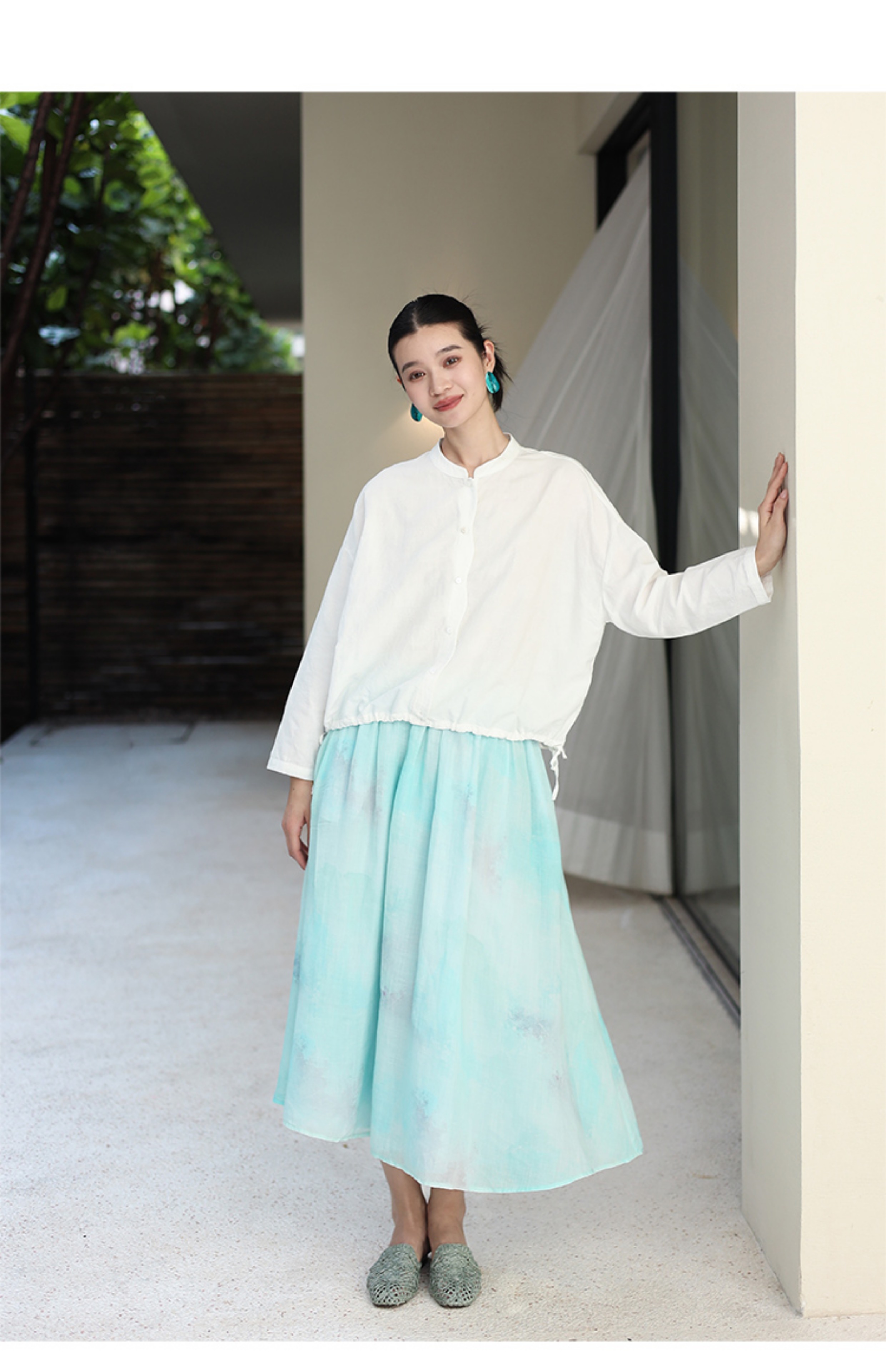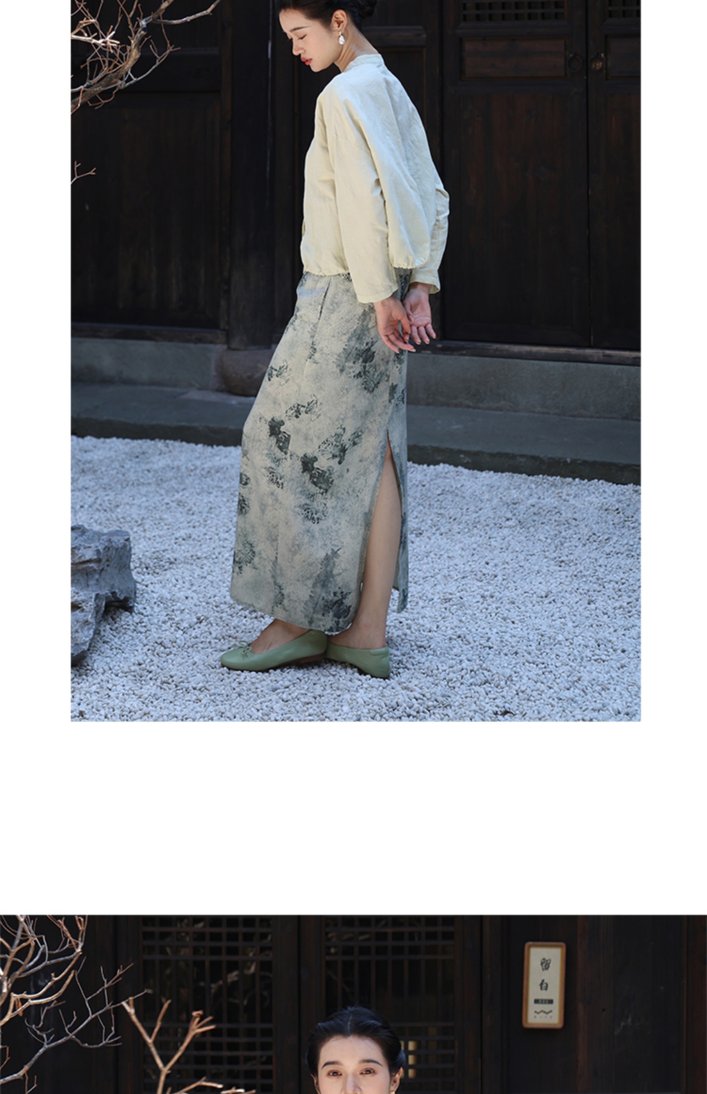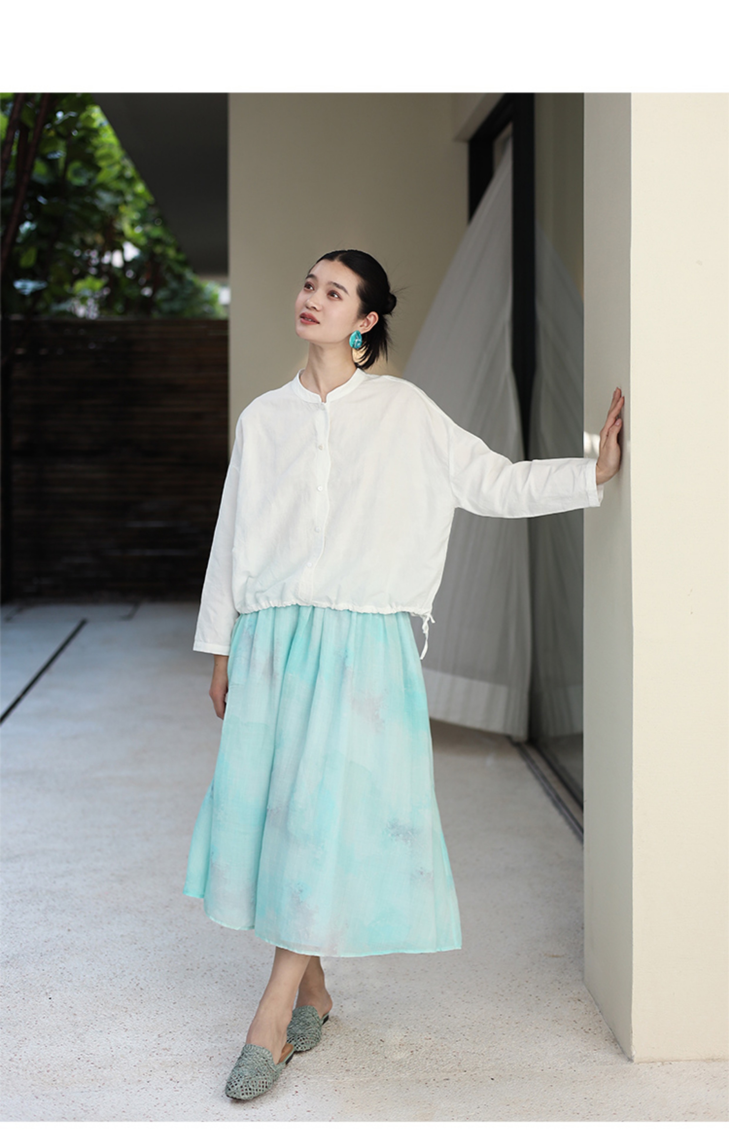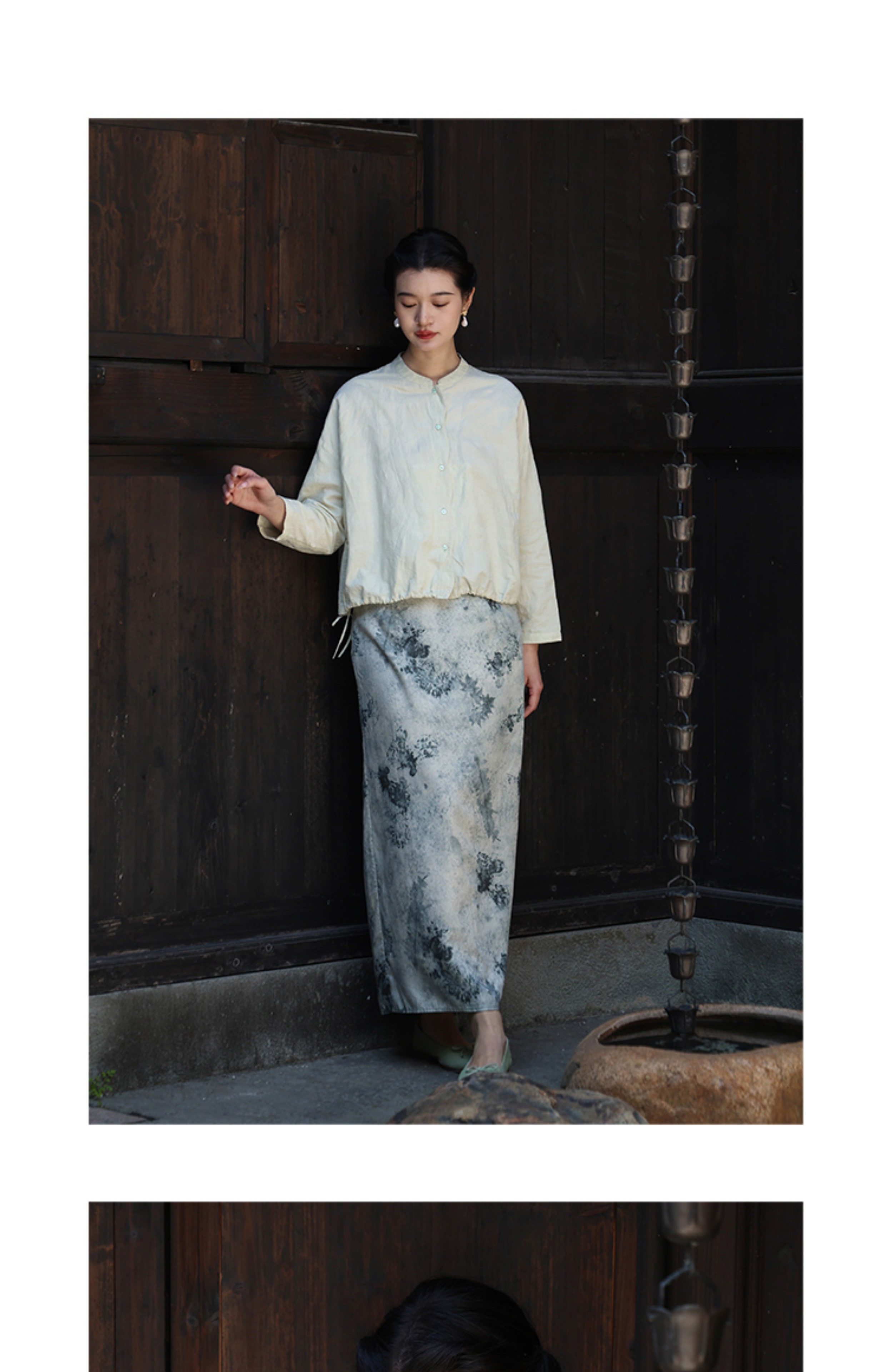 绽放191朵/【宋瓷系列】汉麻棉提花设计感衬衫陶瓷扣点缀开襟小衫