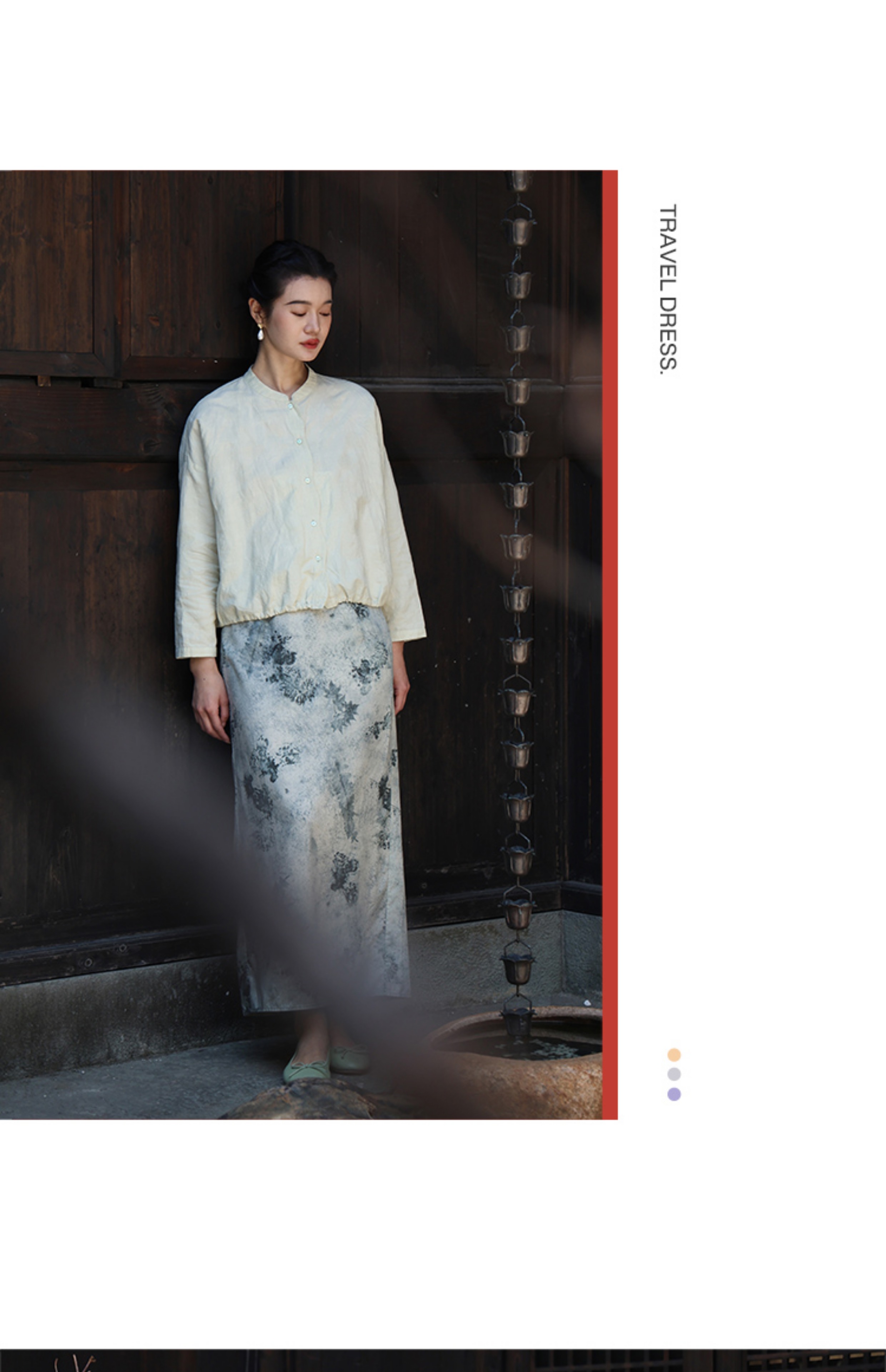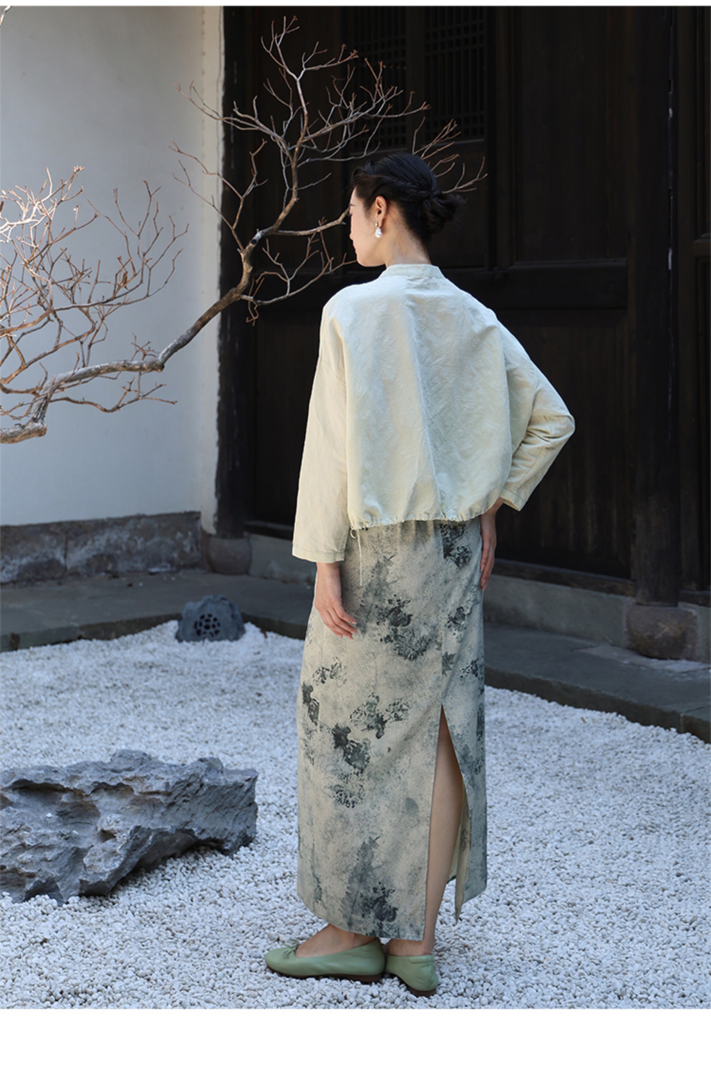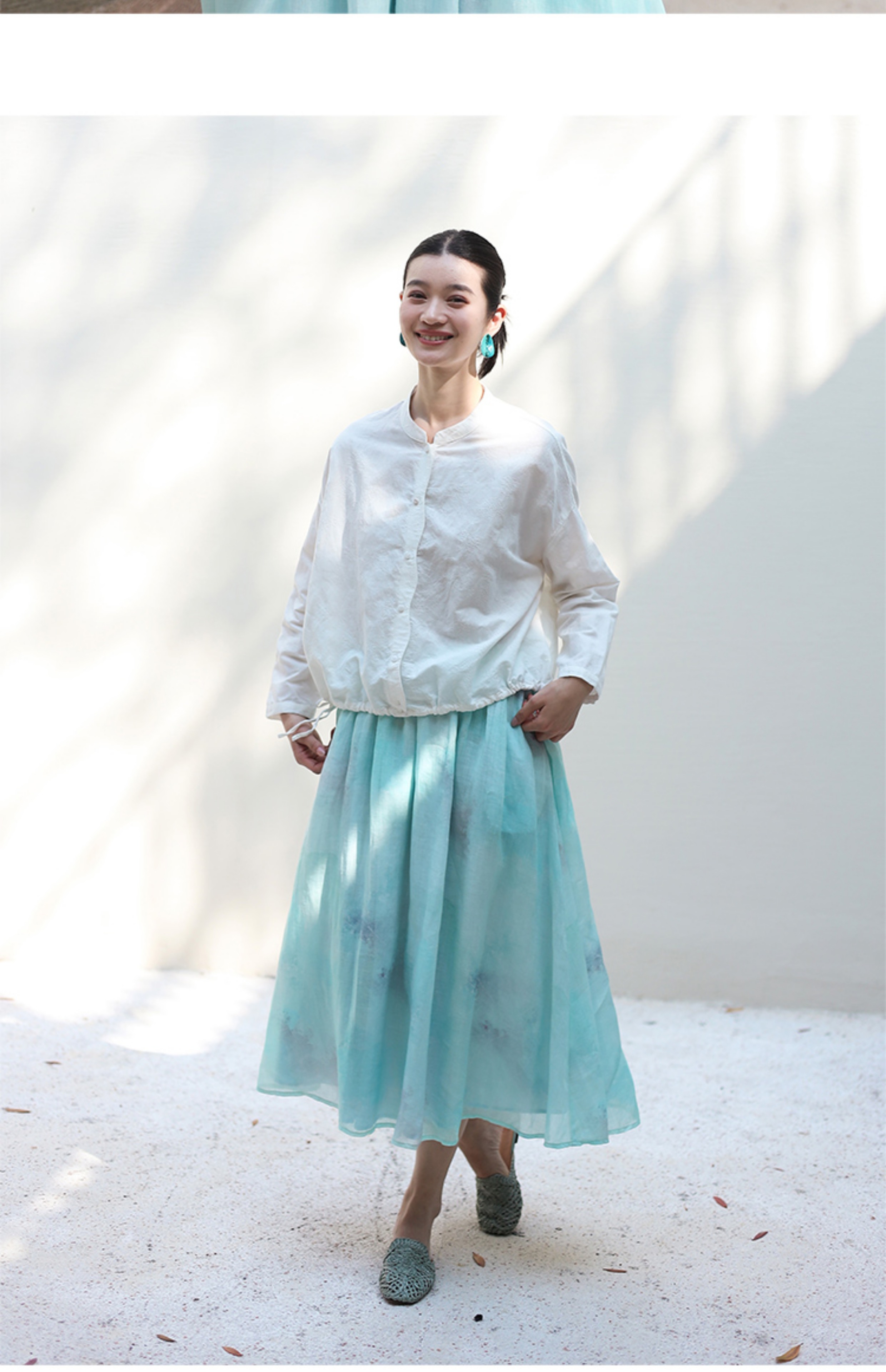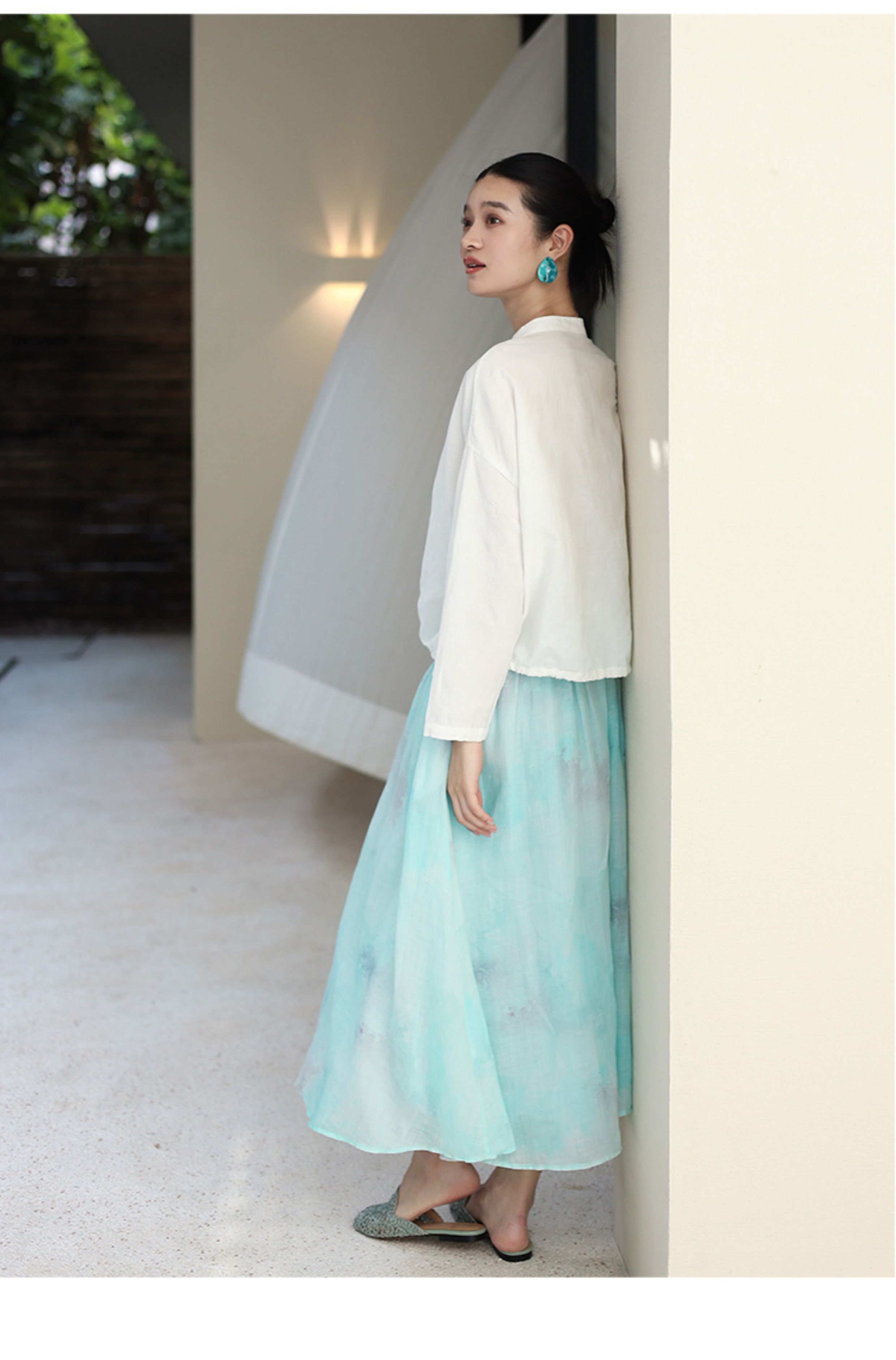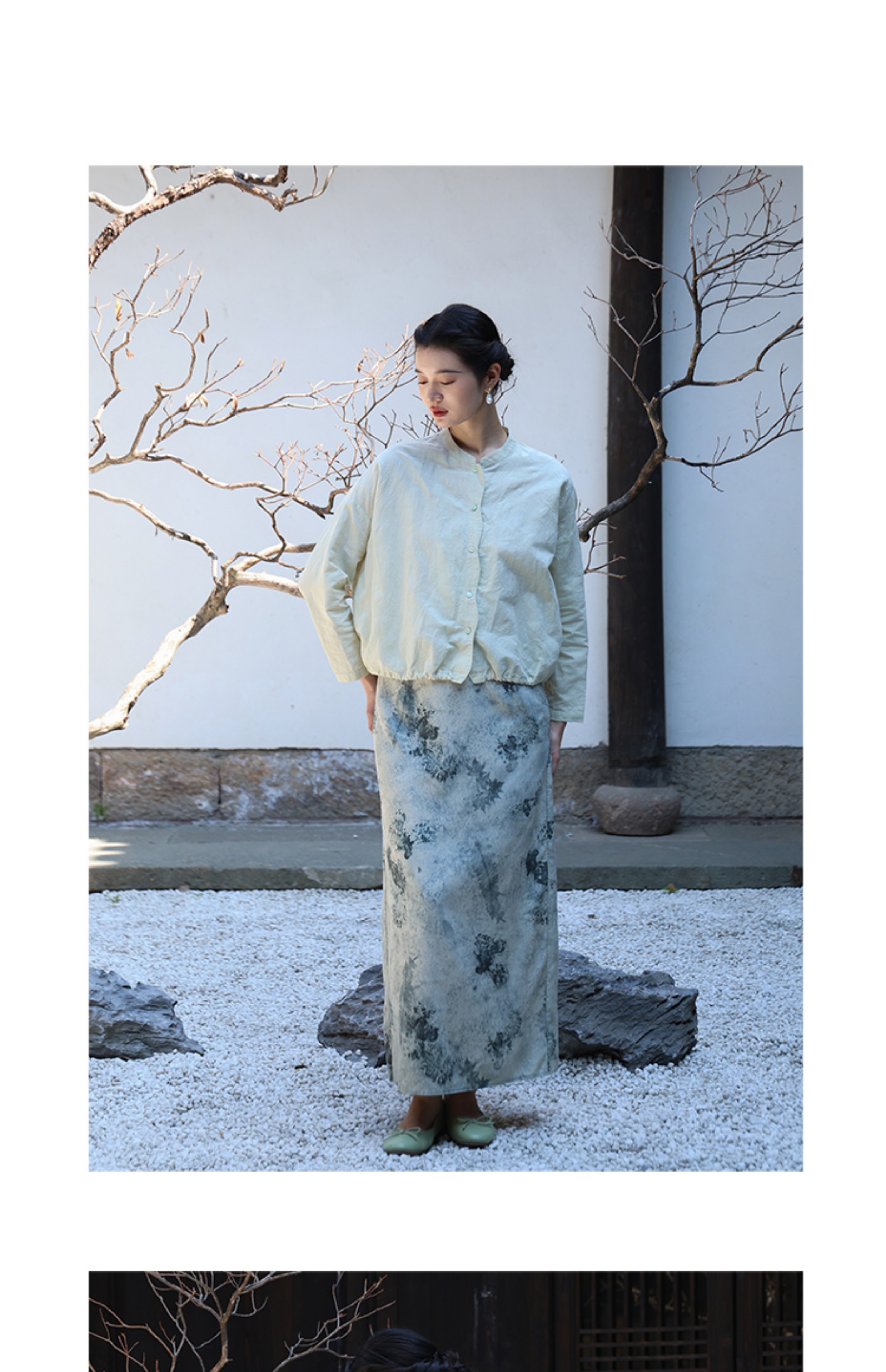 绽放191朵/【宋瓷系列】汉麻棉提花设计感衬衫陶瓷扣点缀开襟小衫