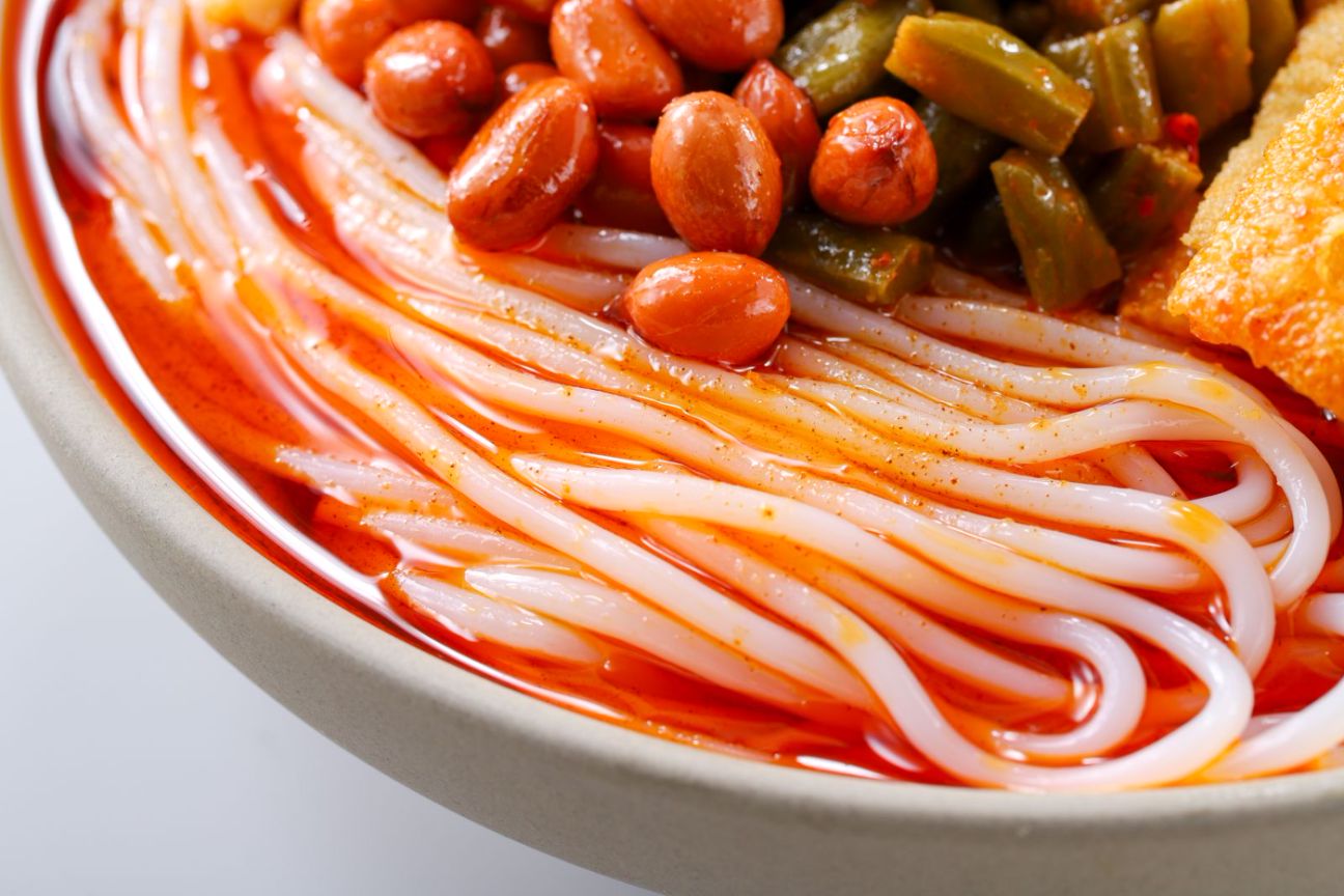吃过我们风味粉的,没有一个不被它那鲜红的辣油镇住的(辣油是独立包装),辣是红色的。很多湖湘、川贵之地,能吃辣的朋友,都对柳州风味粉的辣味心有余悸。