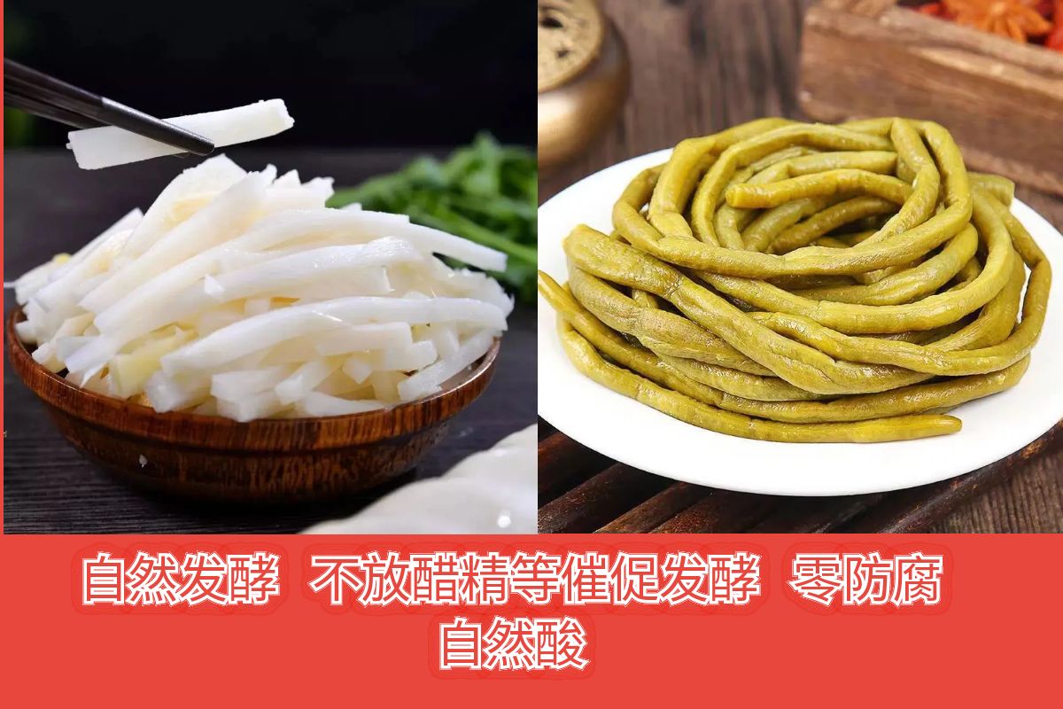 对于笋和豆角也是头大的事,一般的腌制品都是快速发酵而且有防腐剂,我们找到了选择自然发酵的酱腌菜,市面上很多酸笋,豆角几天快速发酵,省时,省心,省力省成本,这样出来的酸,比较刺激;自然发酵腌制的一般要一个月以上,甚至更长时间。我们请同行品鉴我们用的酸笋,酸豆角怎么样,他说一闻就知道时自然腌制。果然是行家。