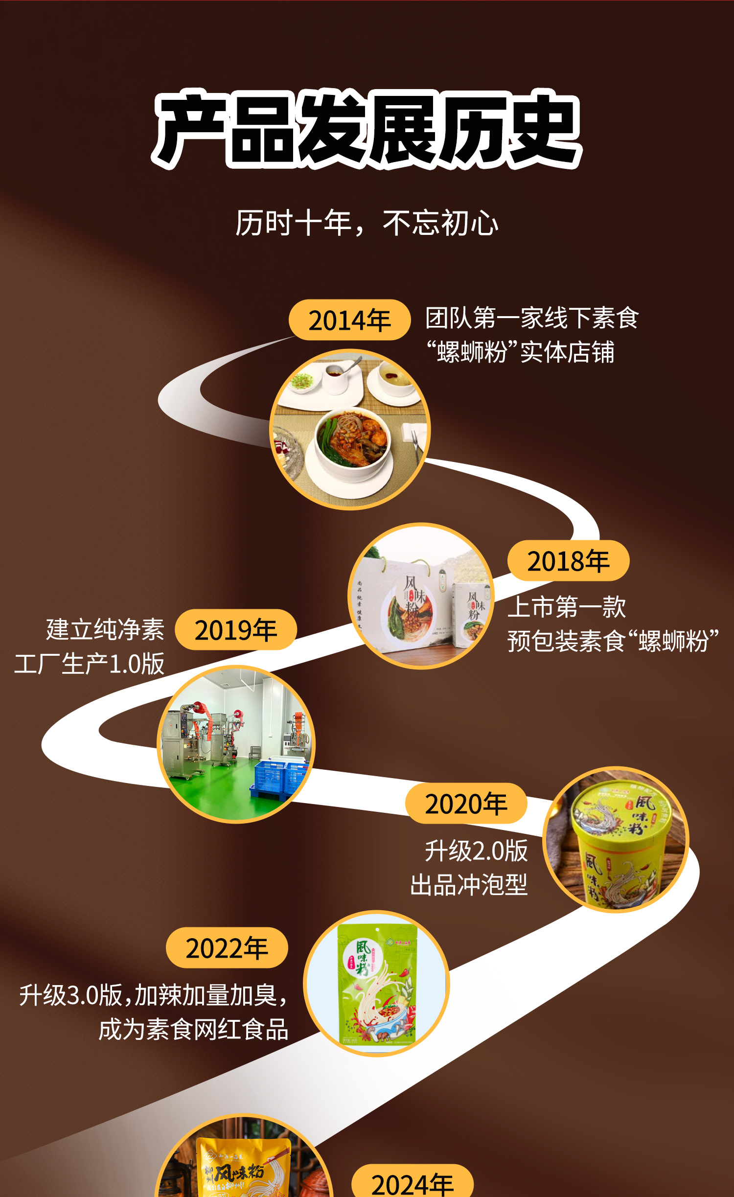 告诉你们一个秘密,一开始就出有无添加版的素食螺蛳粉,只是当时没有上市,当地或是比较近的朋友有机会吃到,因为通过测试发现酱菜容易鼓包,后面不得暂时放下。可是我们是不会放弃的,经过五年的沉淀和学习积累,零添加的素食螺蛳粉终于实现了。