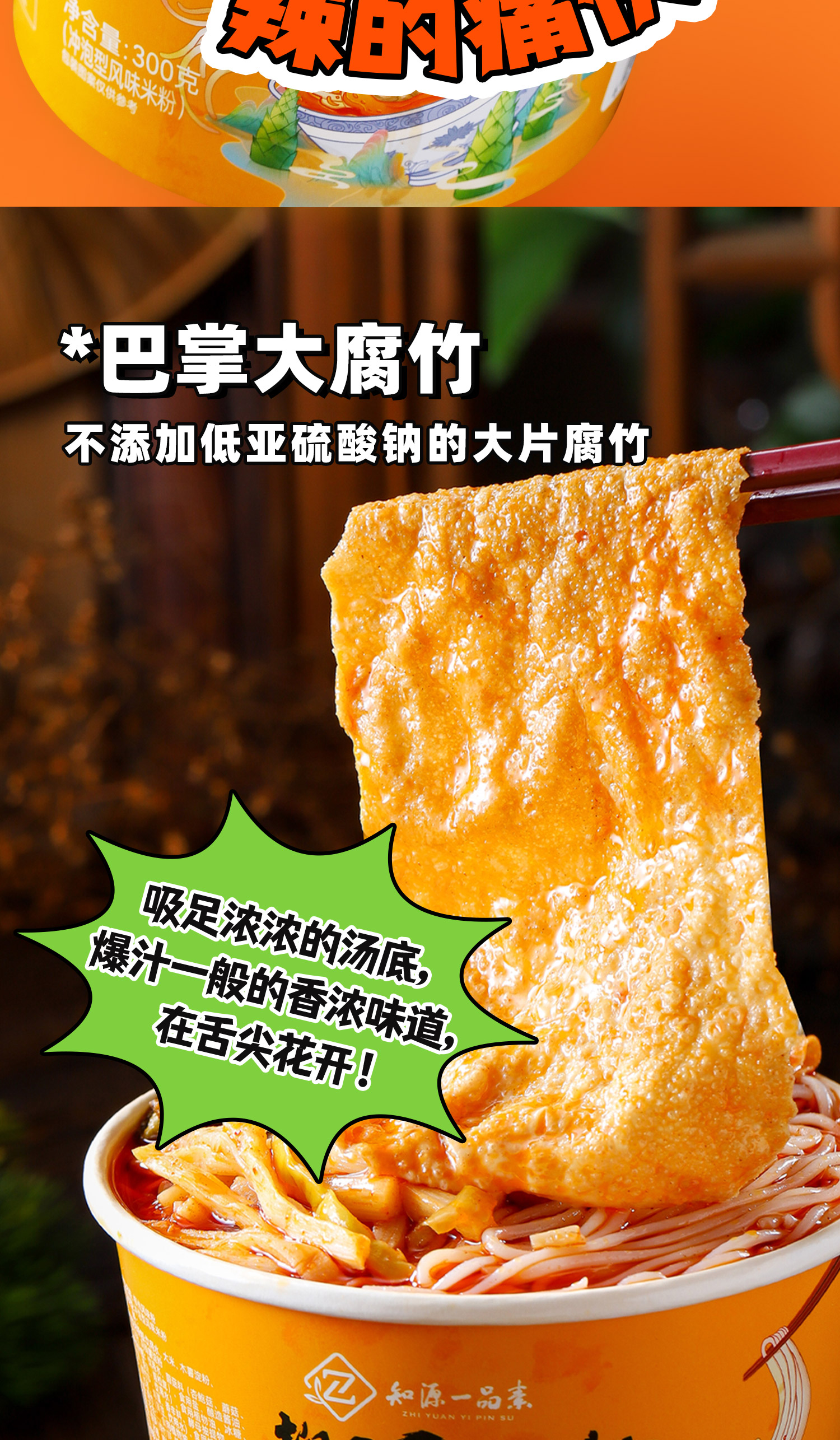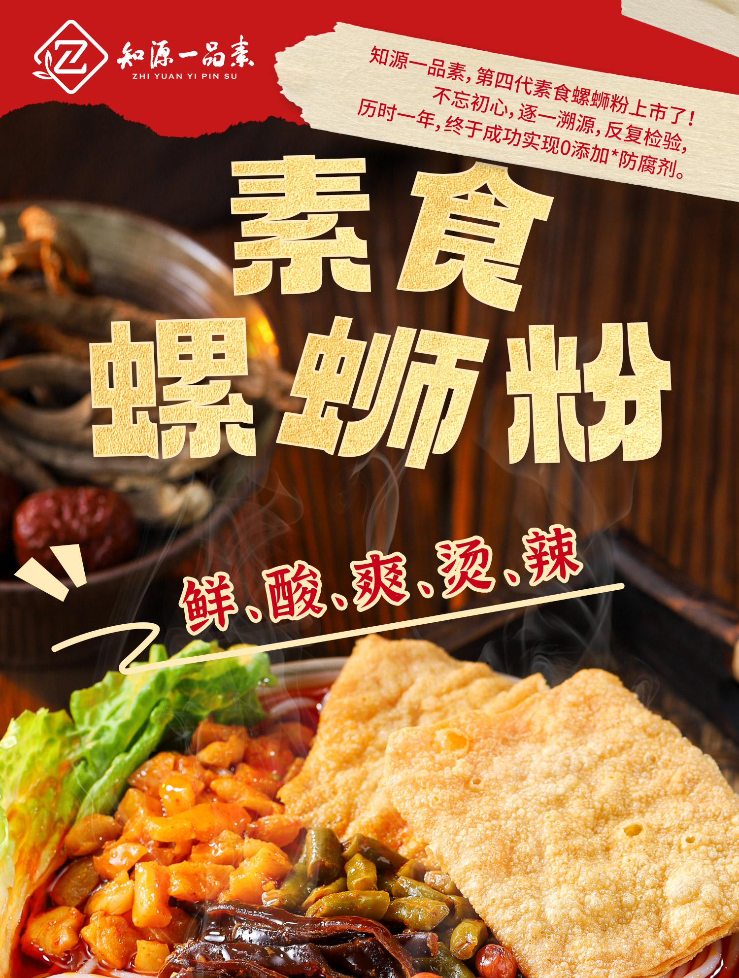 2019年年底知源一品素素食螺蛳粉应运而生,也就是这一碗素食版柳州风味粉。其特点,在于其辣、爽、鲜、酸、烫的独特风味,让人欲罢不能。汤料香辣浓郁,粉滑嫩爽口,搭配的配料酸甜可口,口感丰富。素食螺蛳粉中的米粉是主食,富含碳水化合物和纤维素,有助于提供能量和促进肠道蠕动。汤料中的香料和配料富含多种营养成分,如辣椒中的维生素C和胡萝卜素,豆腐泡中的蛋白质和钙等。