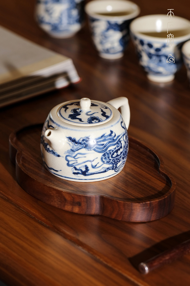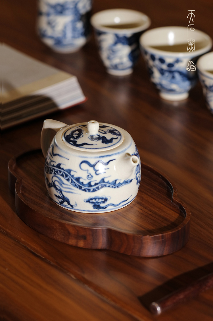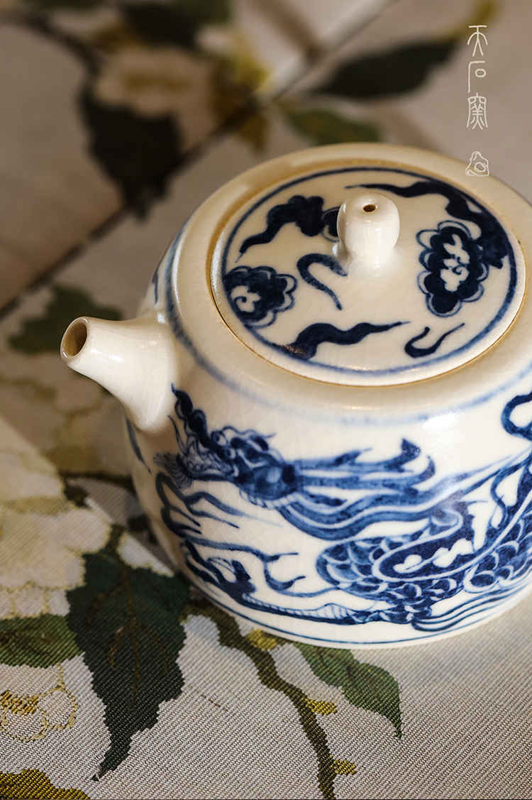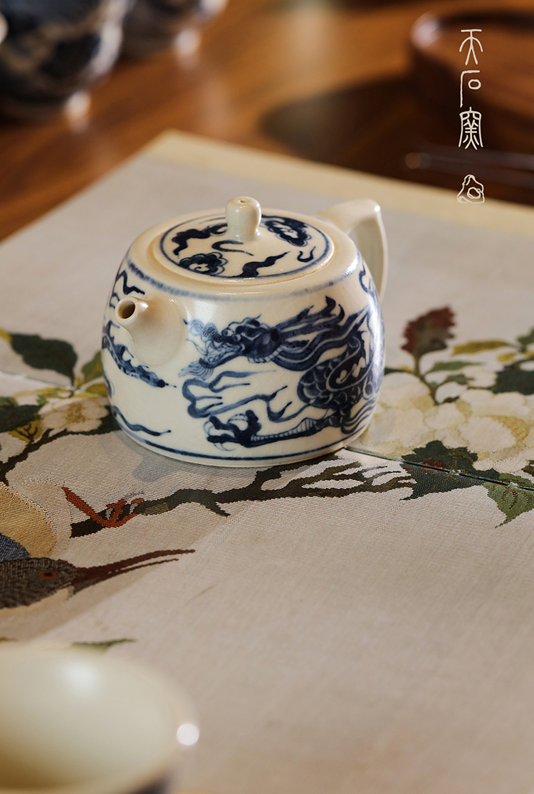 问鼎天石窑白陶泥元青花井栏壶(龙)(缺货)