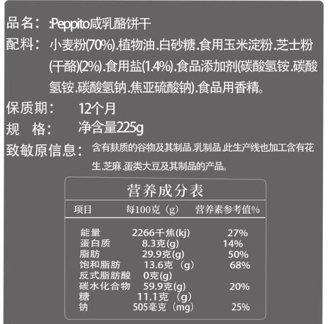 Peppito咸乳酪饼干225g