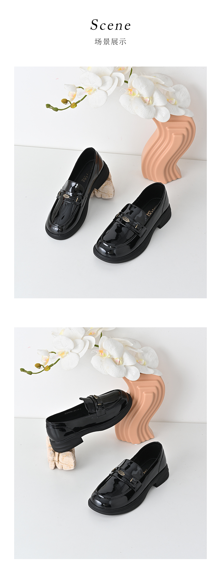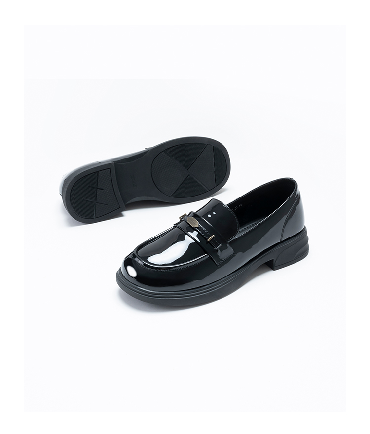 经典鲨2025年春季新款百搭黑色一脚蹬平底通勤乐福鞋单鞋女KC19-517021