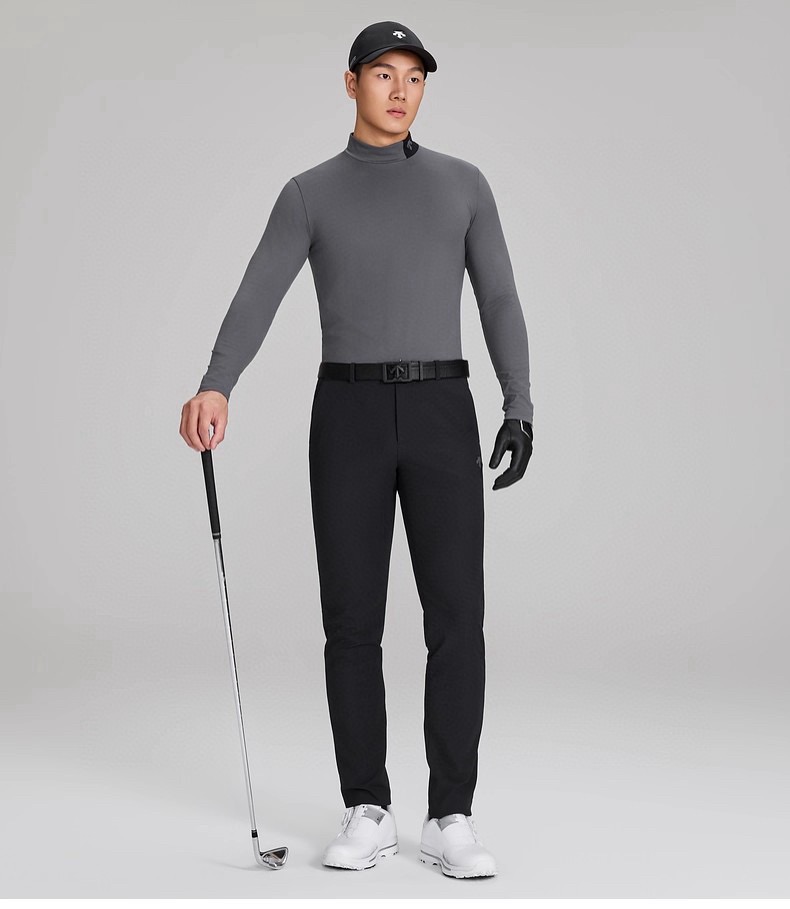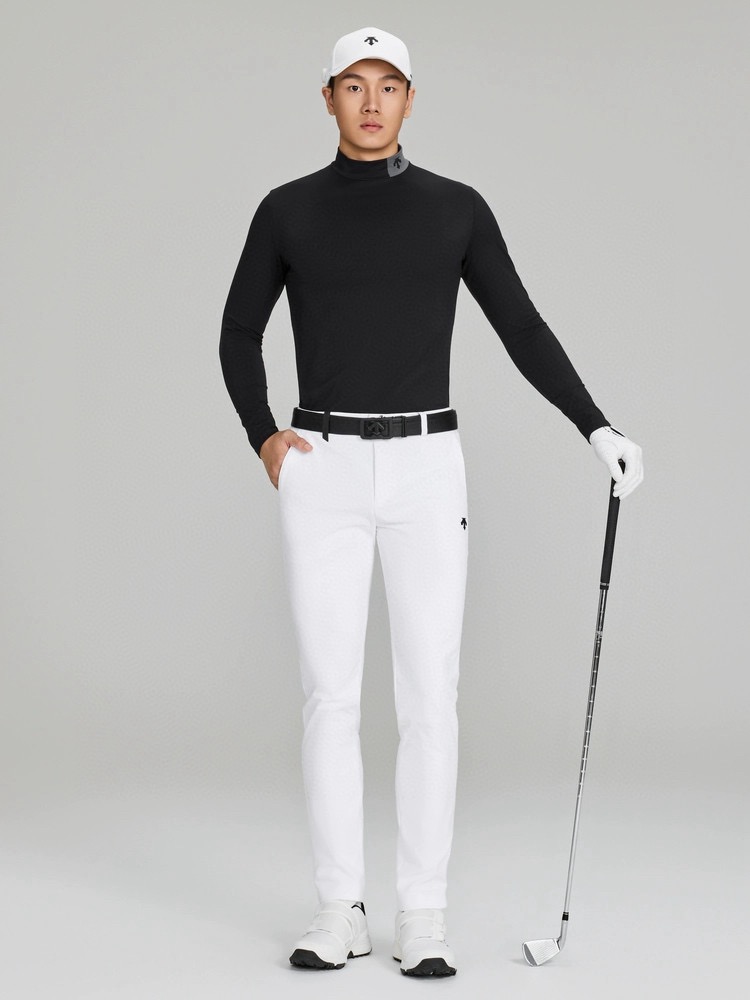 面料具备适当厚度,小立领设计贴合颈部,作为冬季贴肤内层,有效锁温保暖,适合高尔夫运动及日常穿着,提供温暖防护体验。