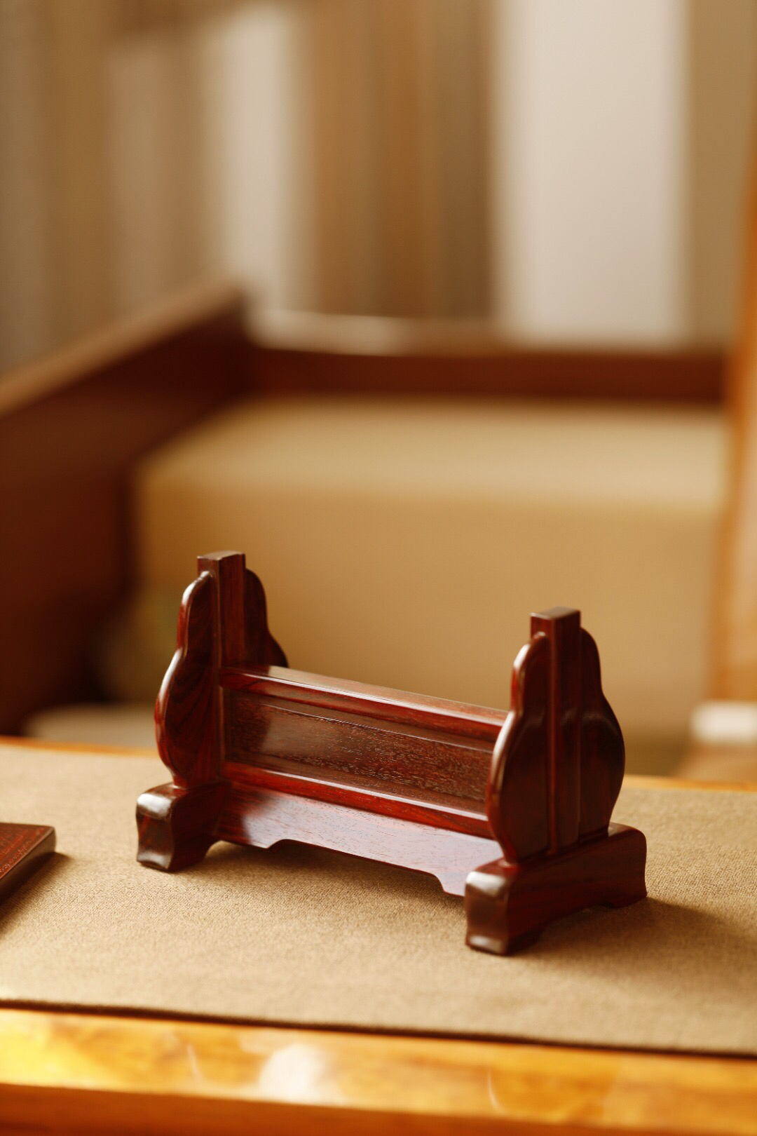 紫檀老料制,色泽油润,线条柔美。